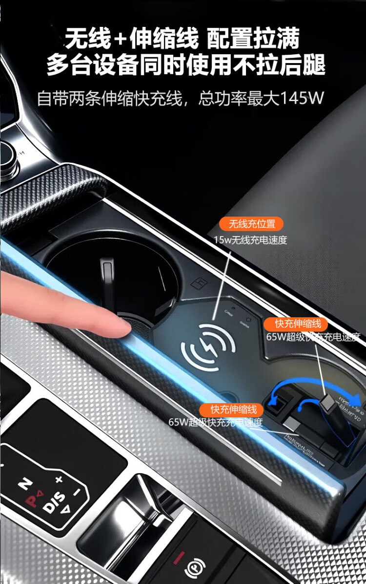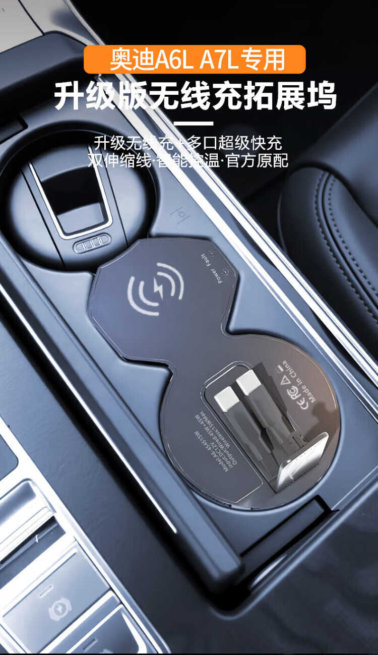 Zhicheng Audi A6L/A7L Car Charger Dock Fast Charging Wireless Charging Retractable Cable Dock Modification Accessories