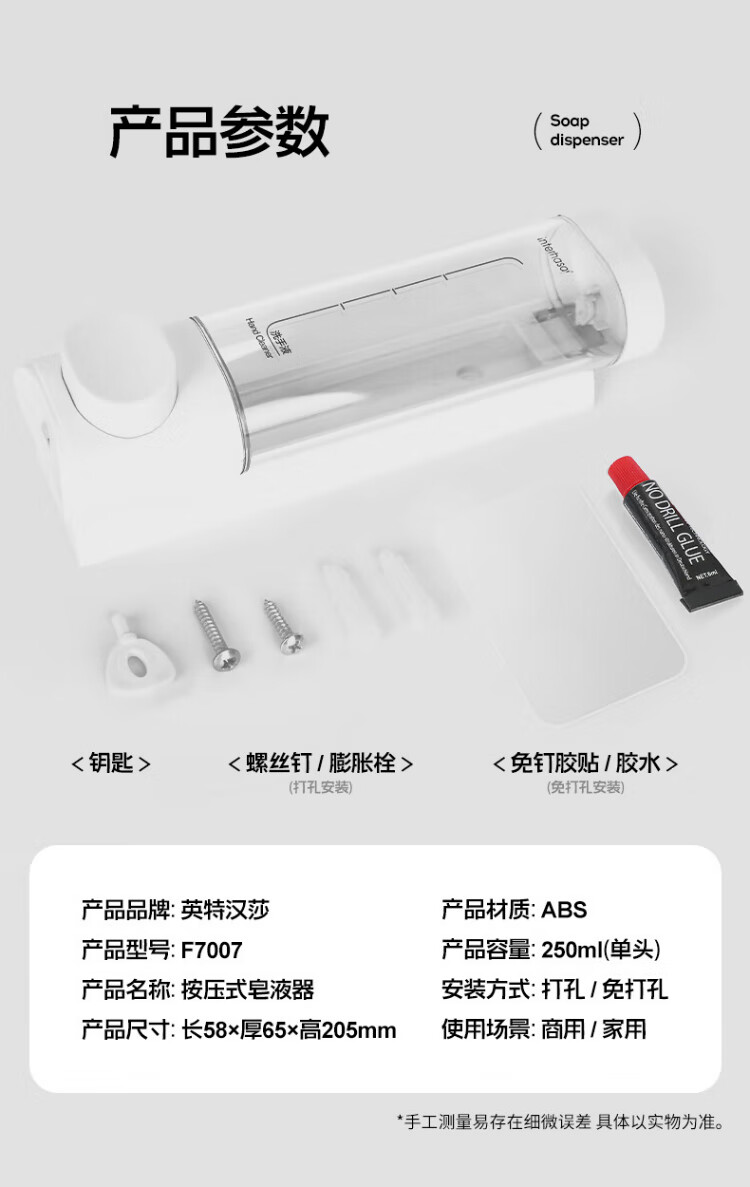Interhasa (interhasa!) F7007-1 hand sanitizer wall-mounted soap dispenser bathroom hand sanitizer box press shower gel dispenser bottle without punching