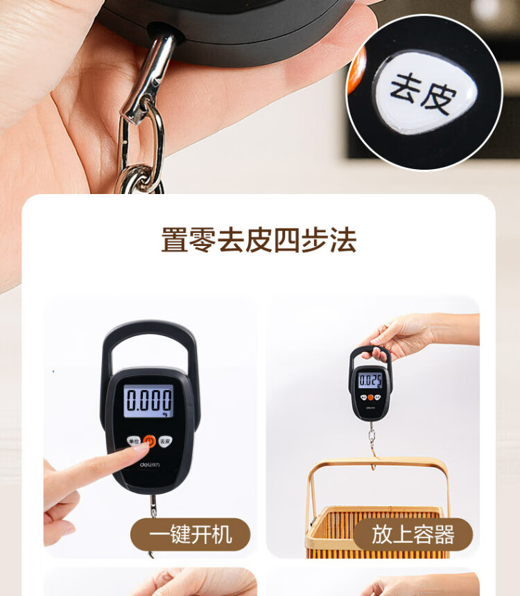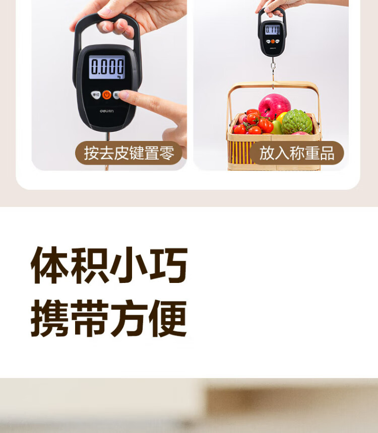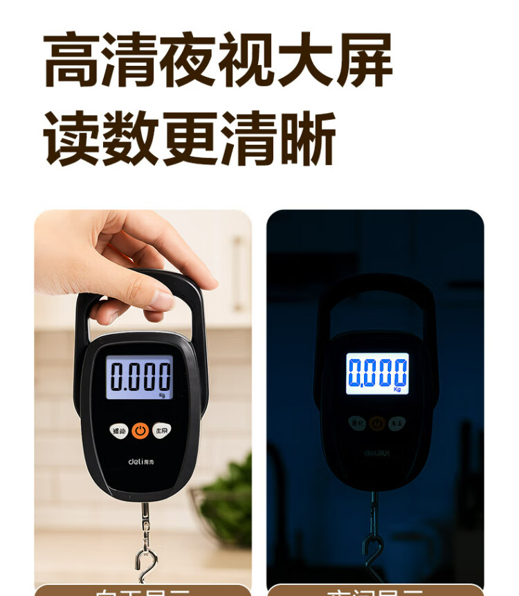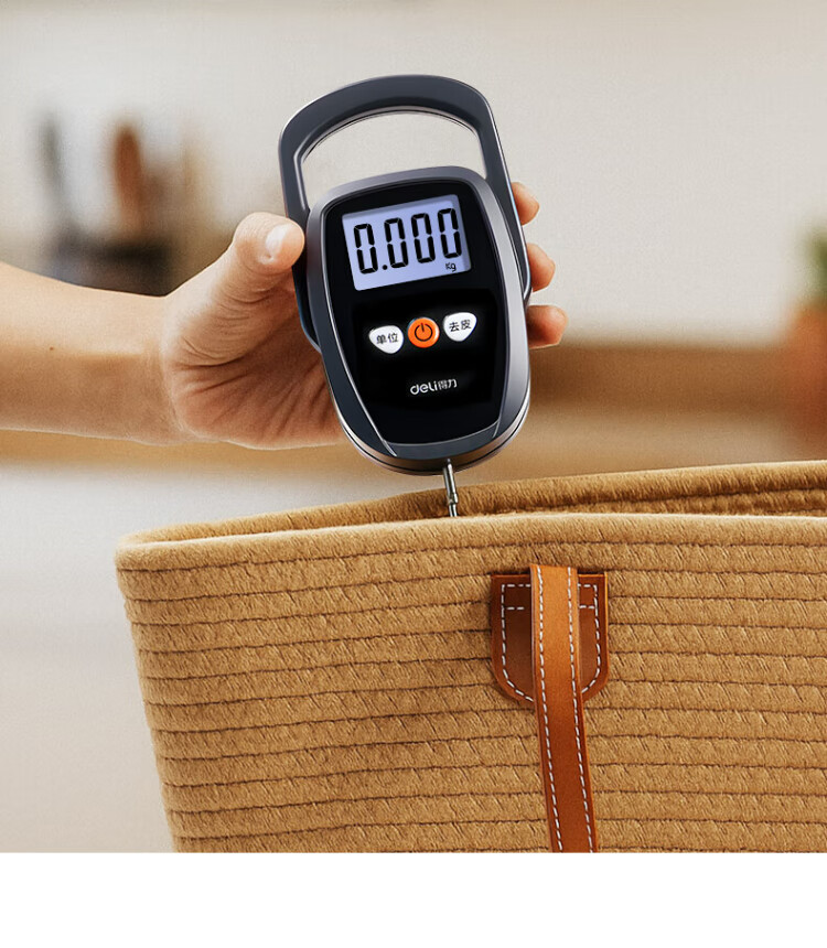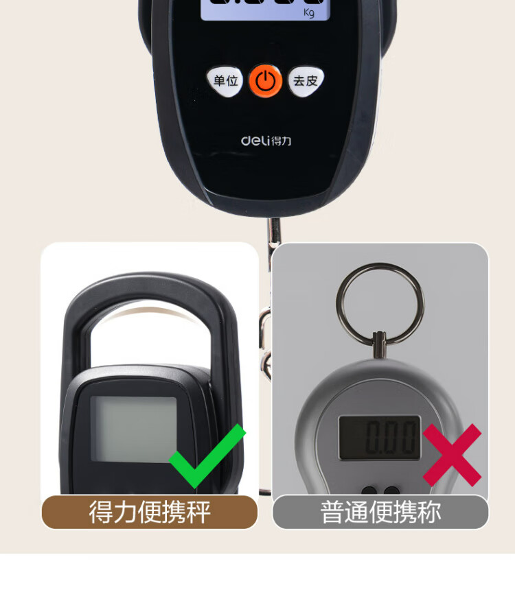 Deli (deli) portable scale electronic scale portable scale mini spring scale kitchen scale gram scale weighing vegetables high-precision luggage scale express weighing device 50Kg/20g black platform TE930