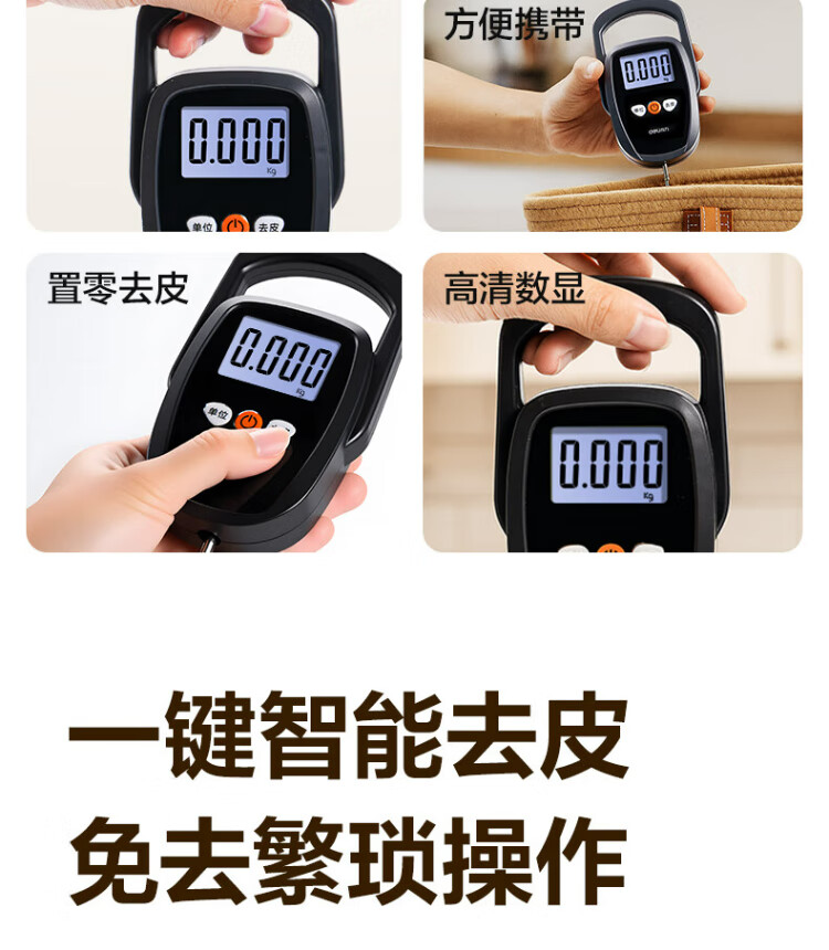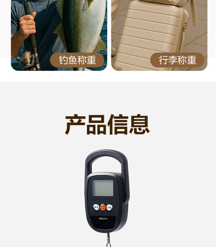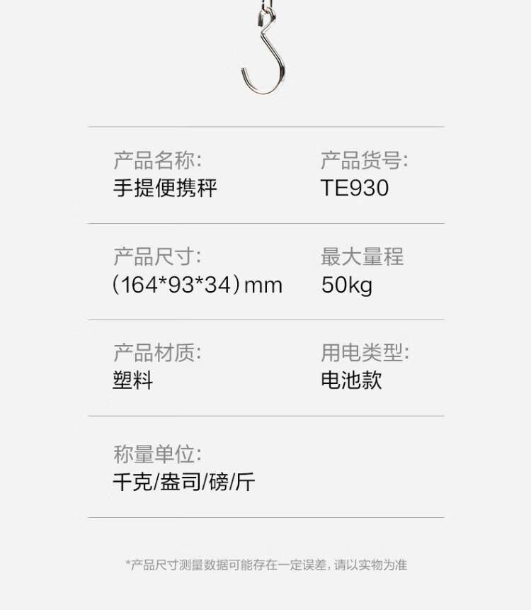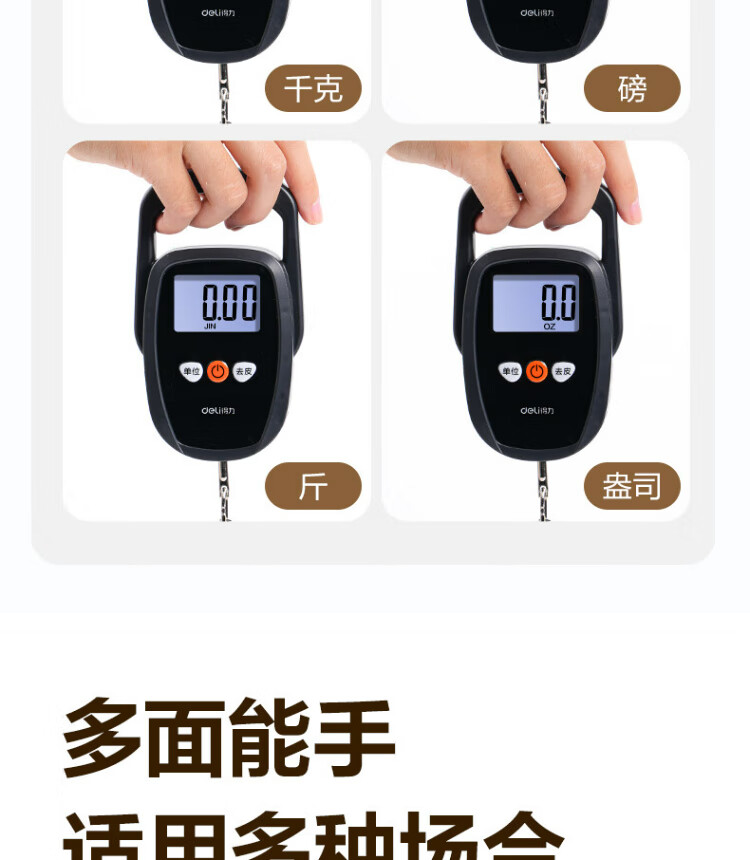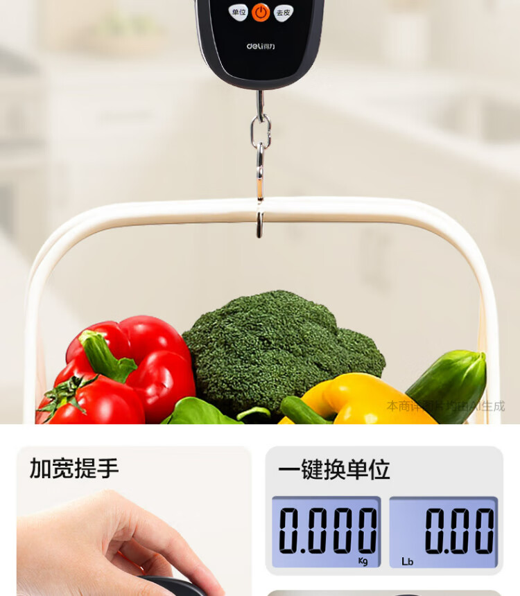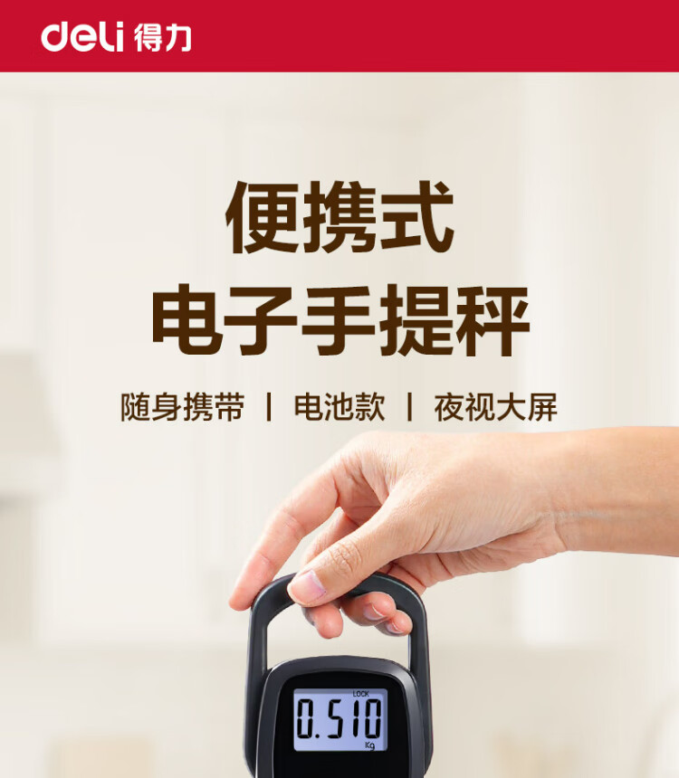 Deli (deli) portable scale electronic scale portable scale mini spring scale kitchen scale gram scale weighing vegetables high-precision luggage scale express weighing device 50Kg/20g black platform TE930