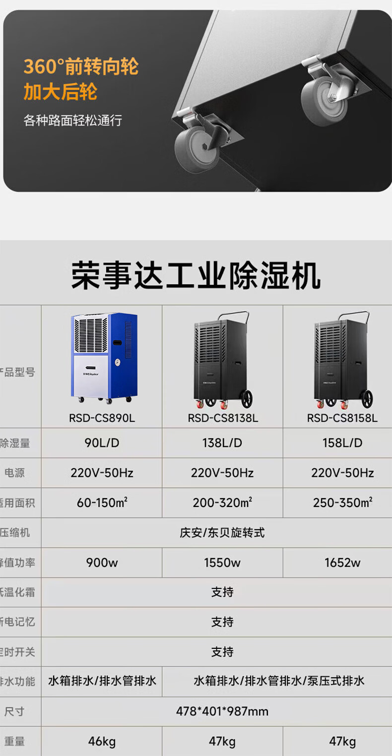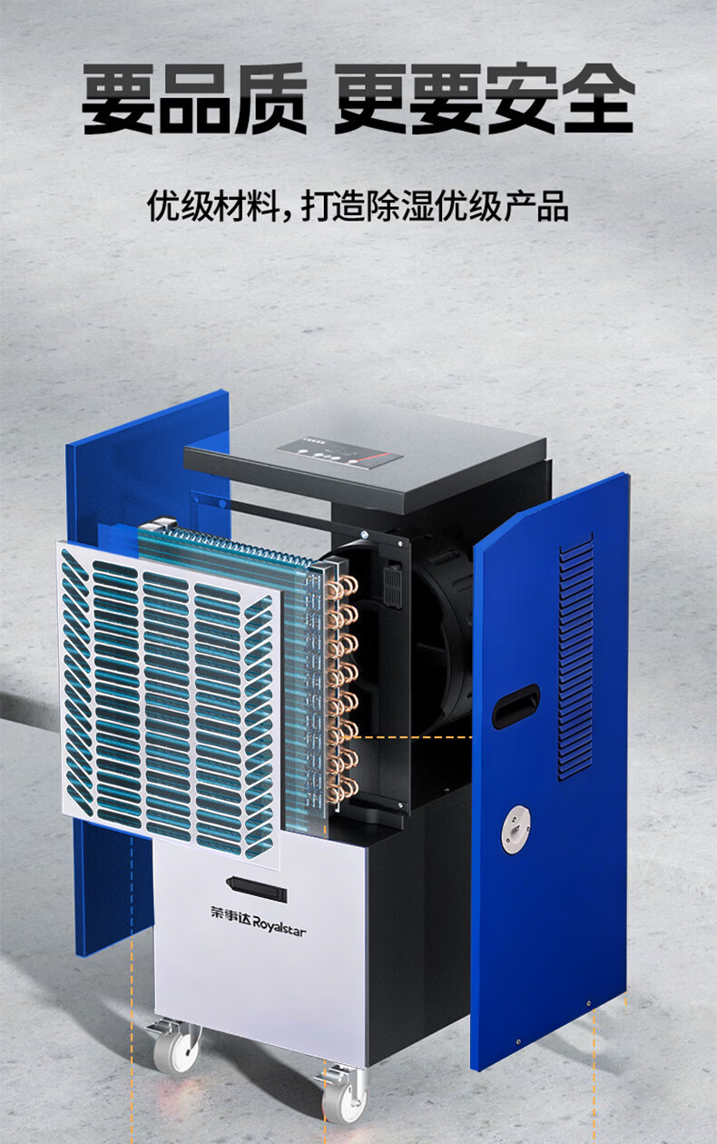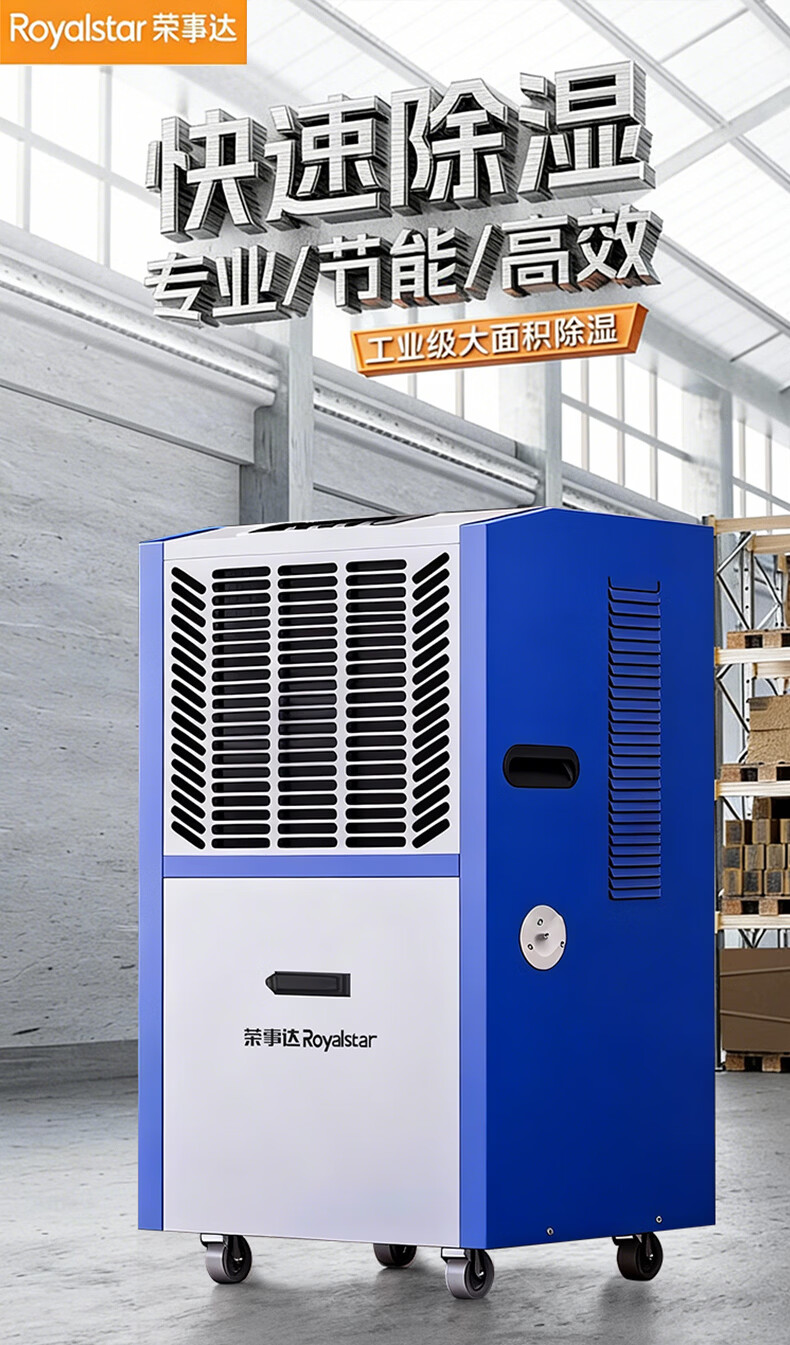 Royalstar industrial dehumidifier has a dehumidification capacity of 90 liters/day and is suitable for 120-180 square meters. It is the first choice for commercial industrial dehumidification RSD-CS890L.