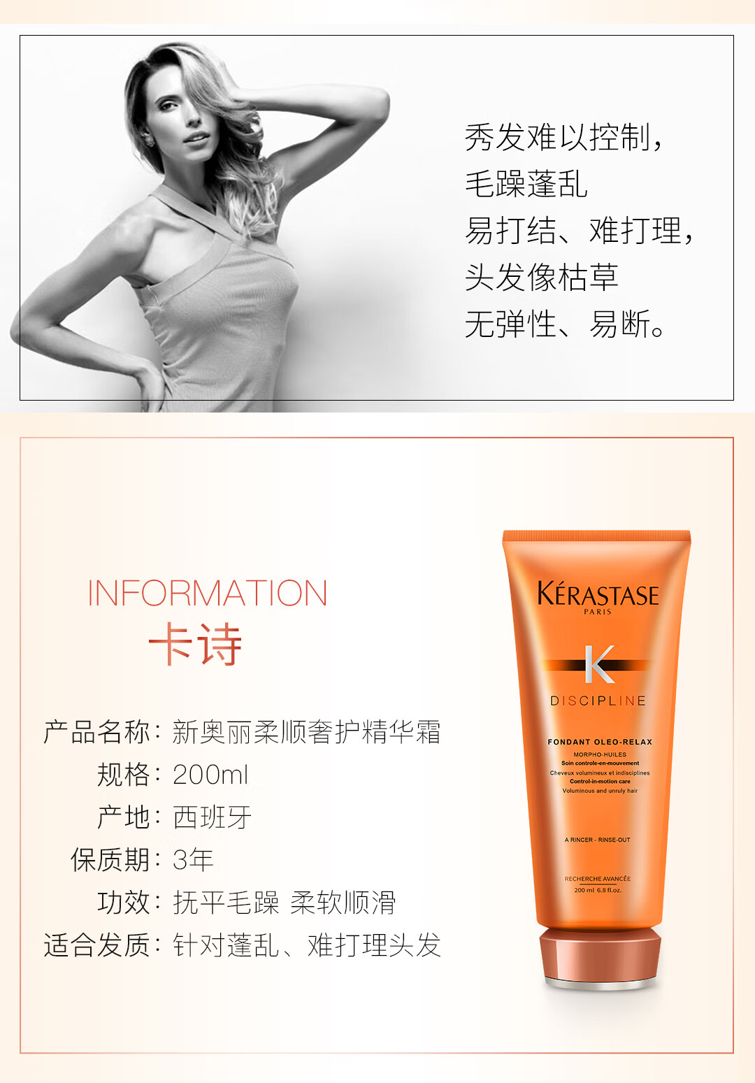 Kérastase Ori Smooth Conditioner 200ml Essence Cream Farewell to the Sofa, Smooth and Light, Improves Frizz
