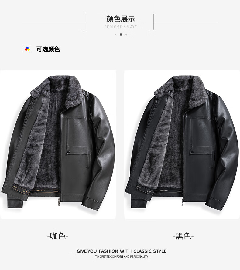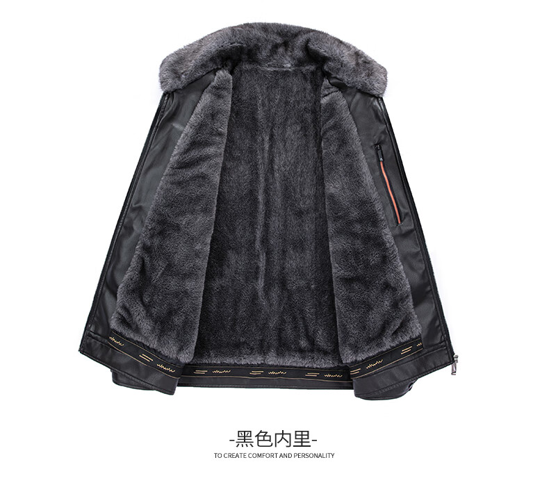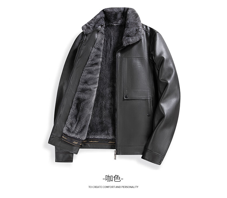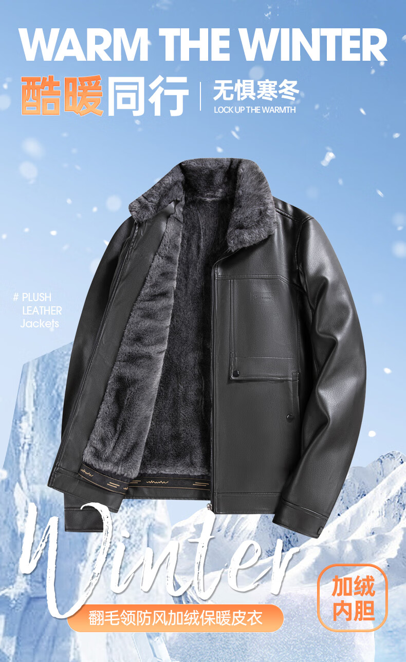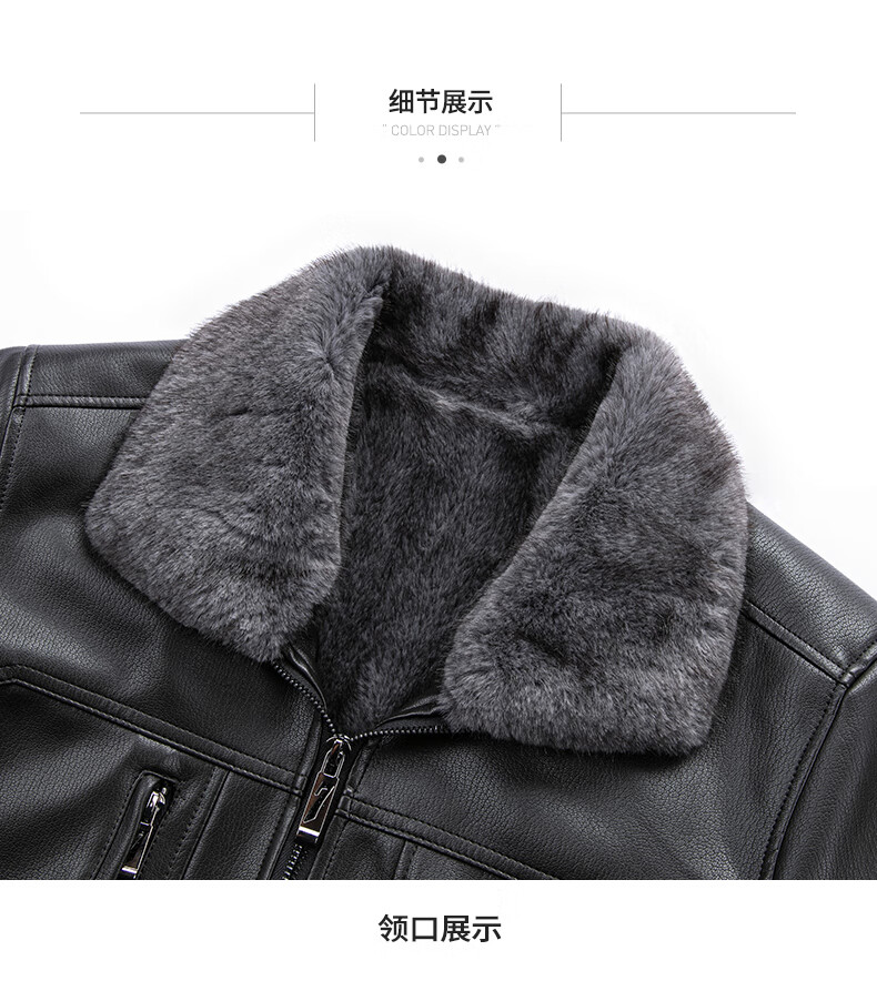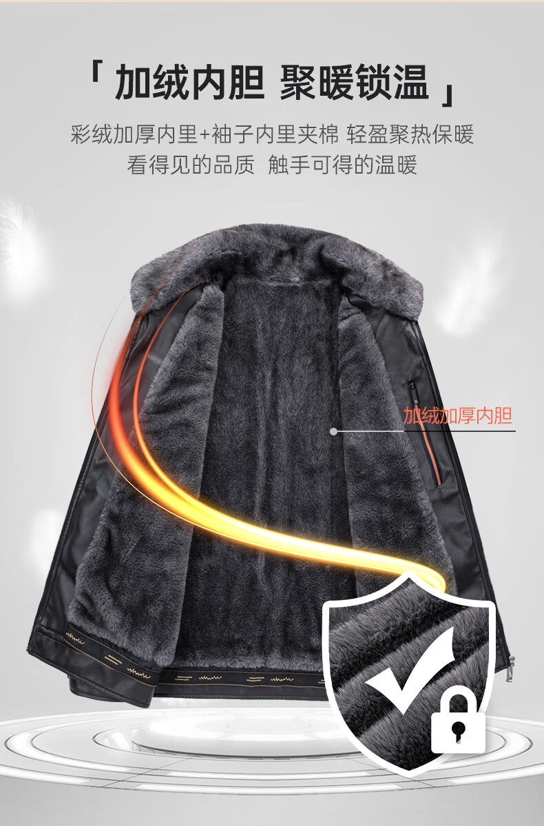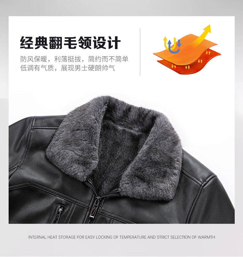 Hengyuanxiang velvet thickened leather jacket men's autumn and winter dad wear warm lapel leather jacket middle-aged dad wear jacket