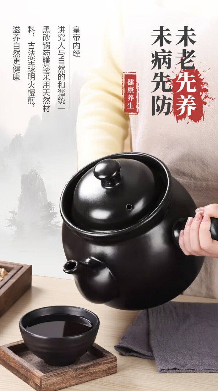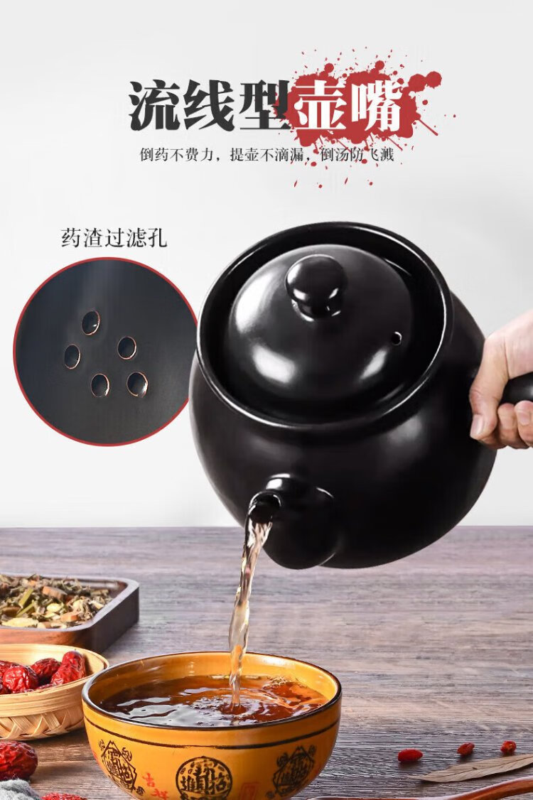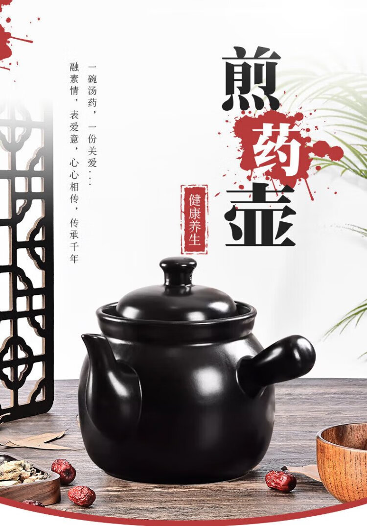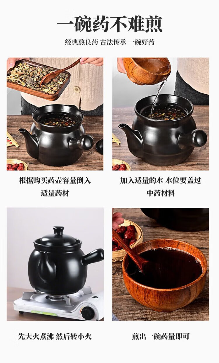 Sister-in-law Jin decoctions the medicine in a casserole and boils the Chinese medicine jar. Open fire ceramic medicine pot. The Chinese medicine pot boils the medicine in the casserole.