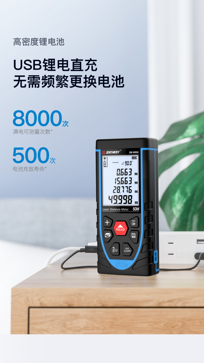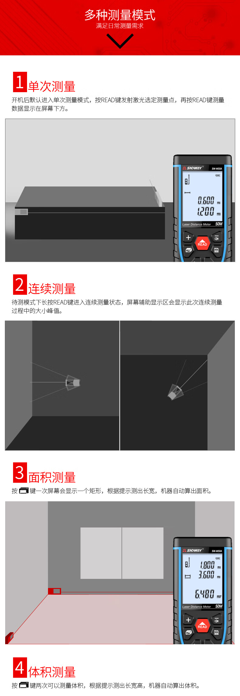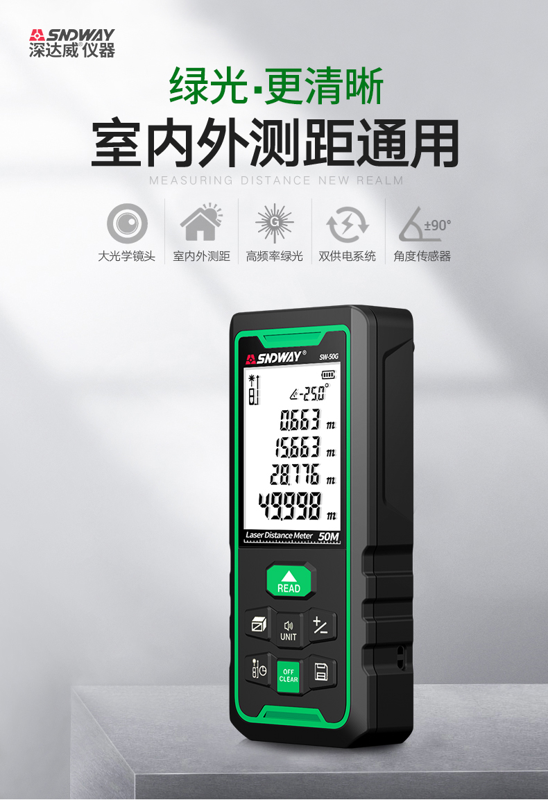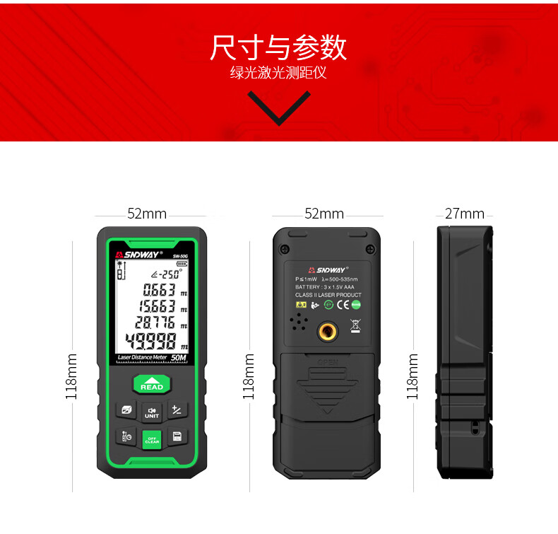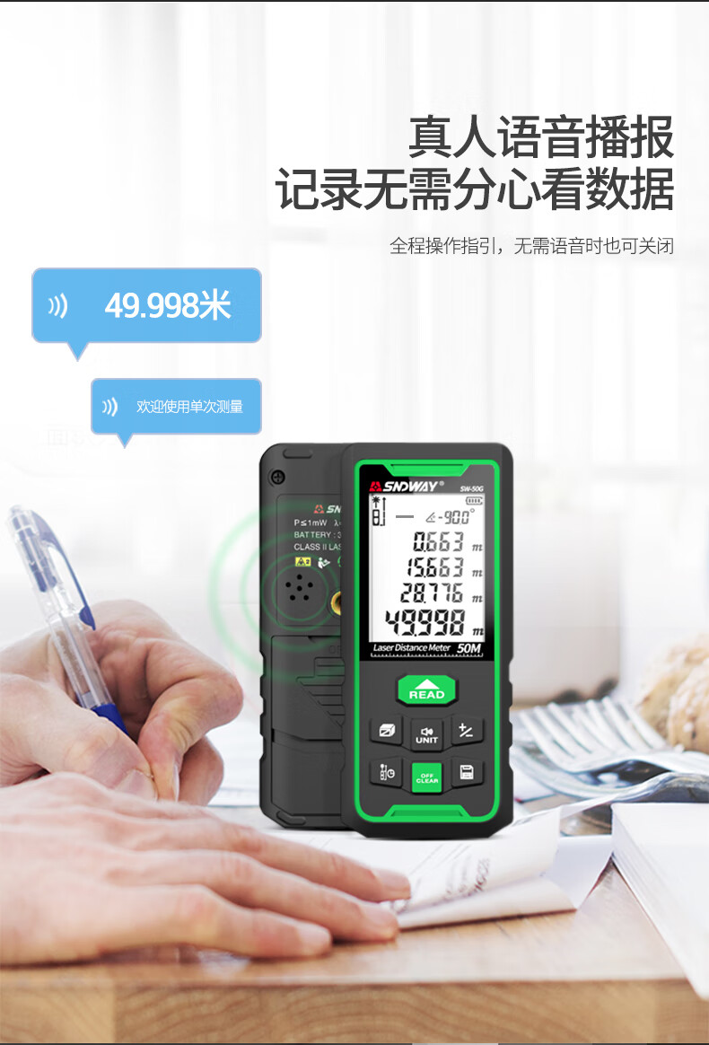 Shendawei laser rangefinder high-precision handheld infrared measuring ruler red light electronic ruler outdoor rangefinder measuring instrument lithium battery voice broadcast 50 meters SW-M50A