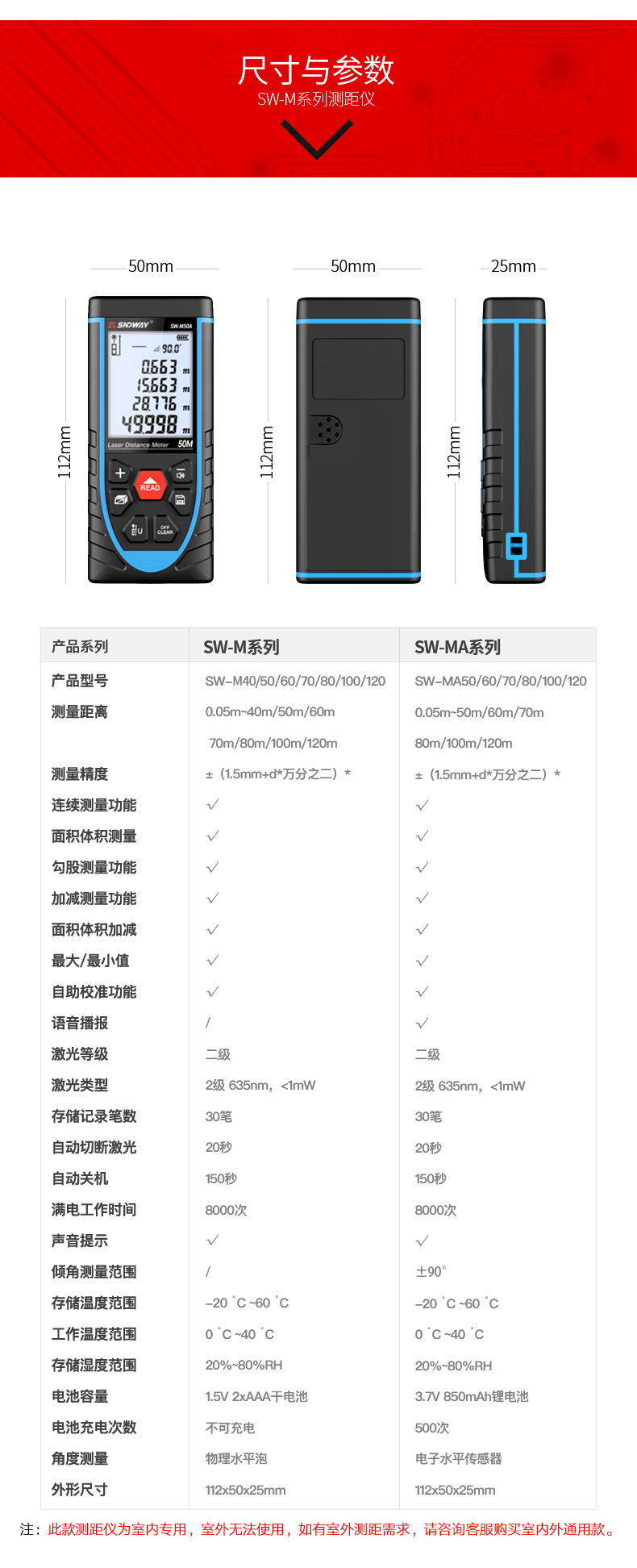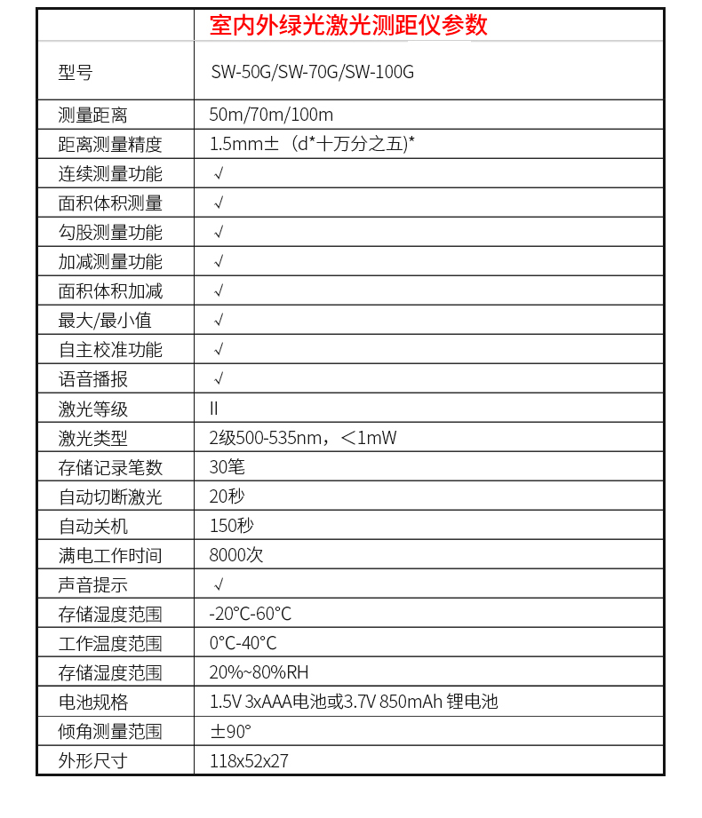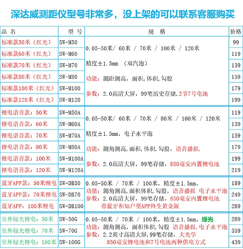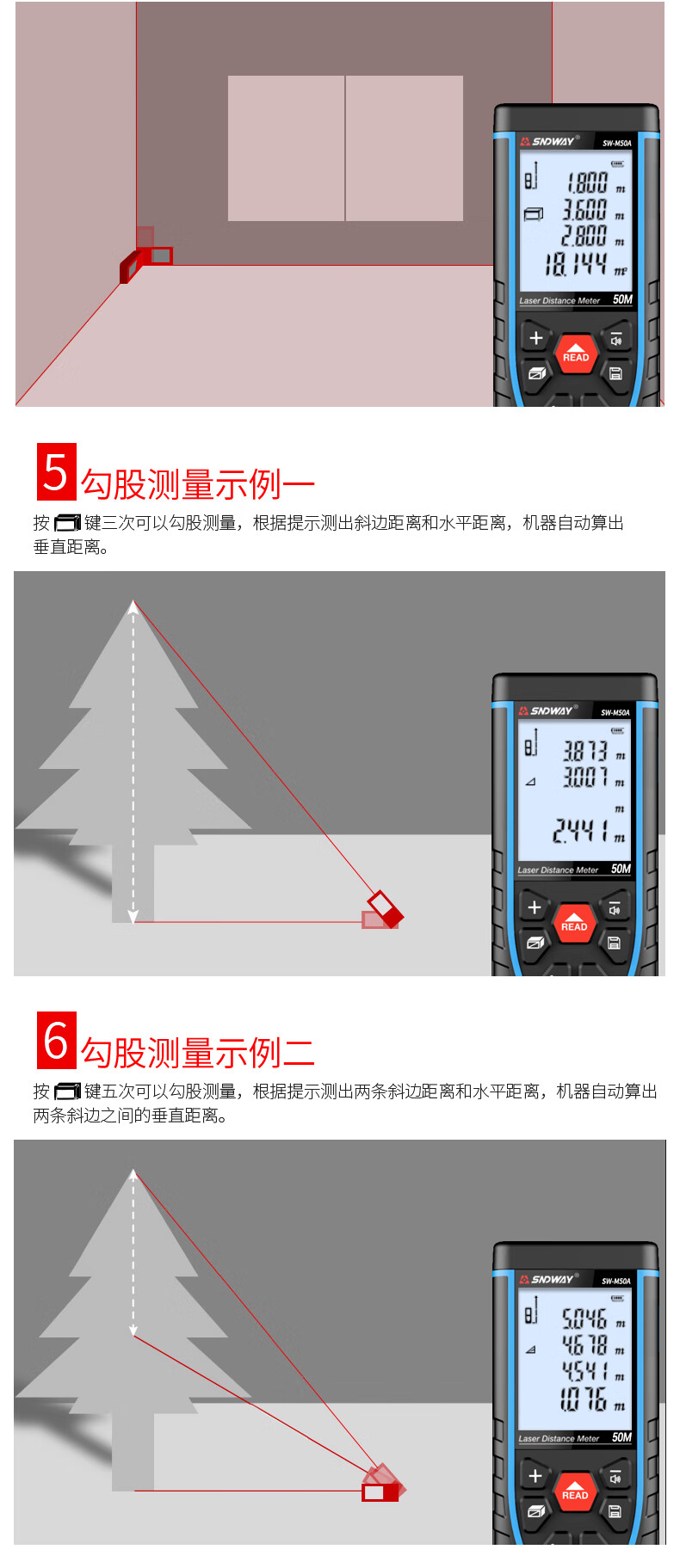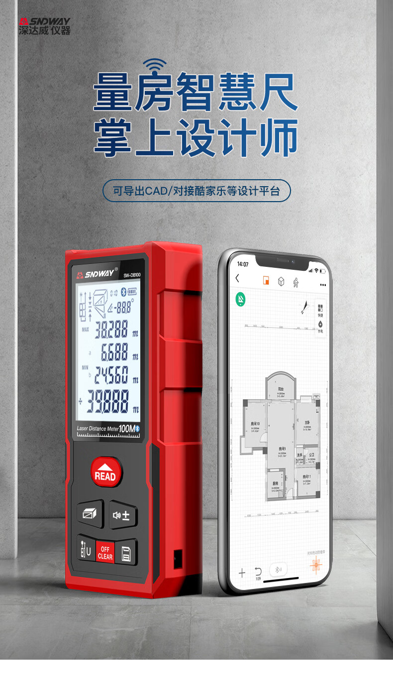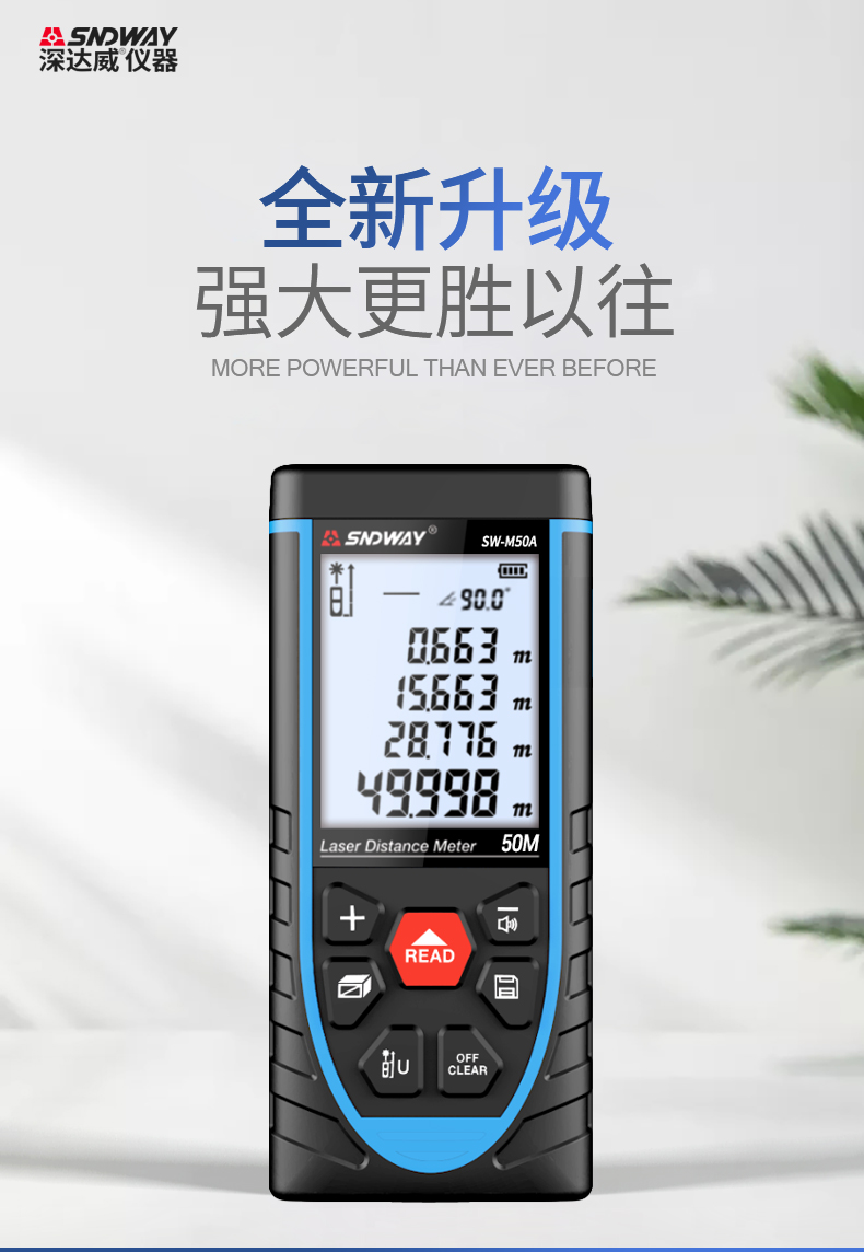Shendawei laser rangefinder high-precision handheld infrared measuring ruler red light electronic ruler outdoor rangefinder measuring instrument lithium battery voice broadcast 50 meters SW-M50A
