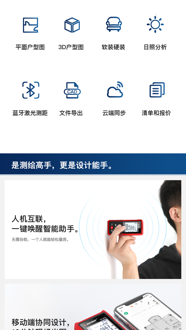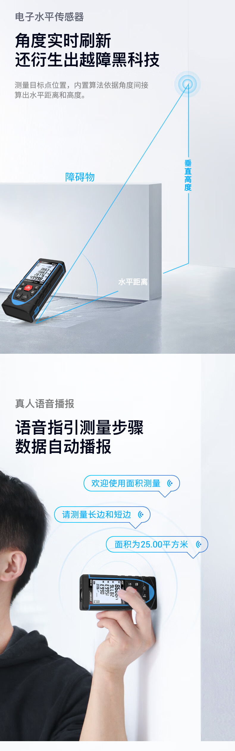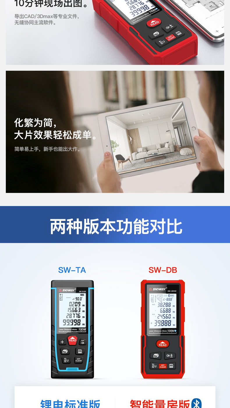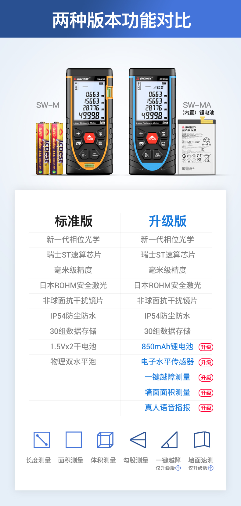 Shendawei laser rangefinder high-precision handheld infrared measuring ruler red light electronic ruler outdoor rangefinder measuring instrument lithium battery voice broadcast 50 meters SW-M50A