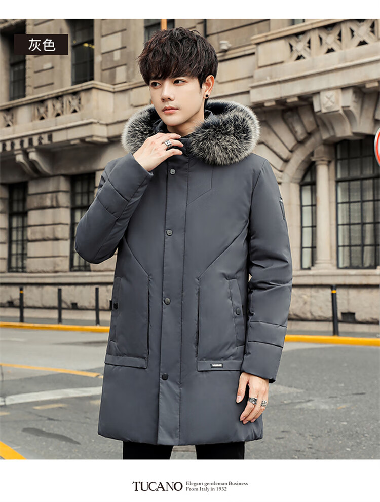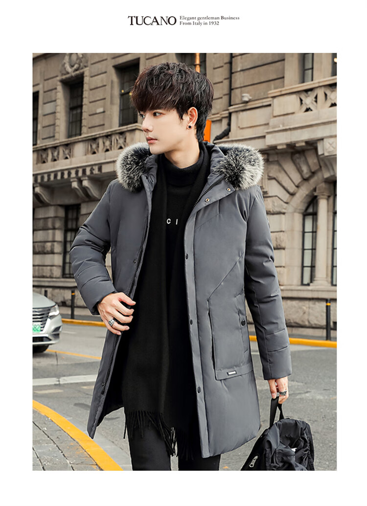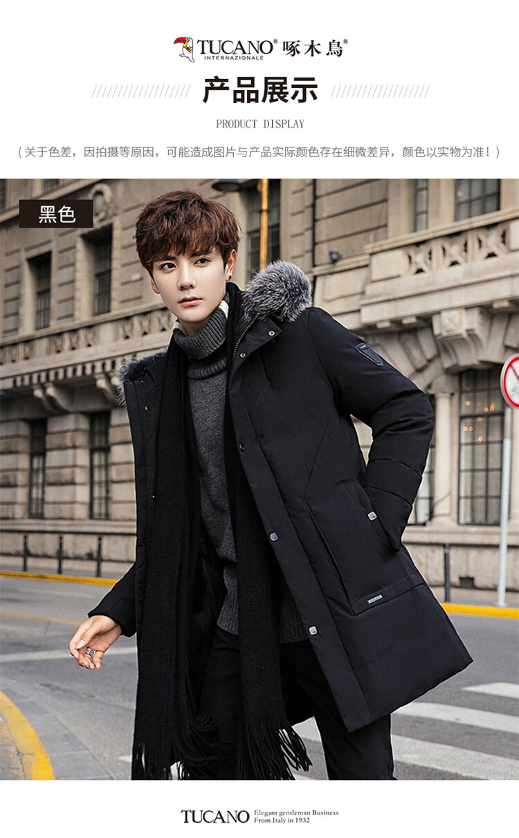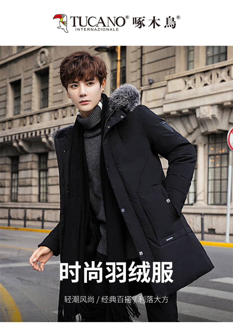 Woodpecker (TUCANO) down jacket men's mid-length winter thickened warm casual jacket men's fur collar extreme cold men's wear black XL