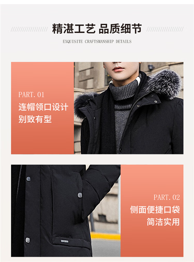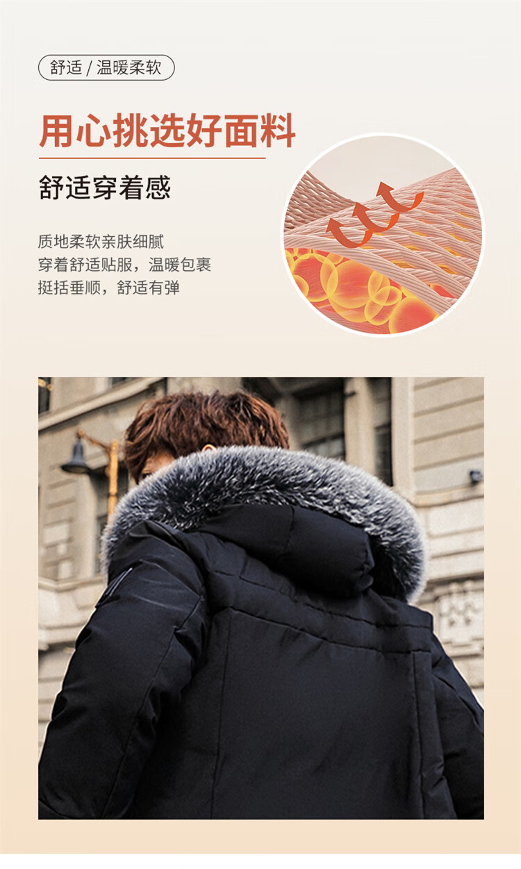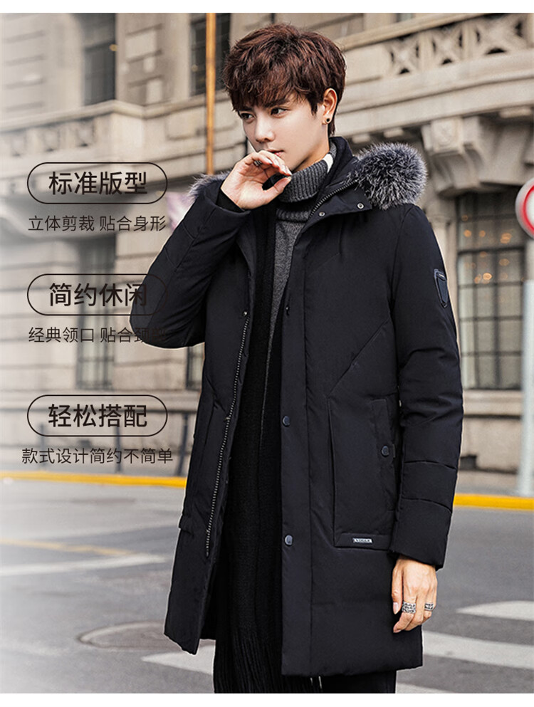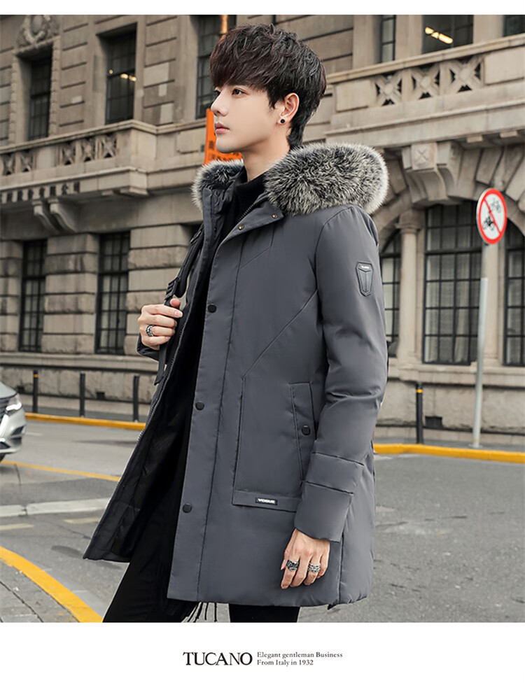Woodpecker (TUCANO) down jacket men's mid-length winter thickened warm casual jacket men's fur collar extreme cold men's wear black XL