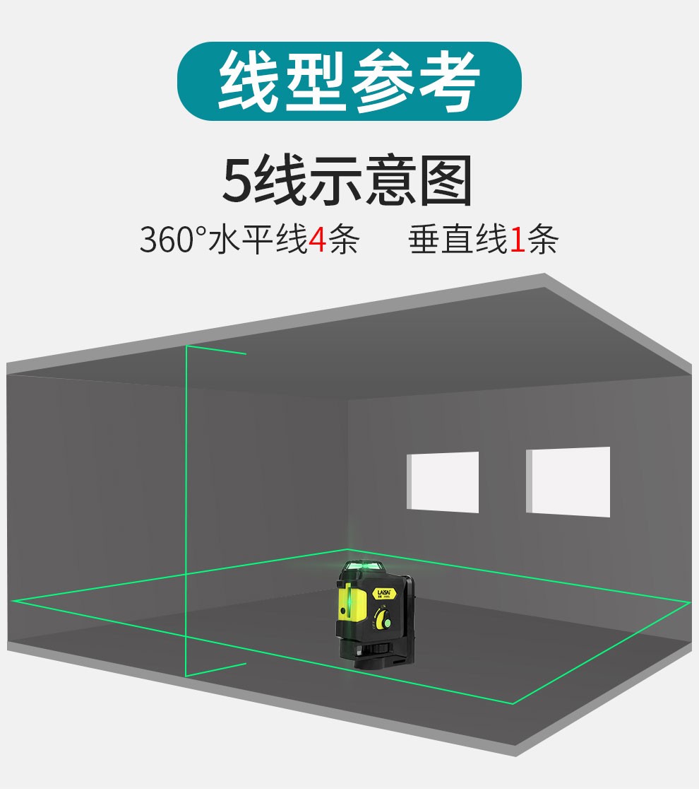 Laisai laser excellent radium level five-line green light wall-mounted infrared 5-line high-precision bright light leveler 5-line green light UNG660SL standard