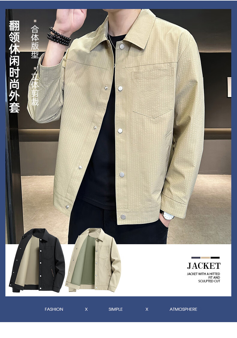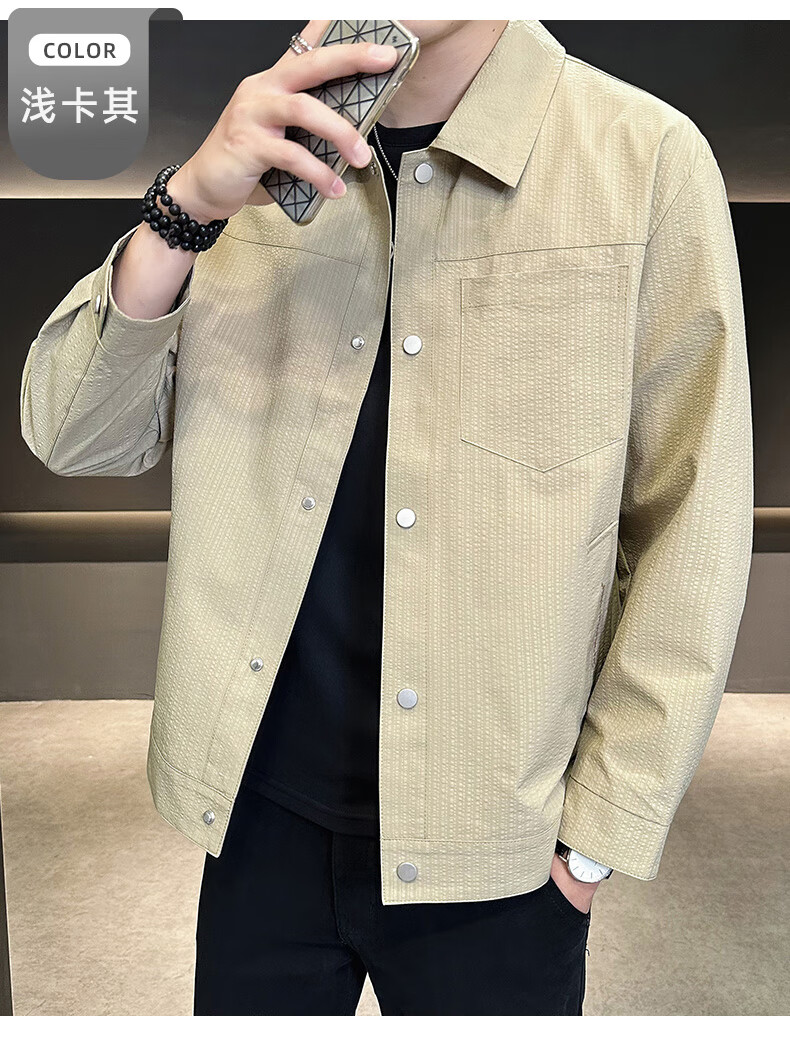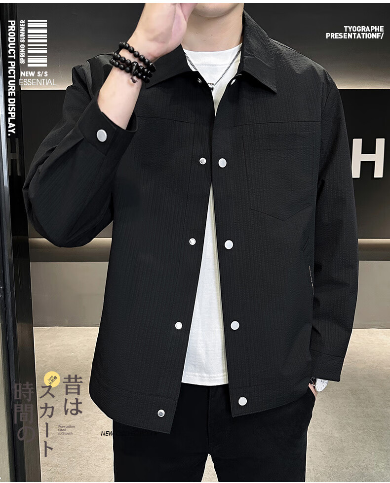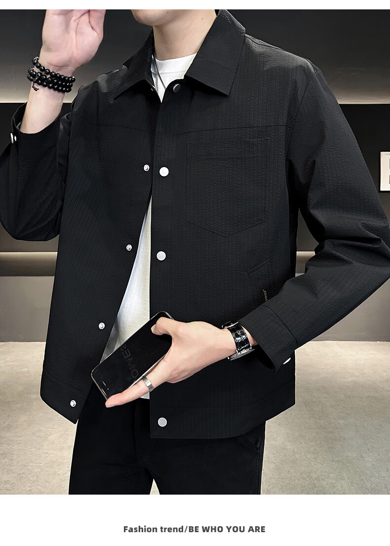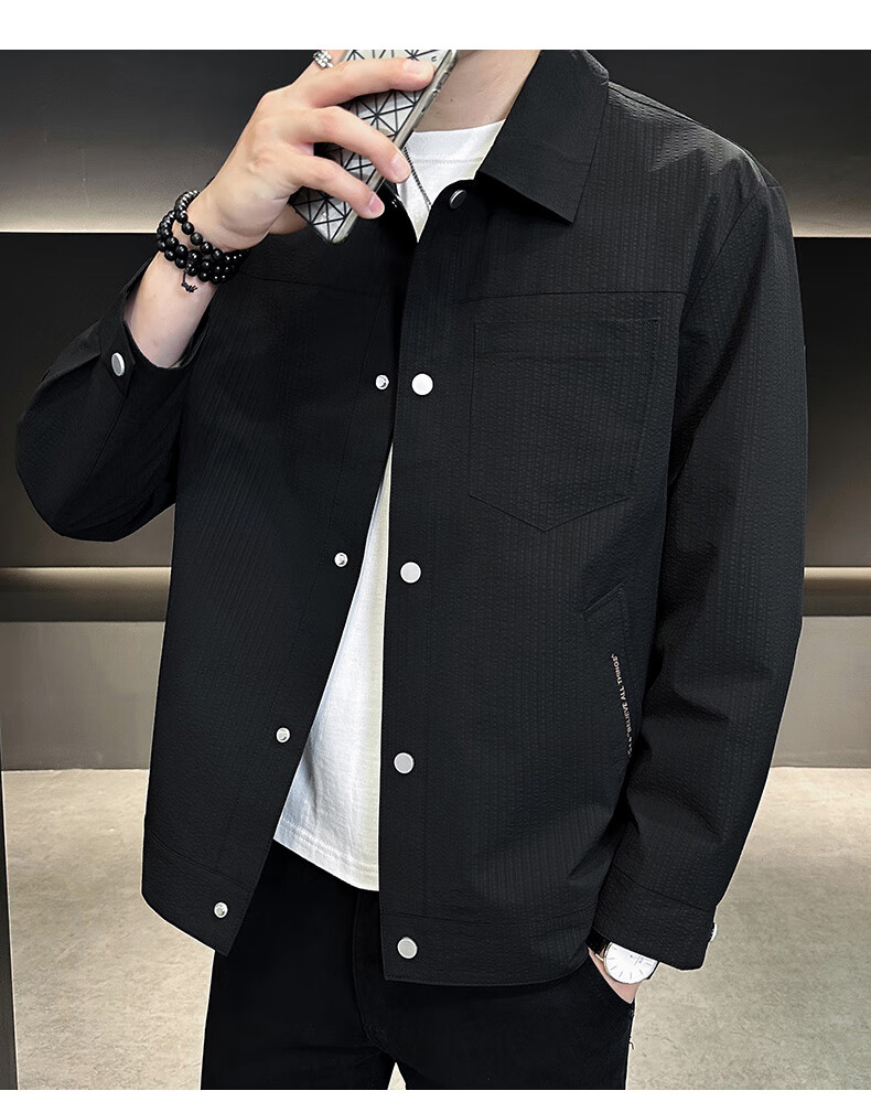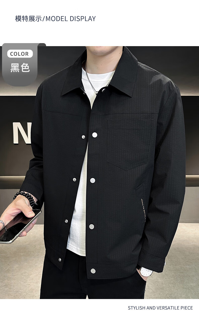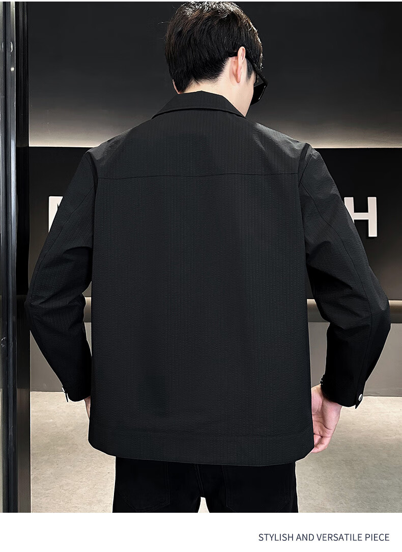 ROMON coat autumn and winter men's velvet thickening versatile workwear lapel high-end casual jacket top black 2XL