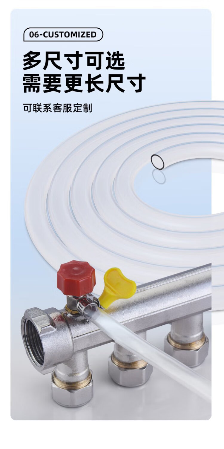 A beautiful floor heating drain pipe, floor heating exhaust hose, radiator water distributor cleaning exhaust valve exhaust pipe accessories, 6mm inner diameter, 3 meters transparent silicone hose