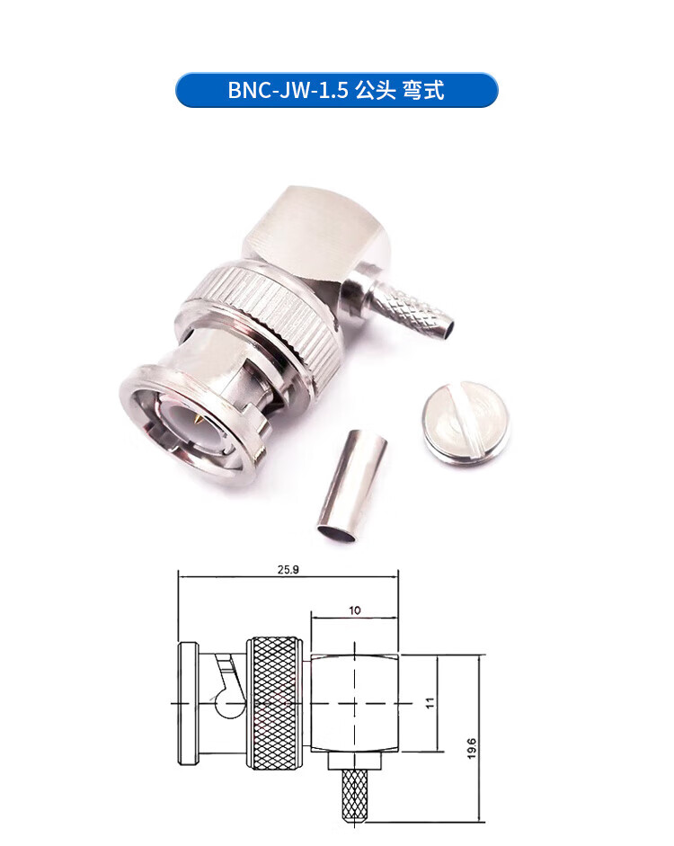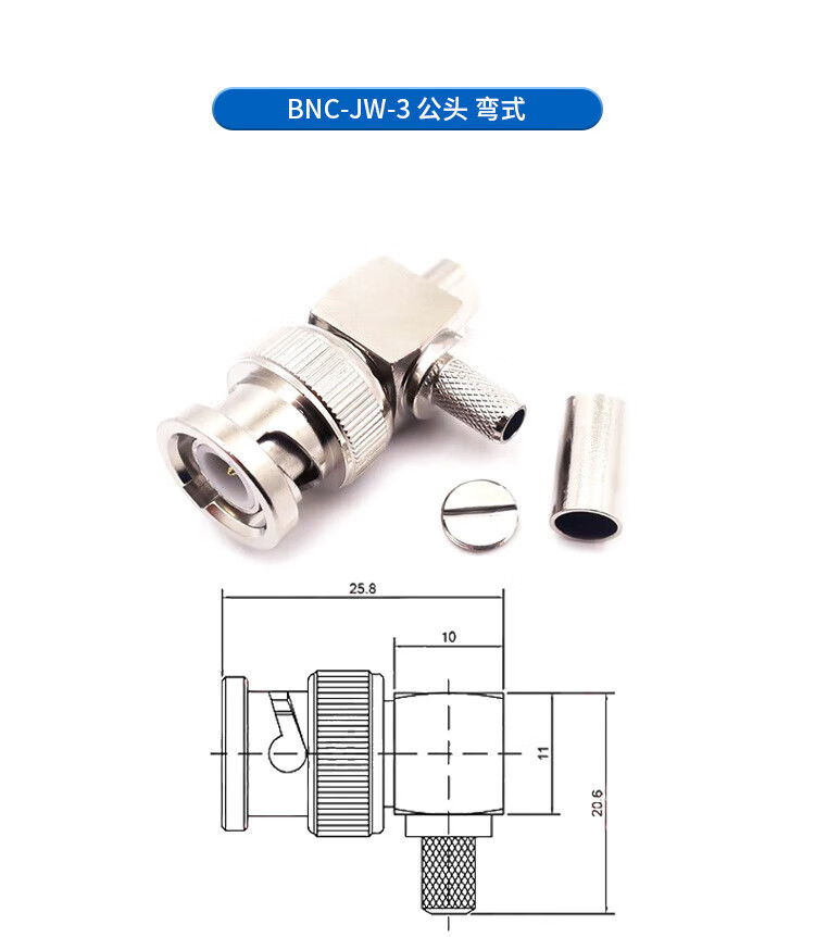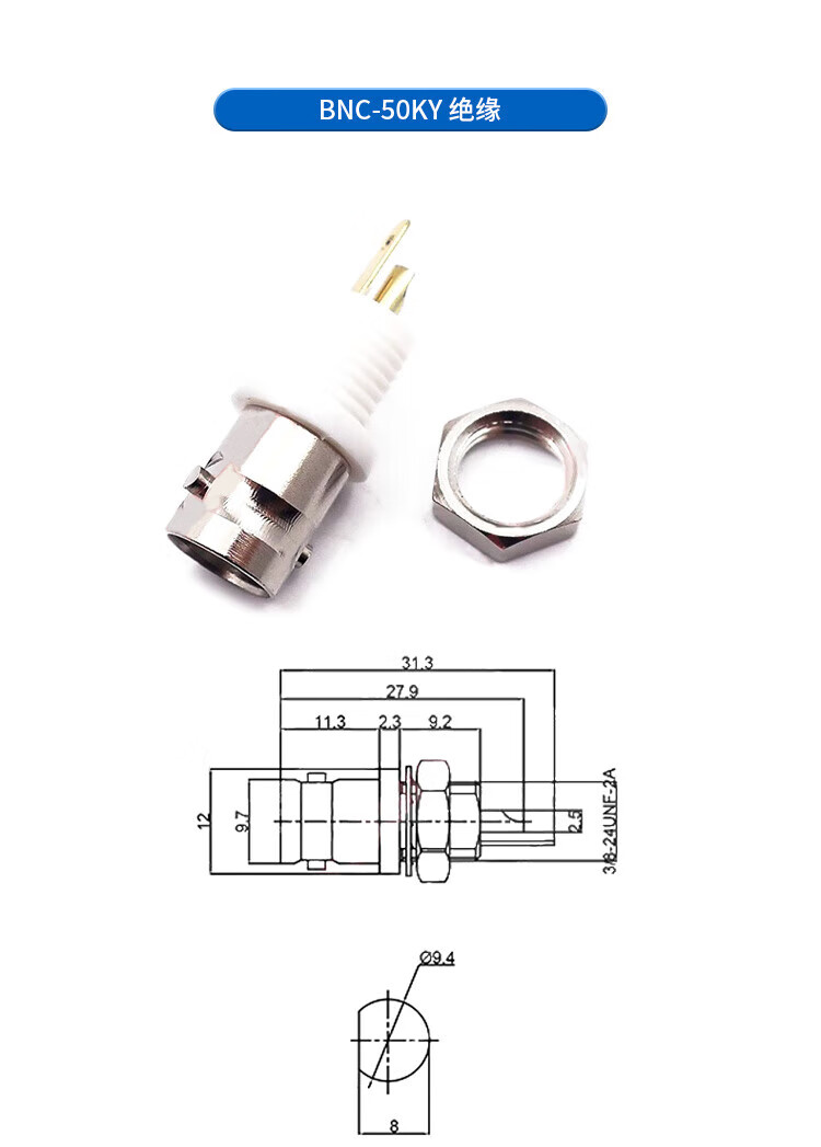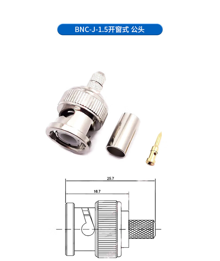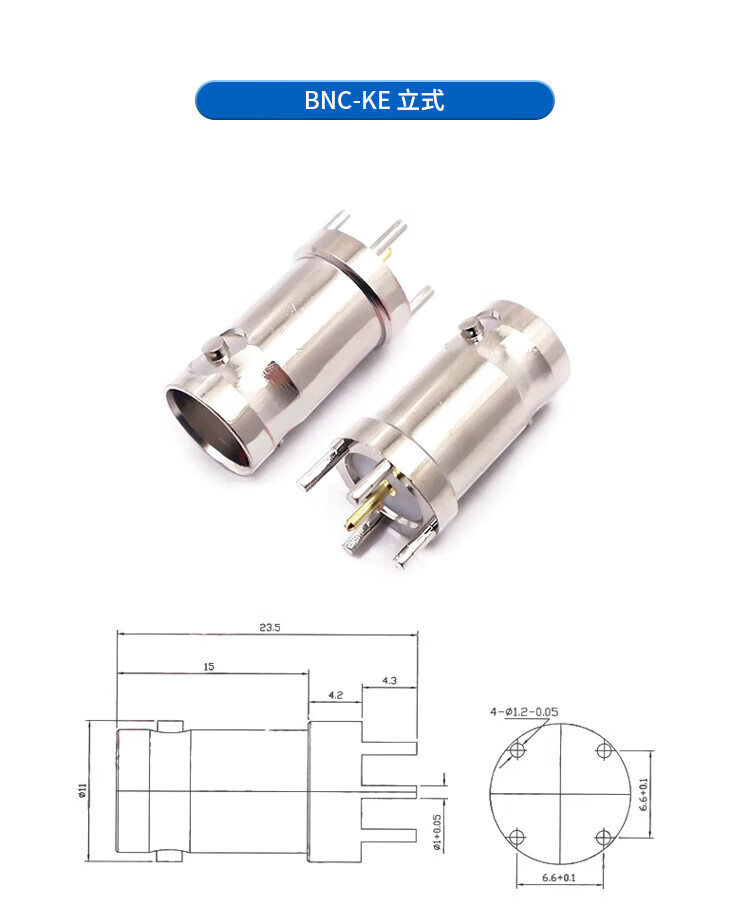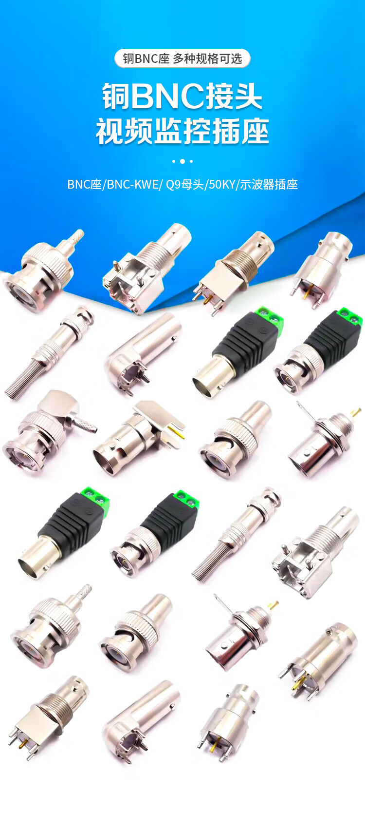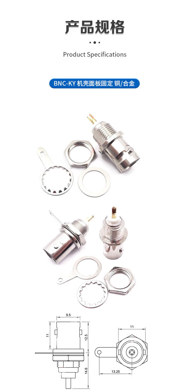 Qantop BNC connector video surveillance socket connector BNC-KW horizontal 35MM long
