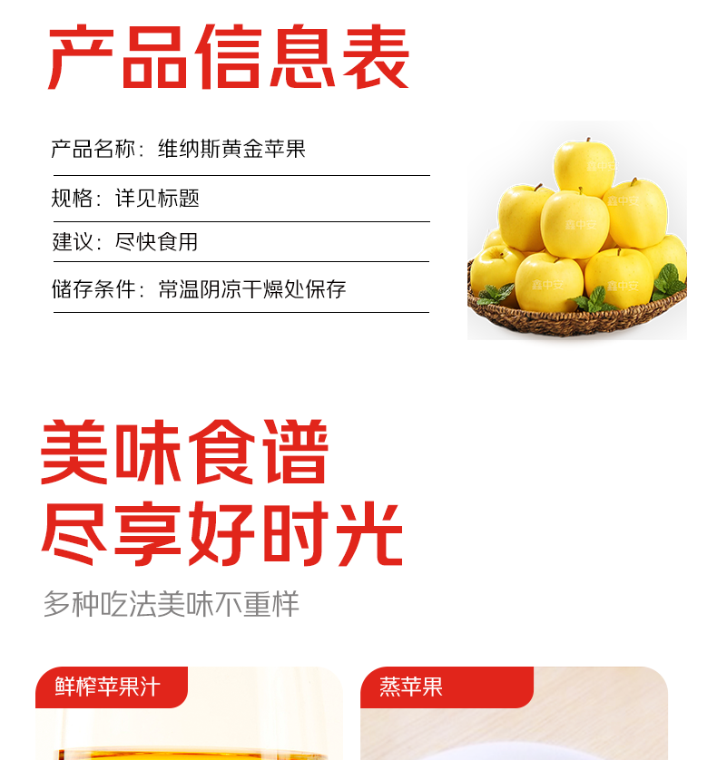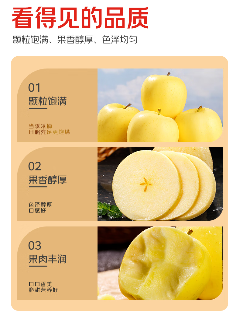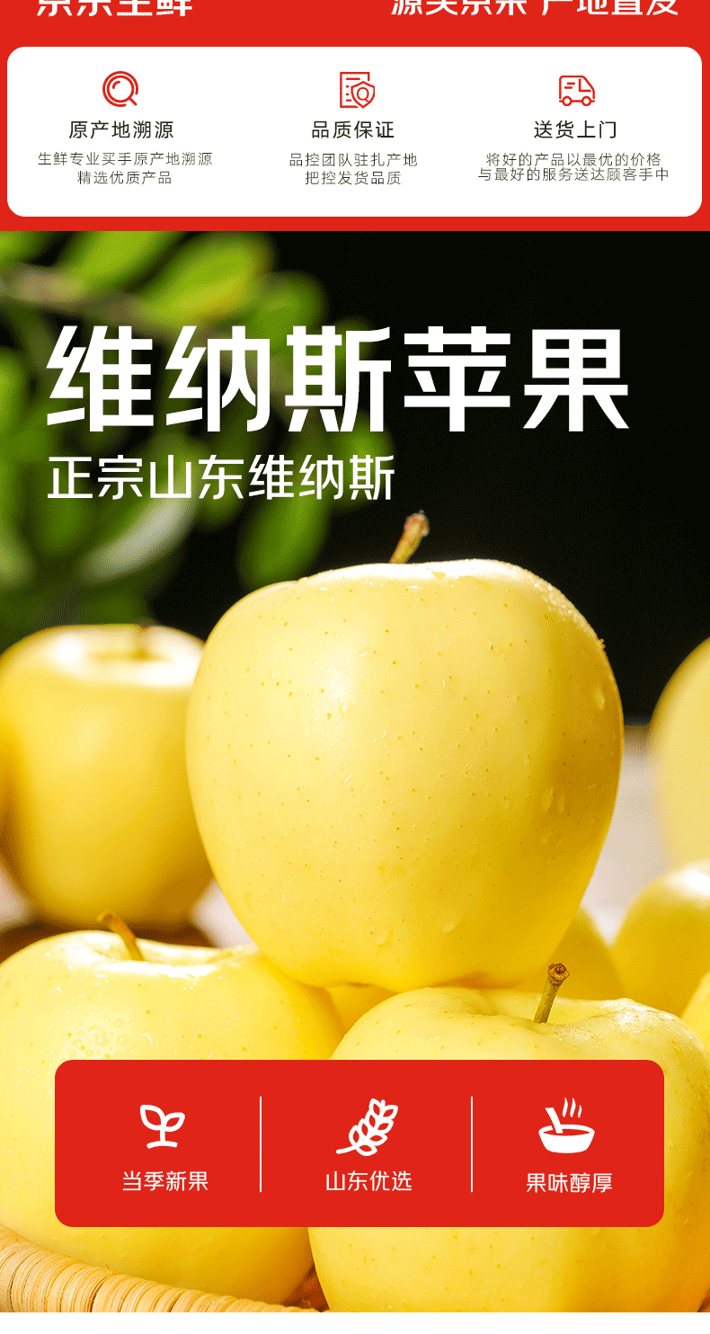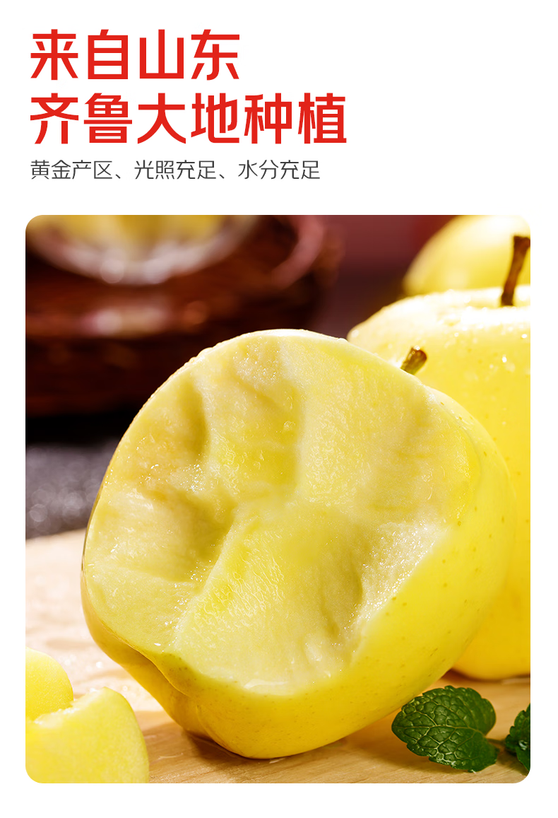 Jingdida Shandong Yantai Golden Venus Apple, net weight 5 pounds, large fruit, single fruit 75mm + direct shipping from the fruit source, free shipping