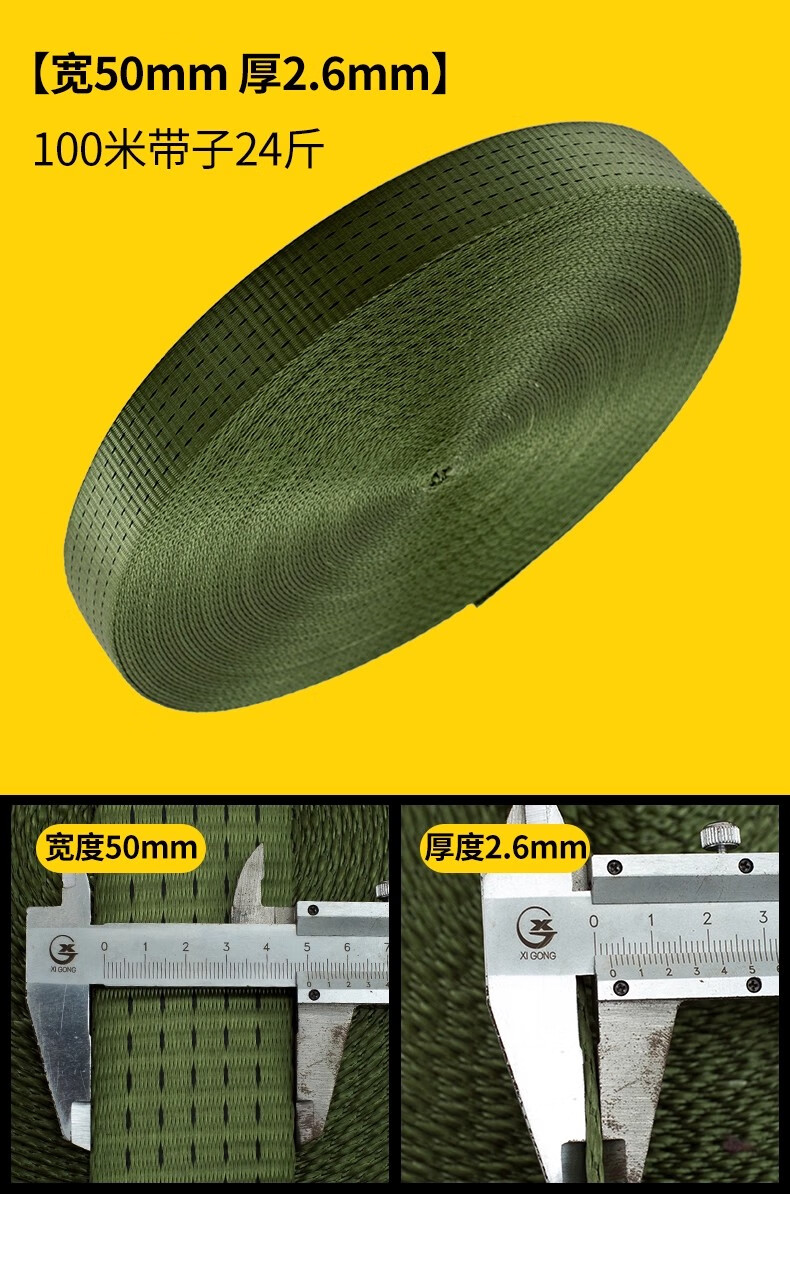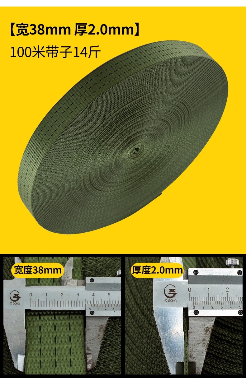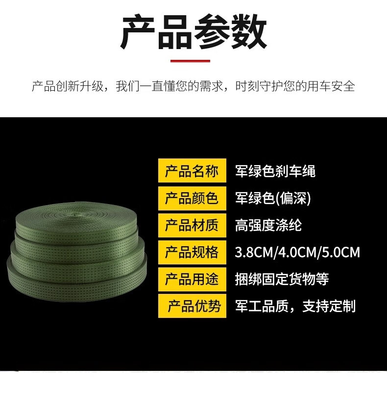 Yiying (Yiying) thickened military green strap car pull rope truck brake rope cargo binding belt trailer rope flat belt 4cm wide 10 meters long