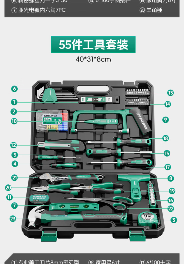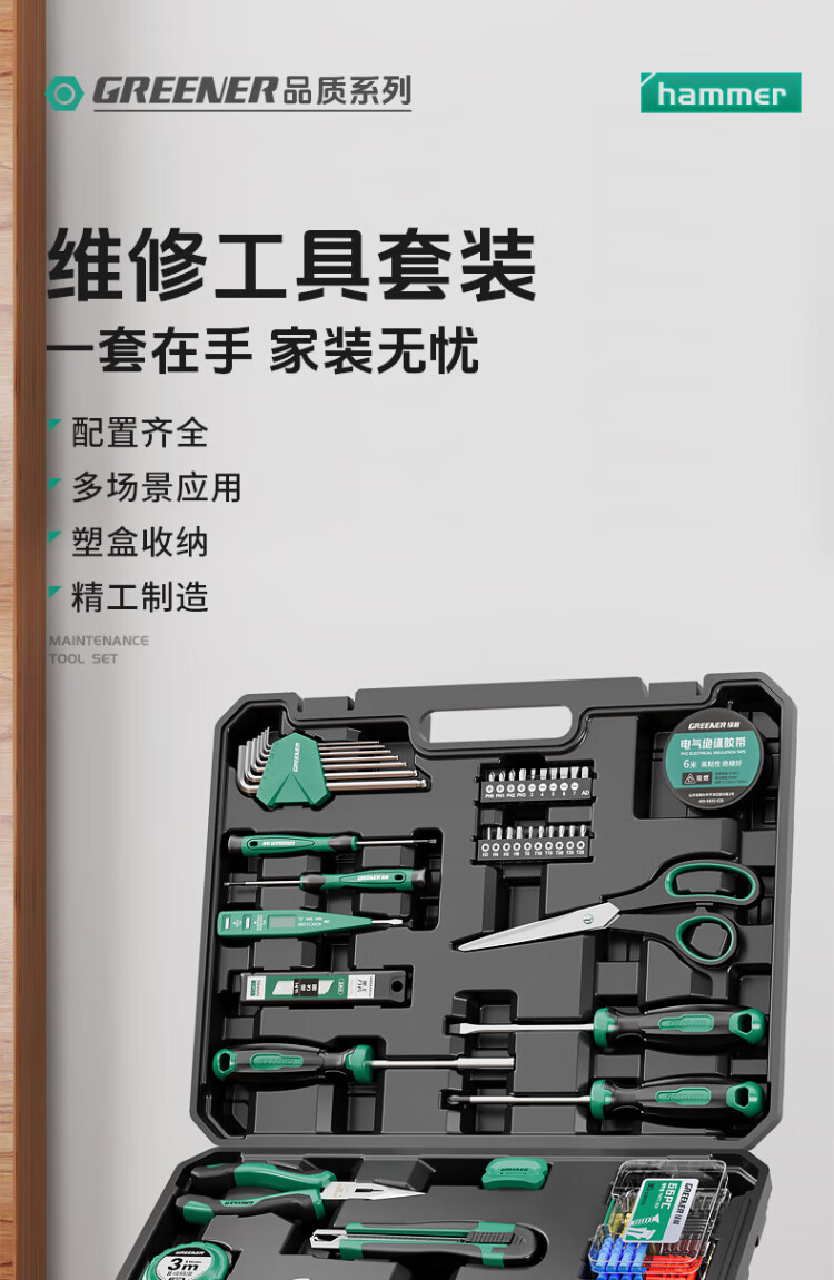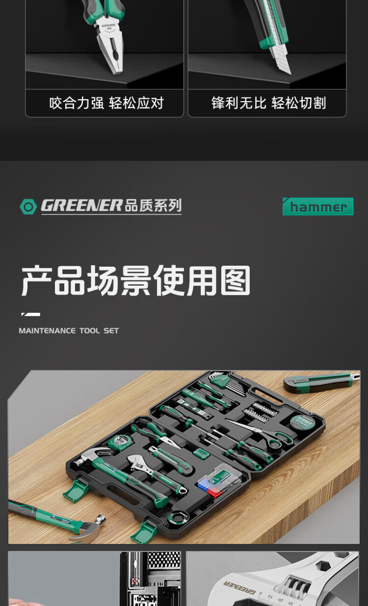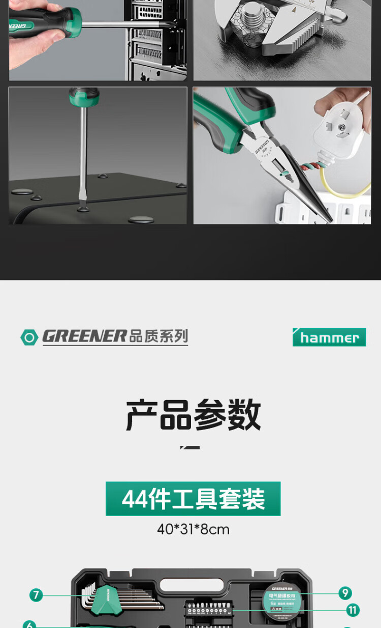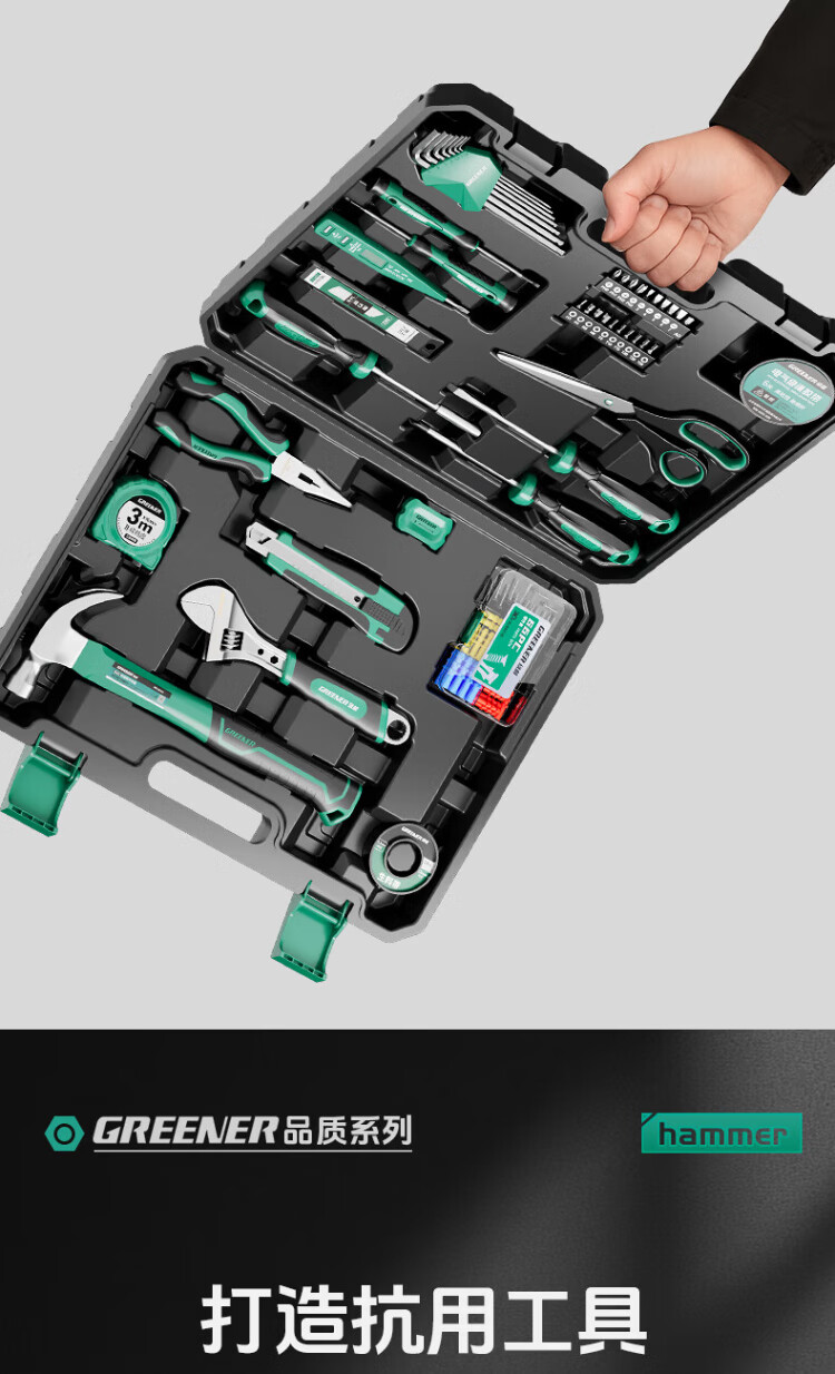 GREENER household tool box set, electrician, woodworking, telecommunications repair set, hardware hand tool set, 44-piece set