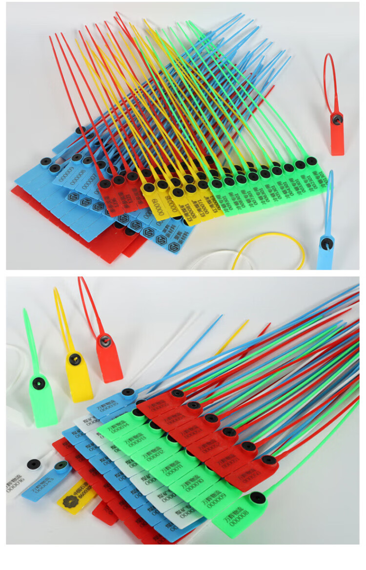 Jiuqiangu plastic seal with number seal, disposable anti-disassembly logistics seal, truck, tanker, container plastic seal, anti-theft and anti-displacement package, 28CM red 100 pieces with random number