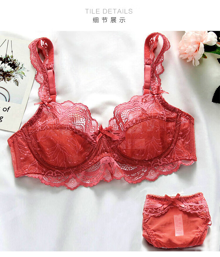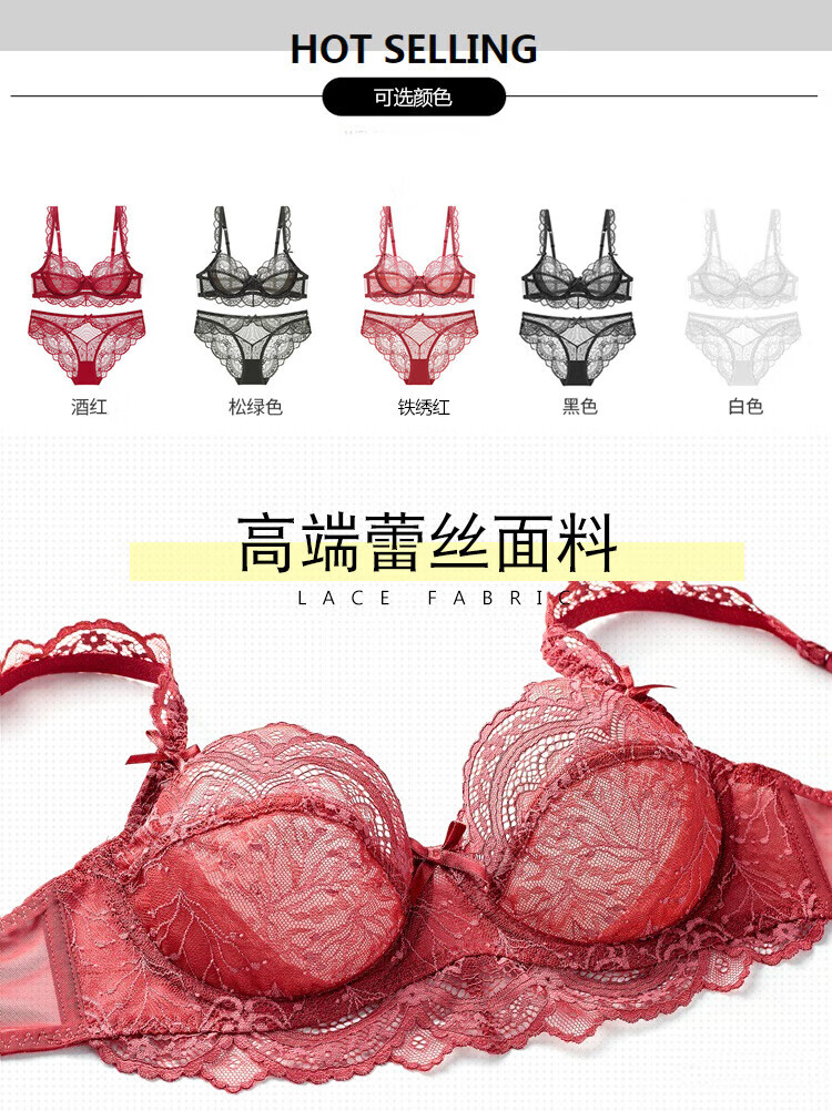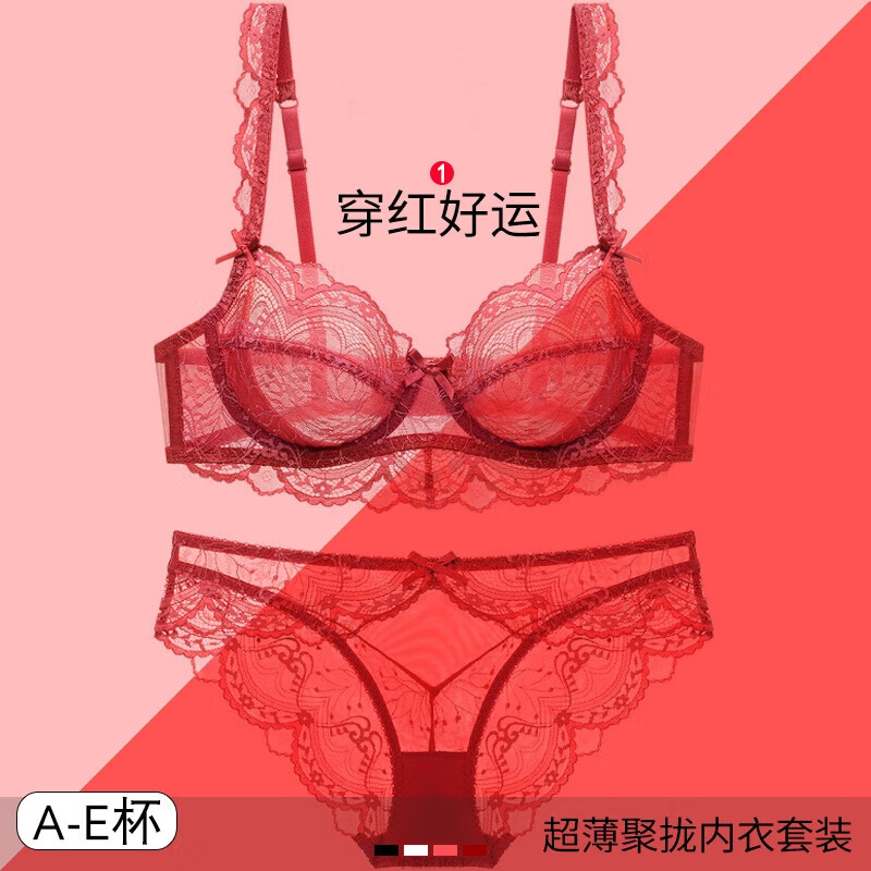 LangSha Red Bra Set Lace Sexy Push-Up Thin Underwear Women Wedding Year of the Horse Qi Ji Red Zodiac Year Bra
