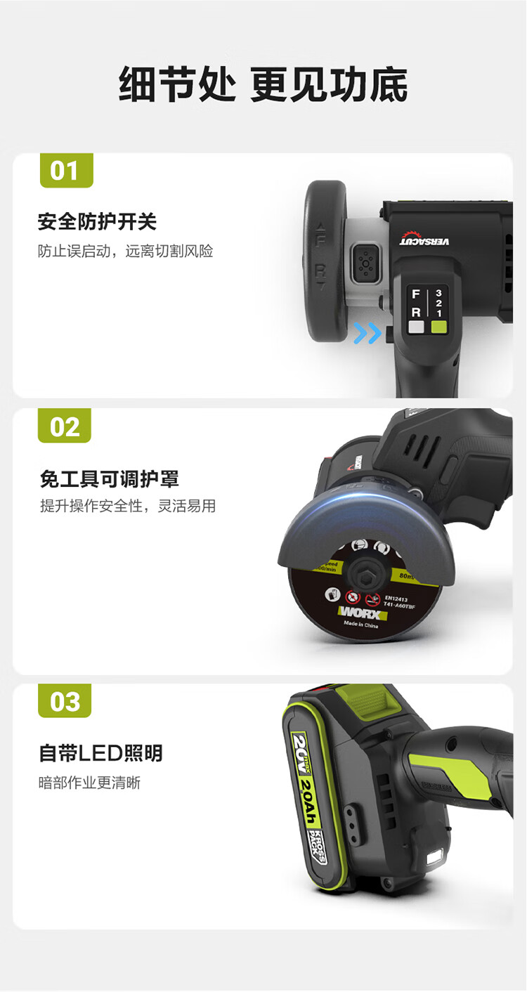 Wicks Kitty Hawk Saw 20V 76mm small brushless angle grinder lithium battery WU802.9 (bare metal) mini saw cutting machine