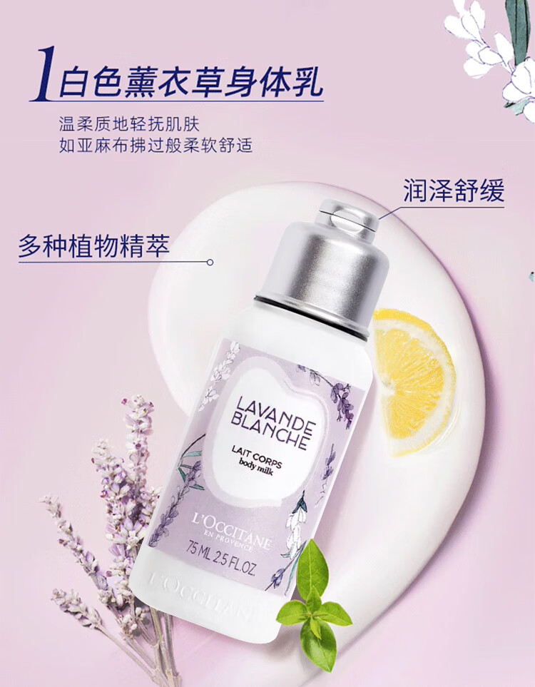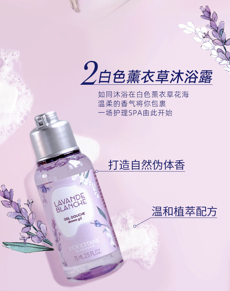 L OCCITANE White Lavender Fragrance Shower Gel 75ml + Body Lotion 75ml on clearance