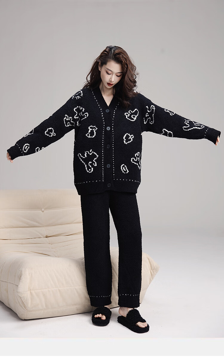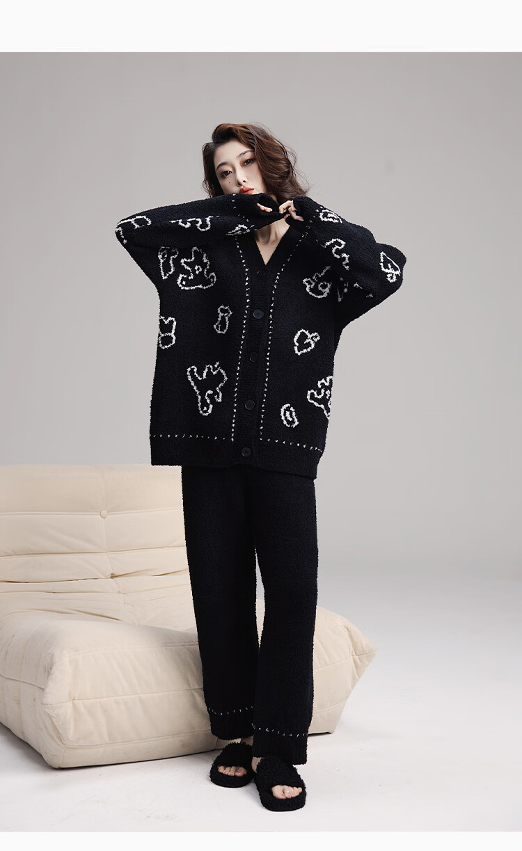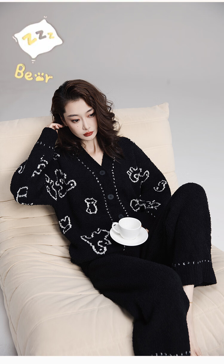 GUJIN half-velvet autumn and winter new long-sleeved pajamas, women's home clothes, sweater pajamas, can be worn outside, plus velvet thick cardigan suit