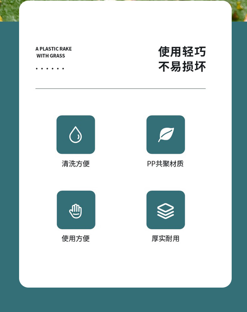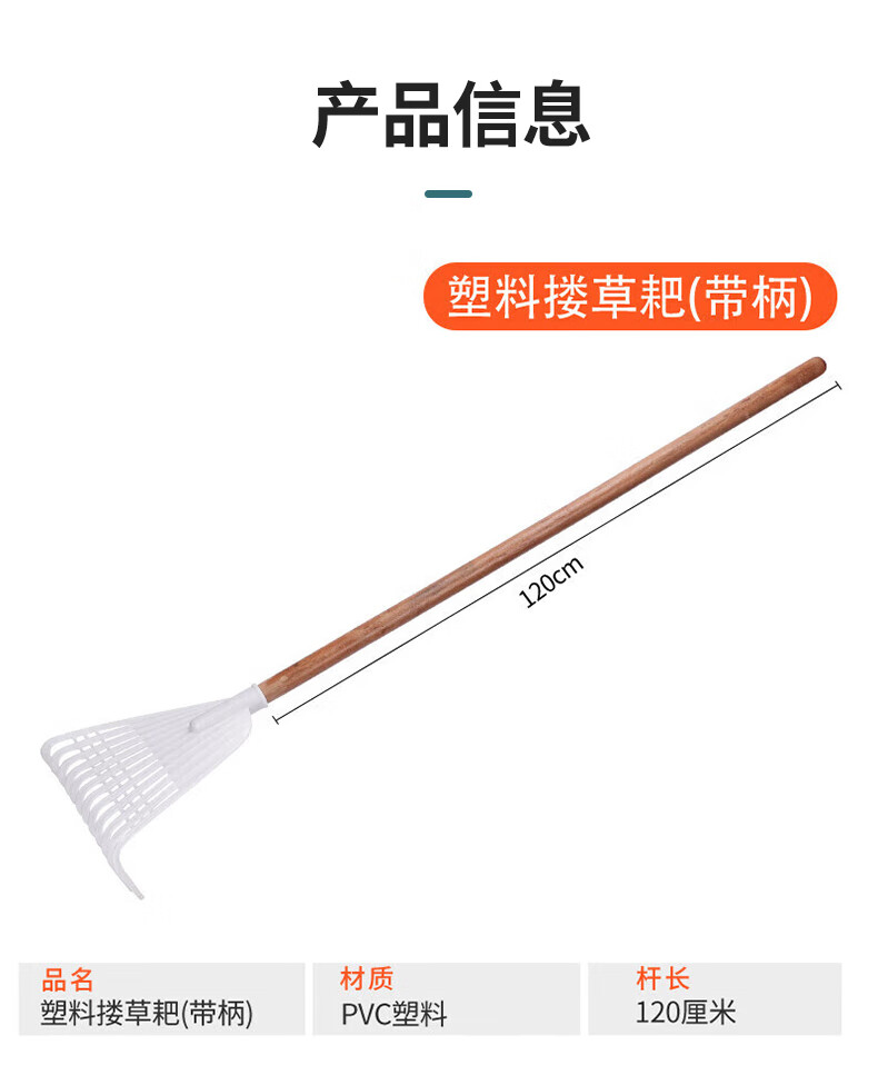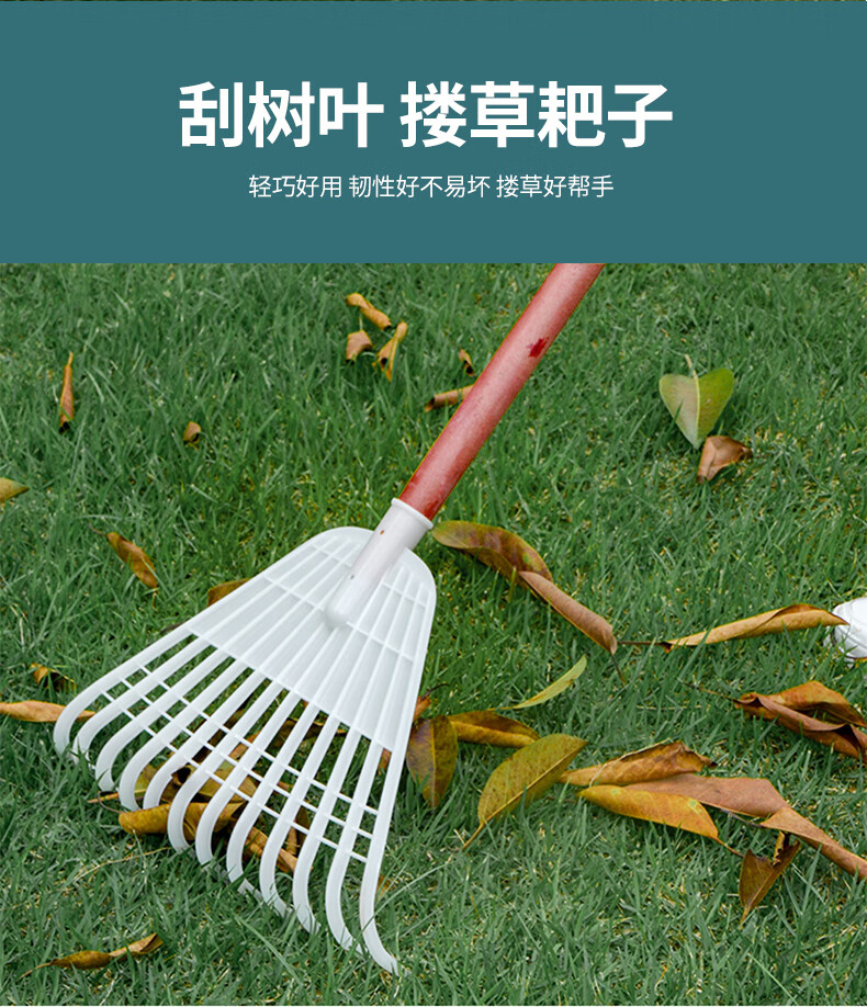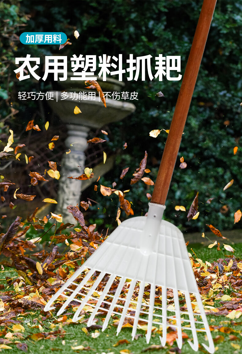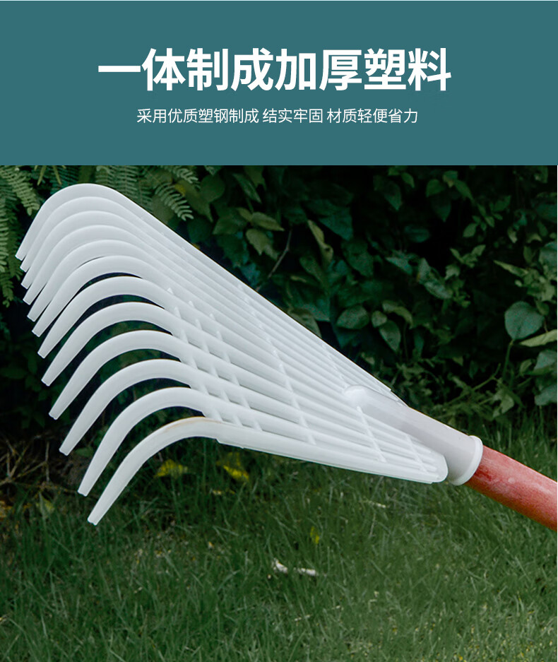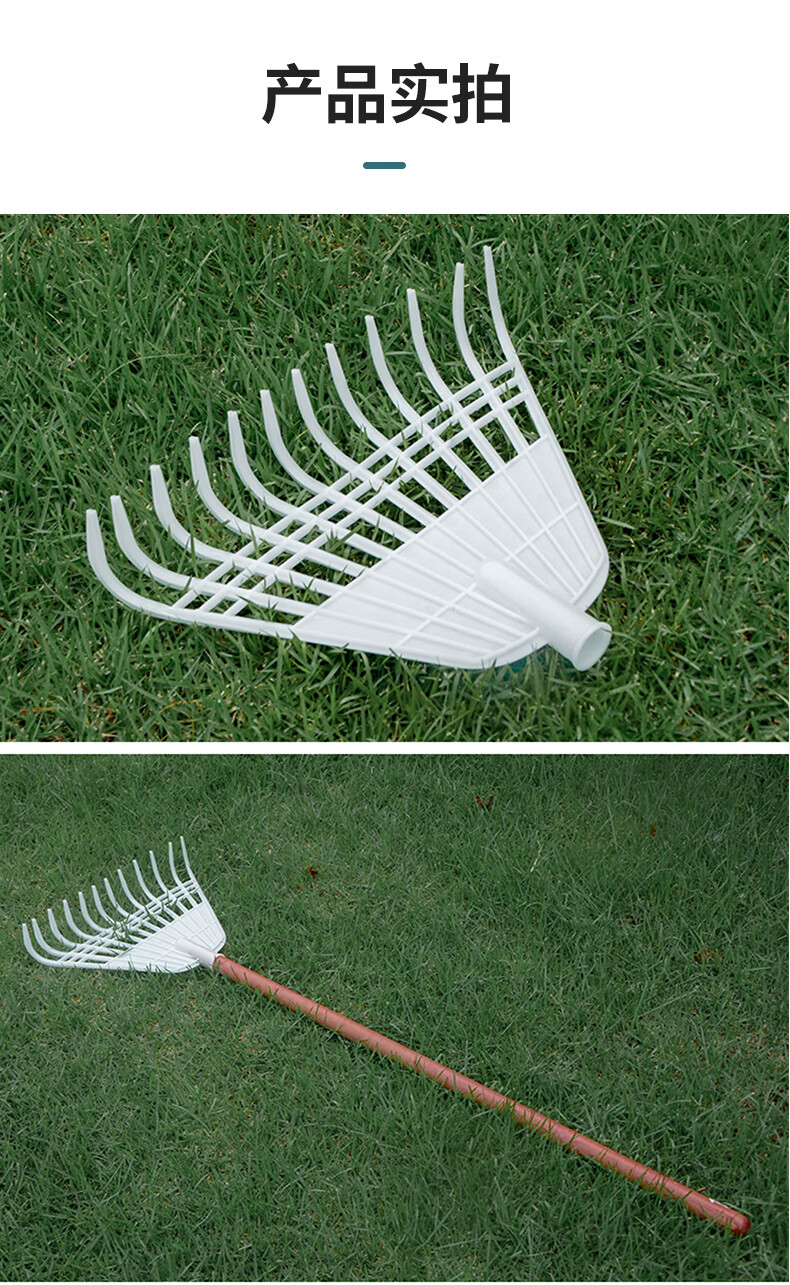 Yigongding plastic rake, grass rake, deciduous grass rake, grain rake, factory agricultural use, length 32mm, width 38mm, white (with wooden handle)