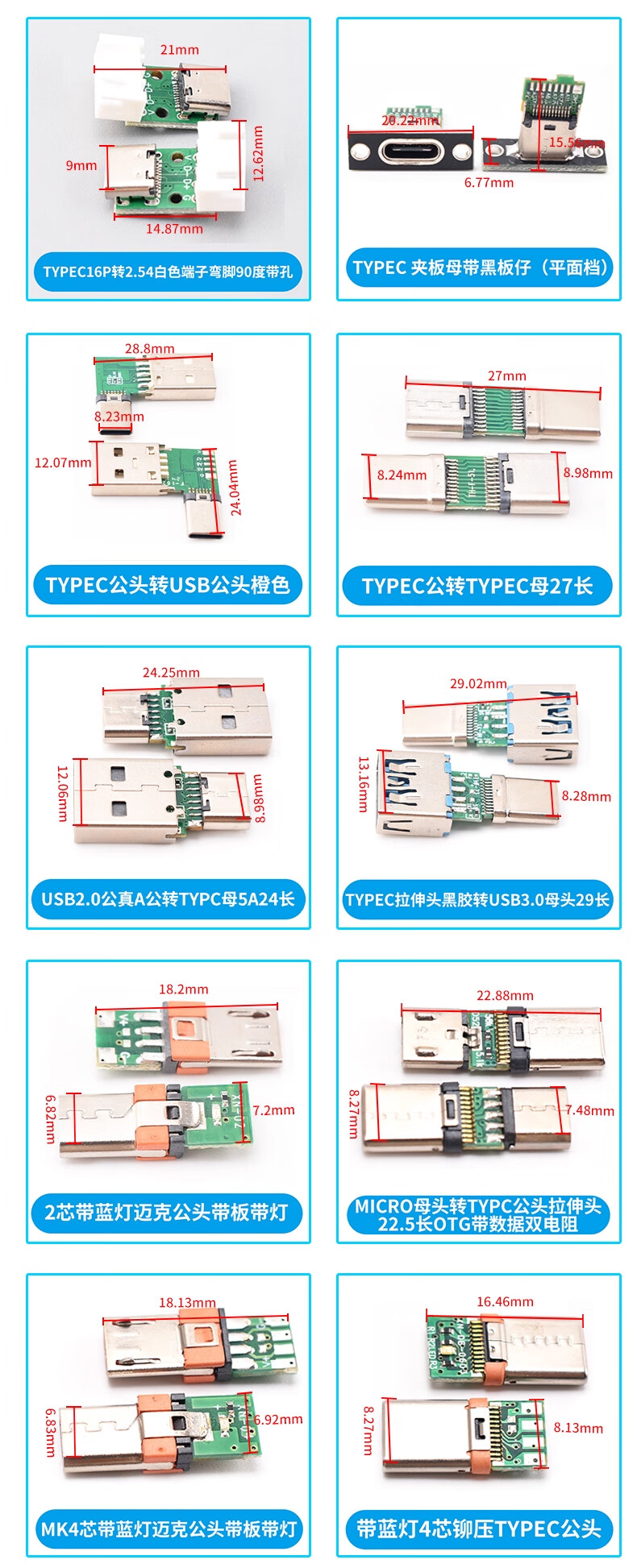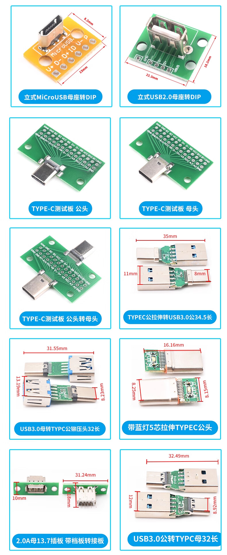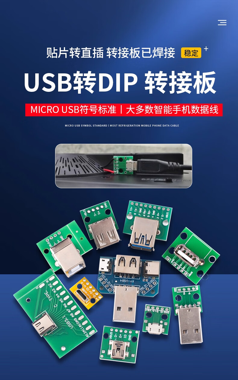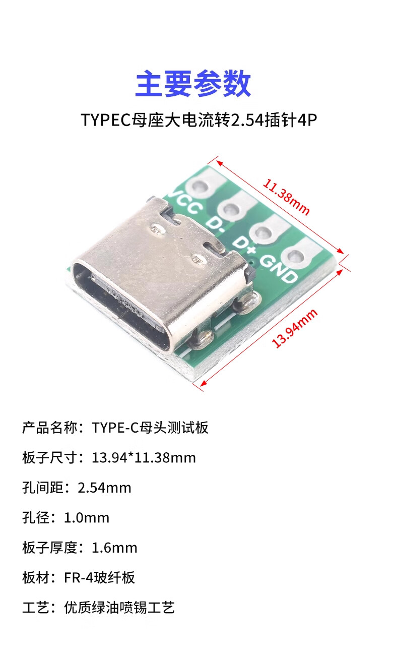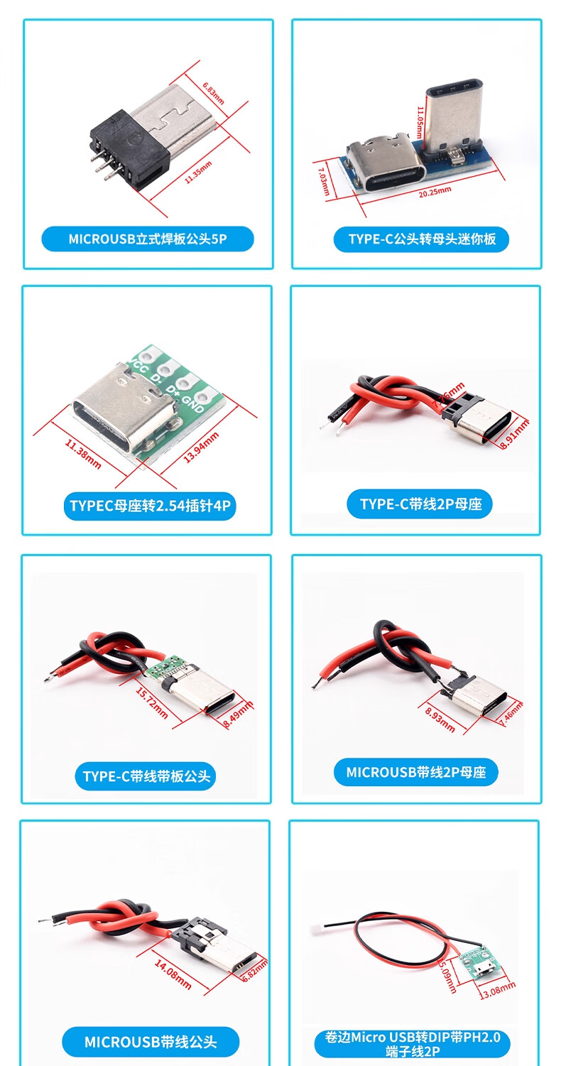 ZAVE usb female connector male min adapter board TYPE-C with line 2P female connector