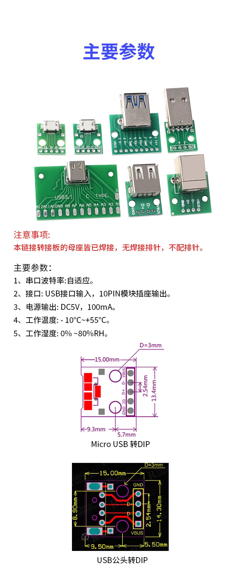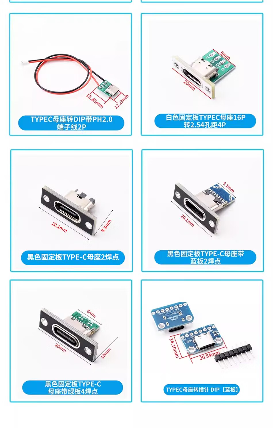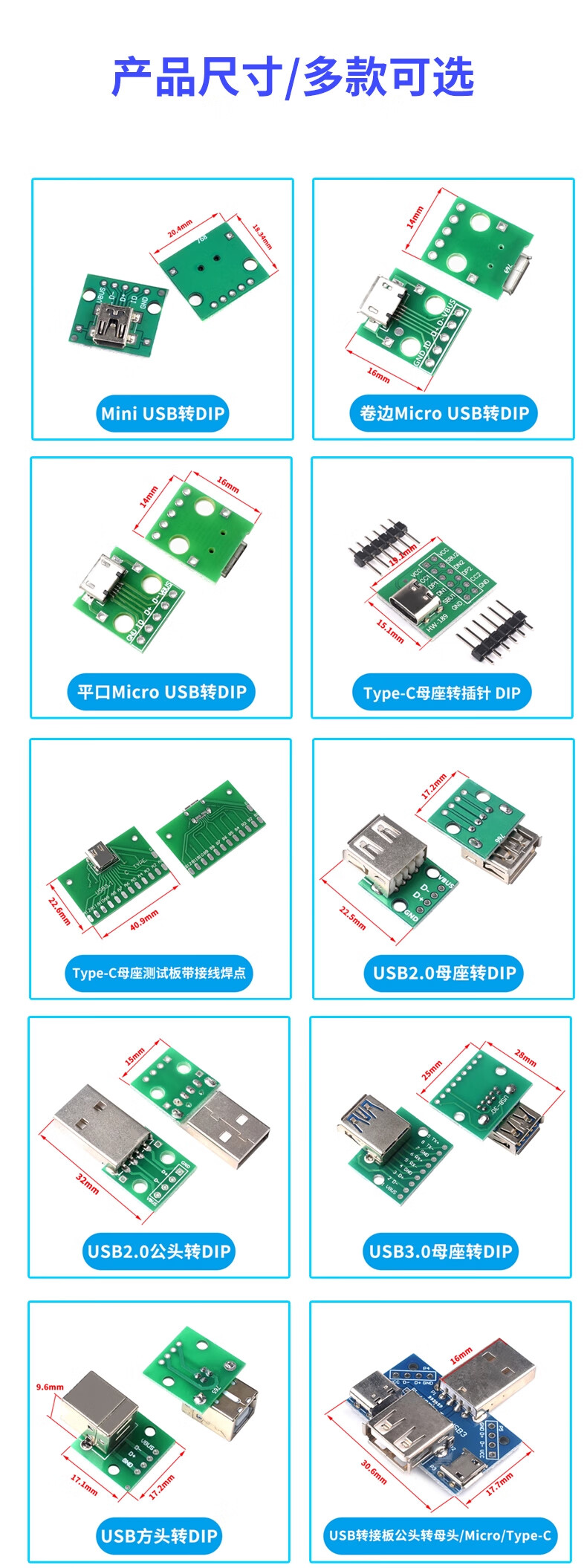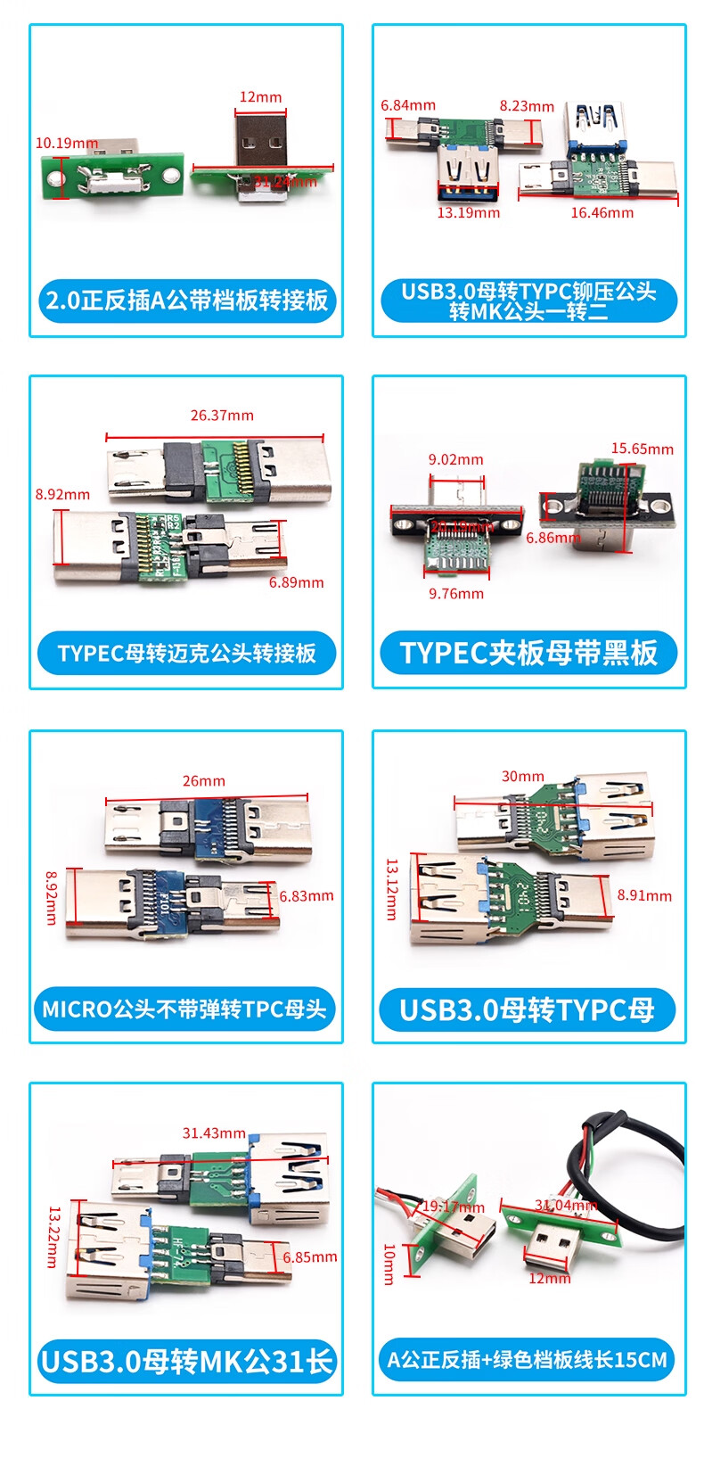 ZAVE usb female connector male min adapter board TYPE-C with line 2P female connector