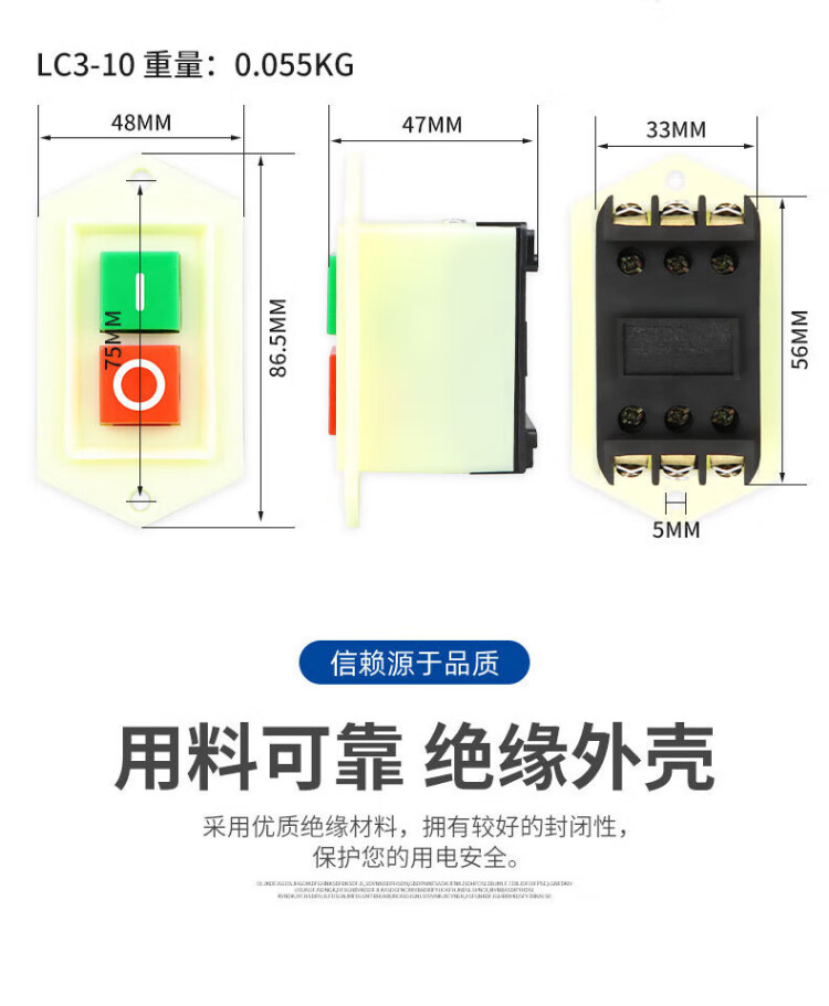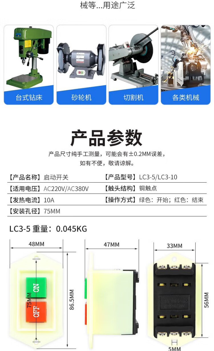 Tianshili three-phase motor start button switch LC3-5A grinder bench drill switch LC3-5 5A (pack of 4)