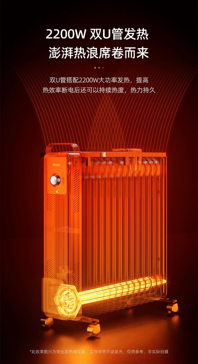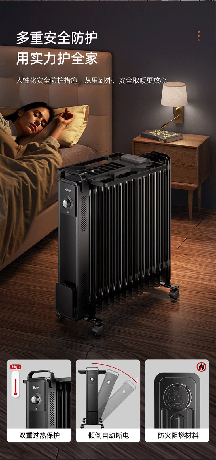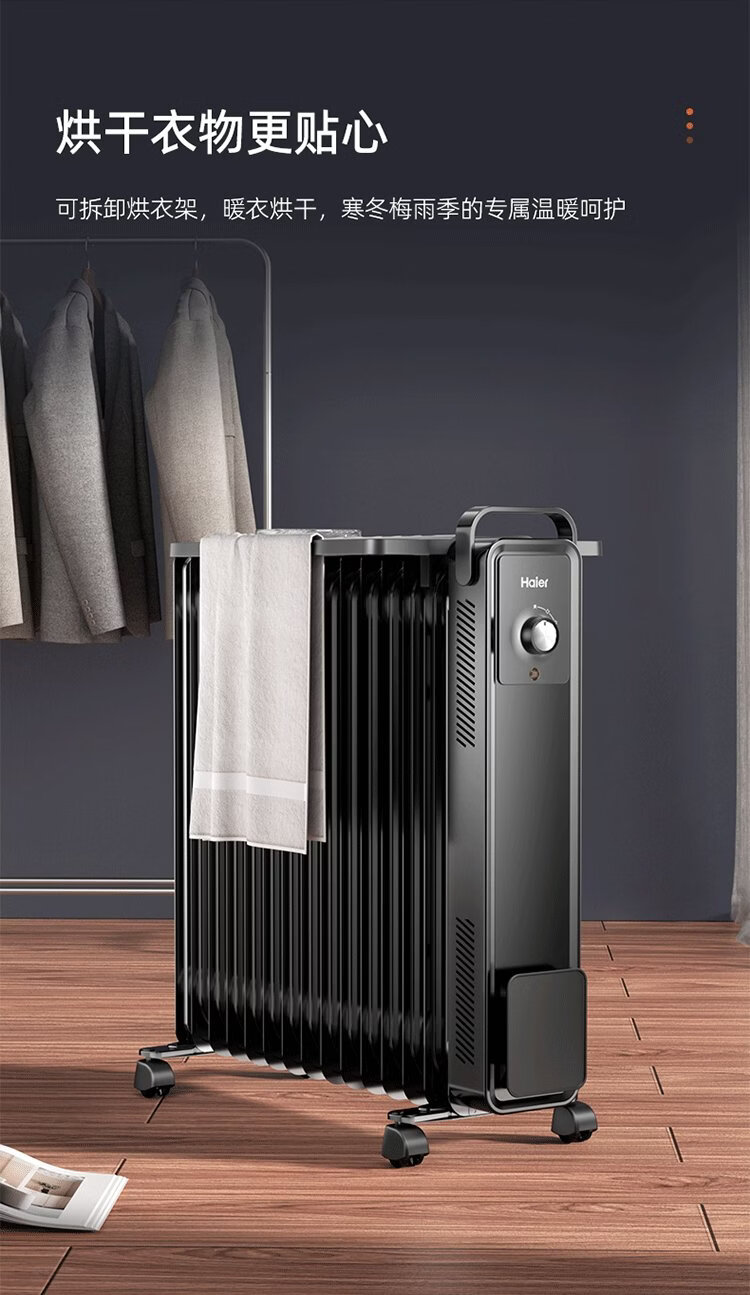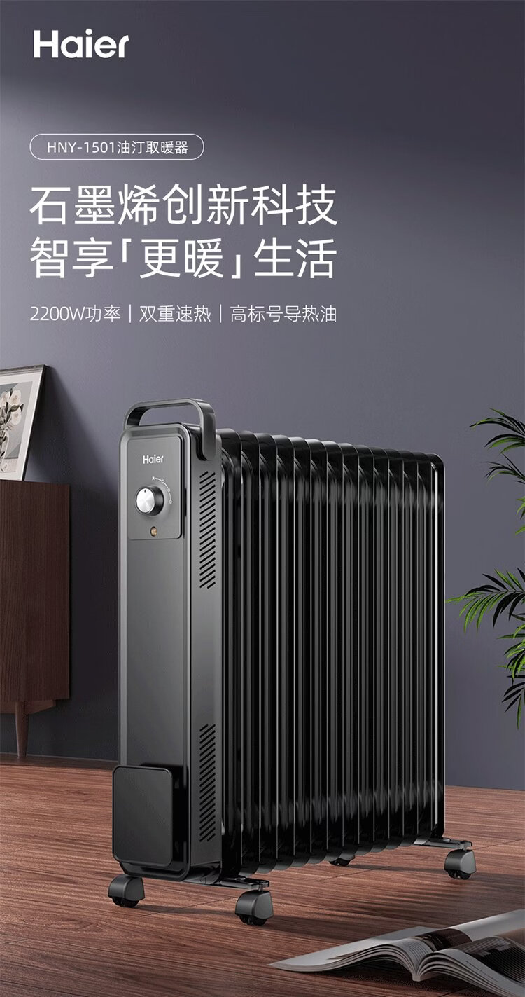 Haier 15-piece electric heating oil heater graphene heater household electric heater humidification electric radiator whole house heating fast heating removable clothes drying anti-scalding stove HNY-1501