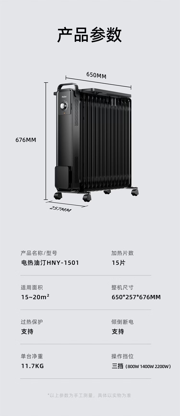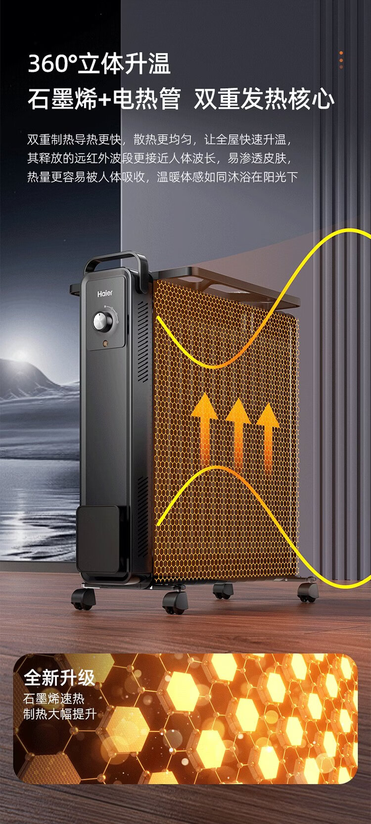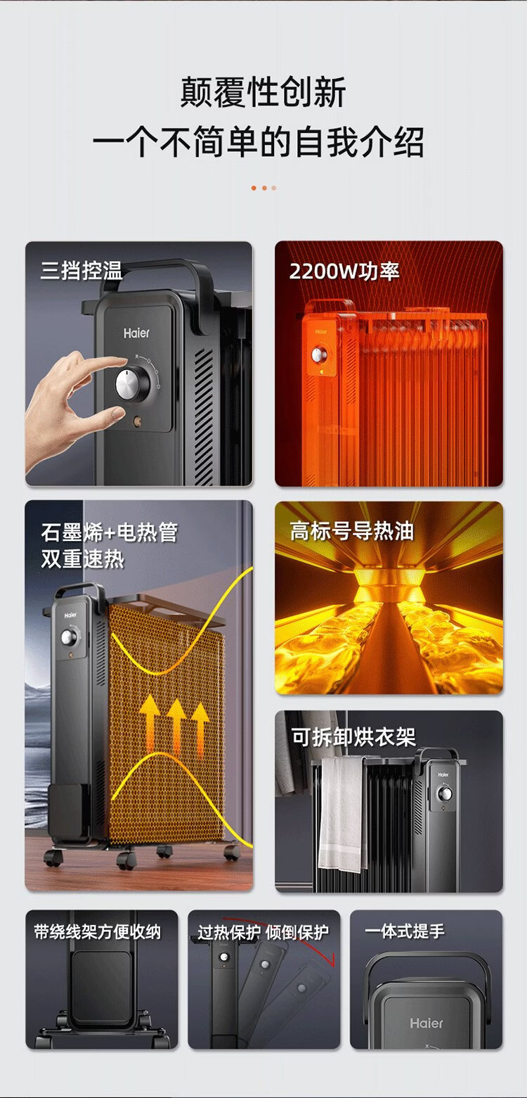 Haier 15-piece electric heating oil heater graphene heater household electric heater humidification electric radiator whole house heating fast heating removable clothes drying anti-scalding stove HNY-1501