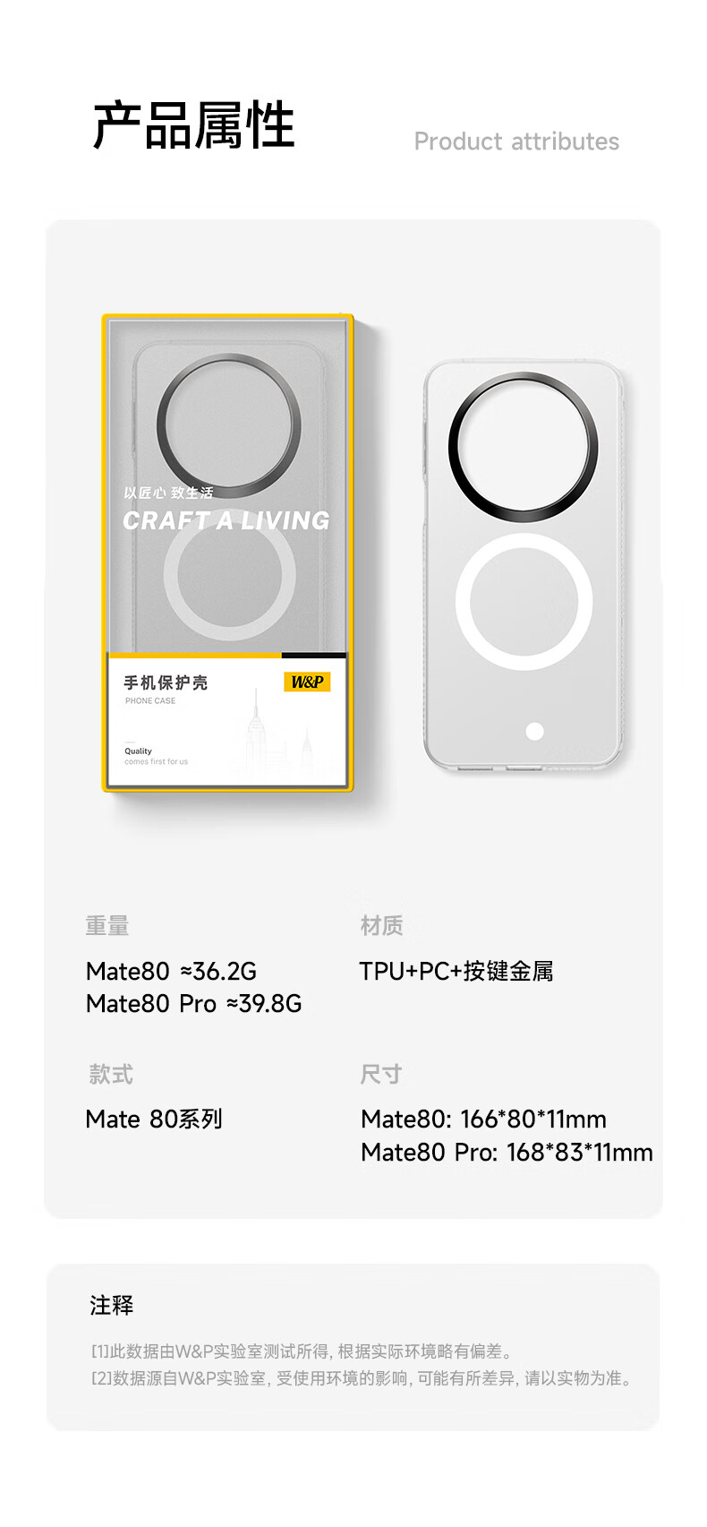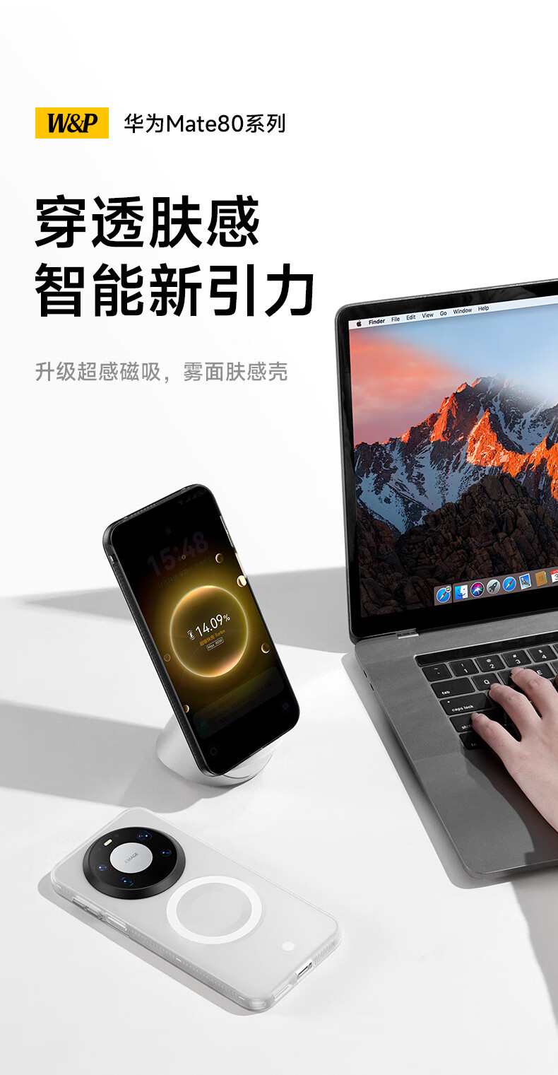 W&P Hall Magnetic Turbo Second Charging Suitable for Huawei mate80promax mobile phone case Mate80ProMax protective case wireless charging matte anti-fingerprint anti-fall white wp