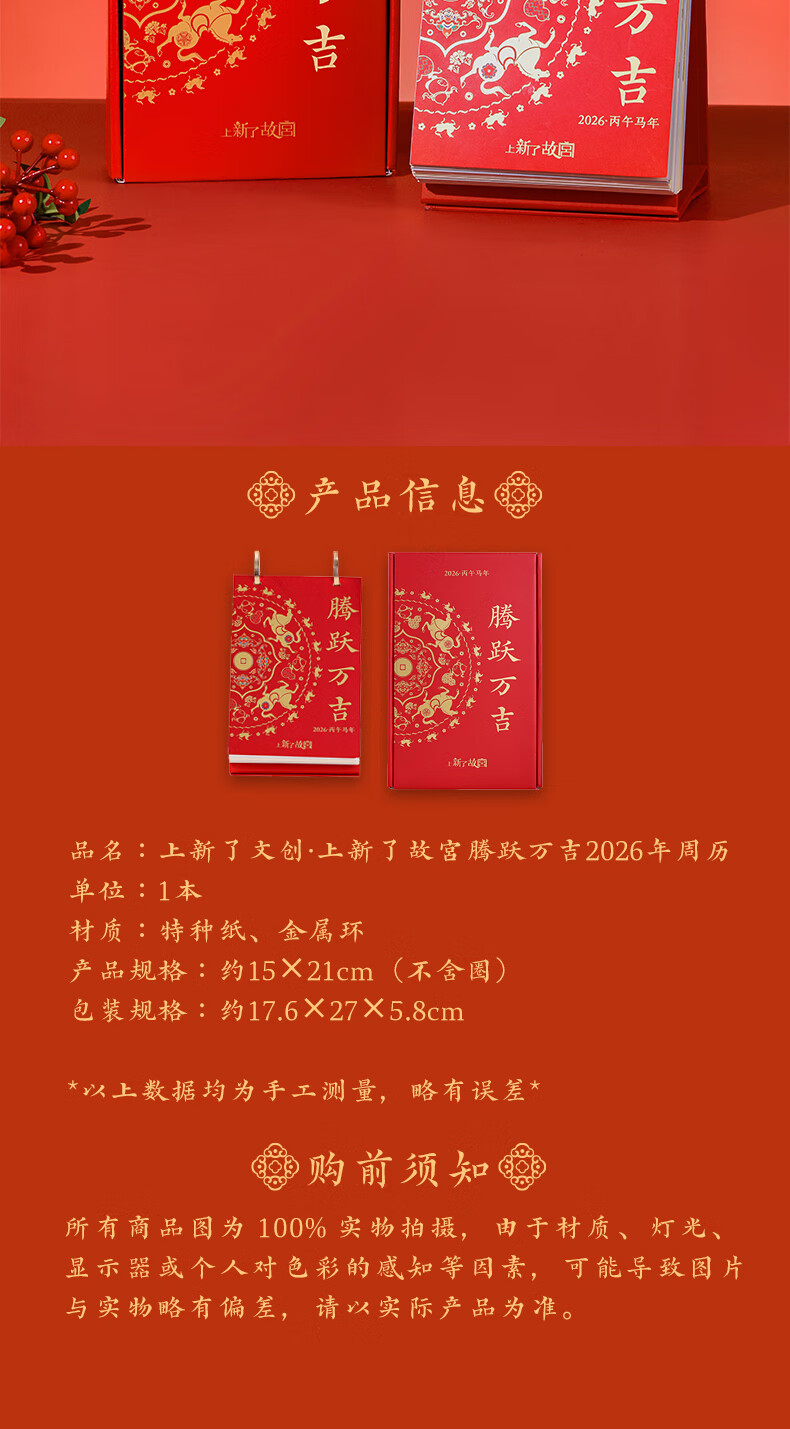 New cultural and creative Forbidden City Desk Calendar 2026 Weekly Calendar Year of the Horse Calendar Desktop Ornaments New Year Cultural and Creative Gifts