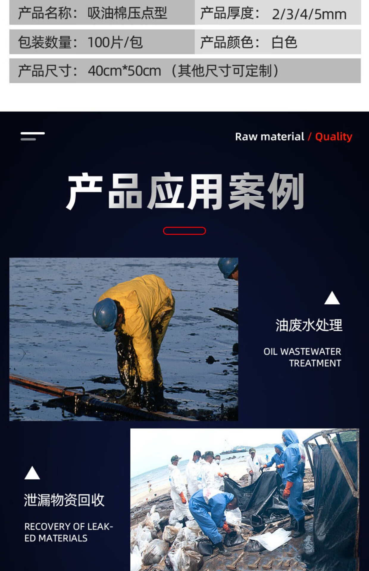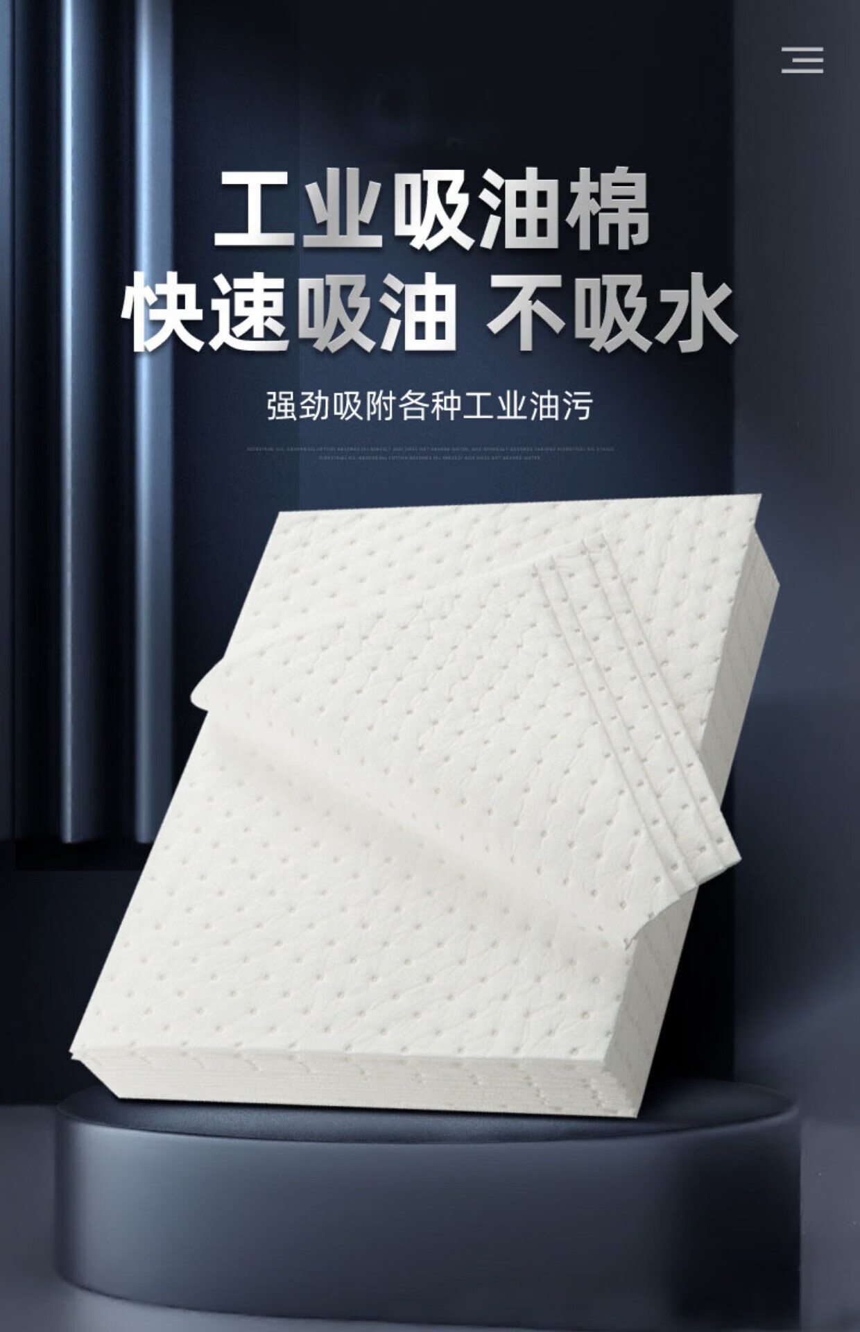 Yigongding Industrial oil-absorbing cotton, oil-absorbing felt, oil spill, gas station, maritime ship, powerful cleaning oil-absorbing pad, white 40cm*50cm*2mm (100 pieces)