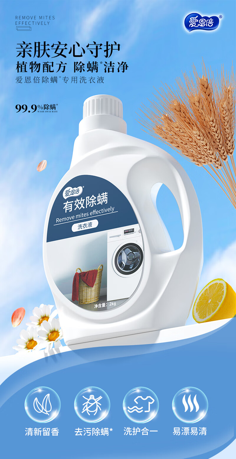 Ion times mite removal laundry detergent 2L*1 bucket of clothing with long-lasting fragrance, baby can be used for home laundry to remove stains, affordable package