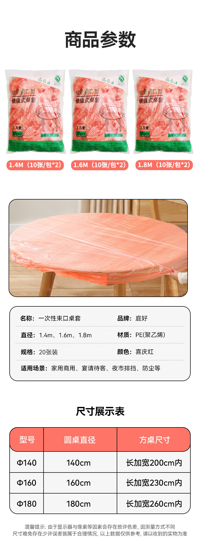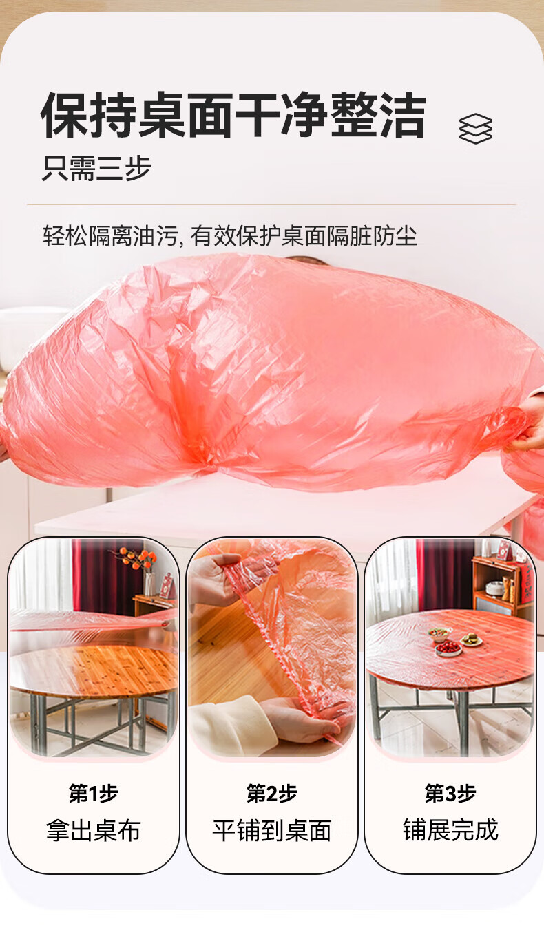 Tinghao disposable tablecloth with thick elastic opening 1.6m 20 pieces red square round dining table waterproof, oil-proof and iron-proof tablecloth cover