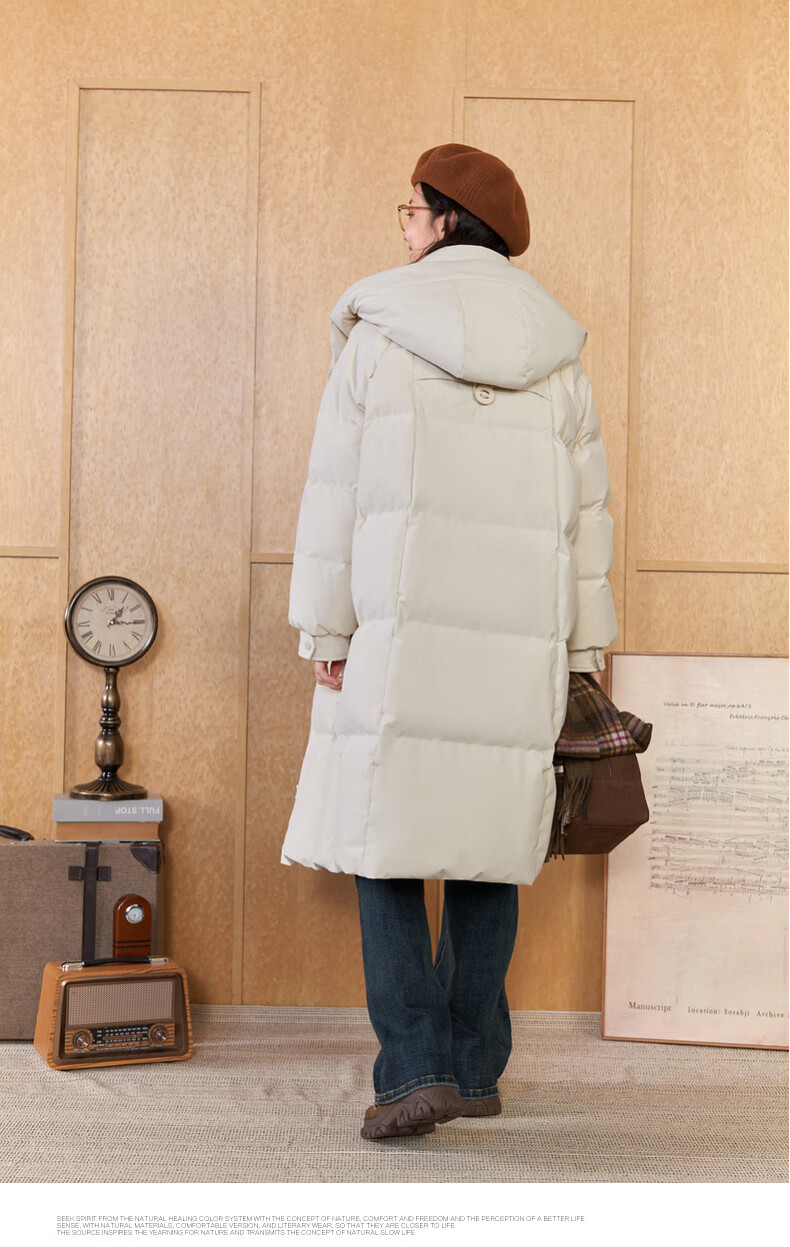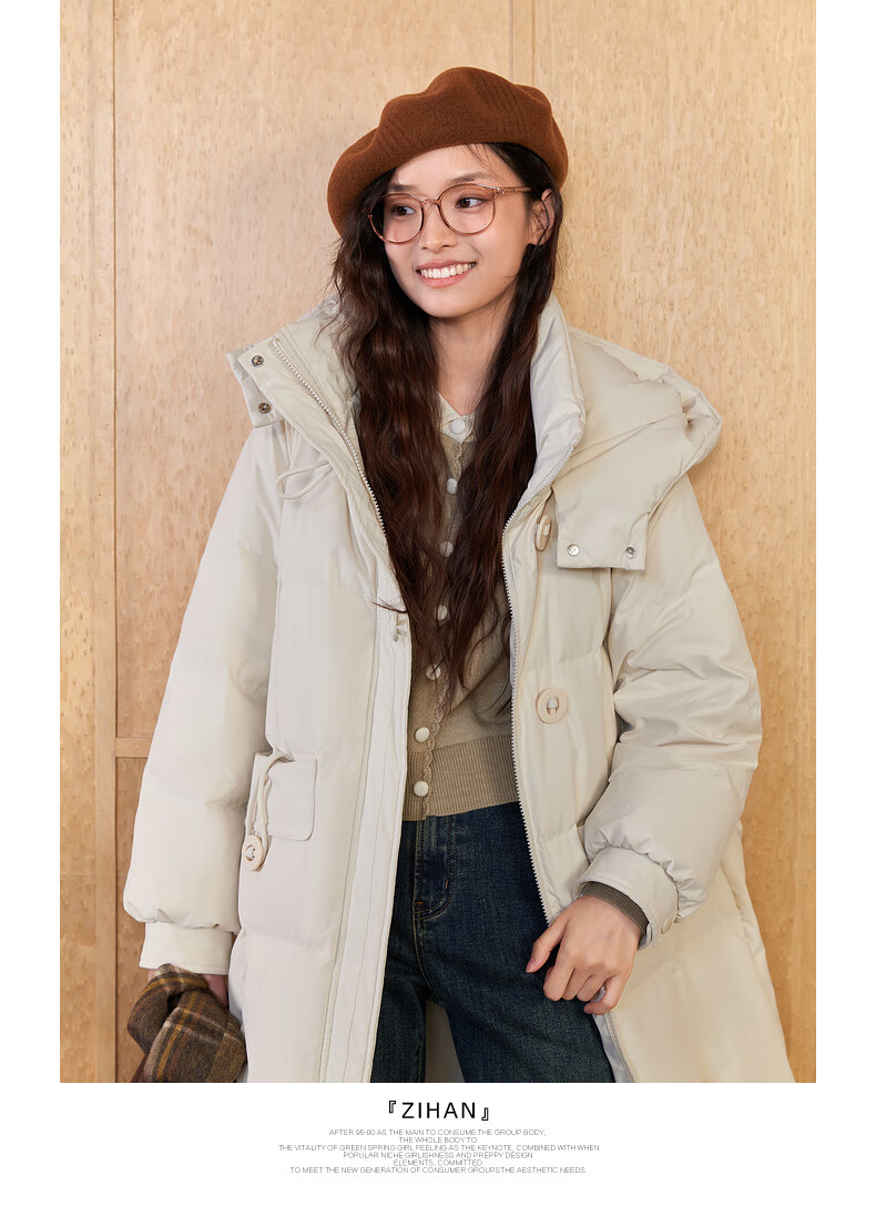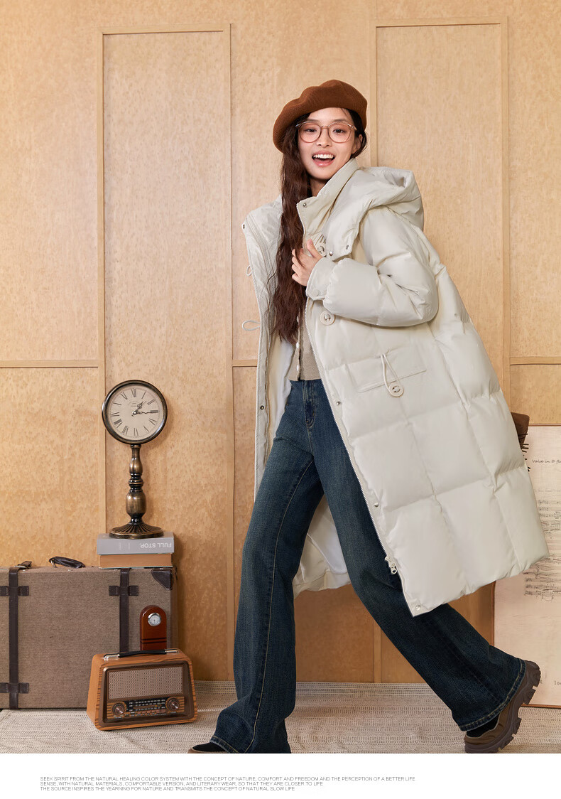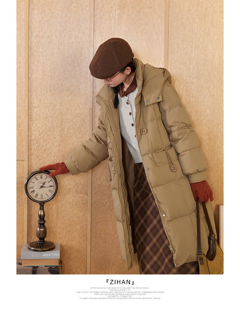 Zihan (ZIHAN) Zihan long hooded down jacket for women 2024 winter new windproof and waterproof over-the-knee duck down jacket