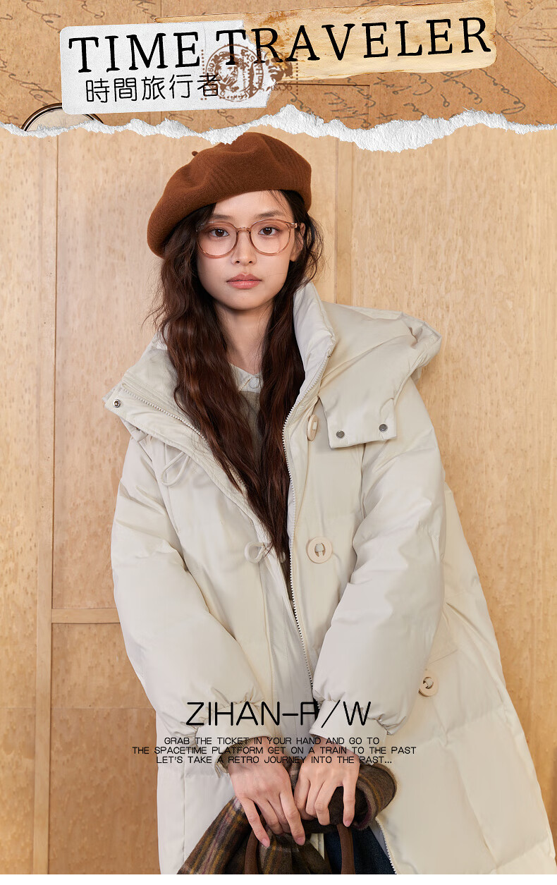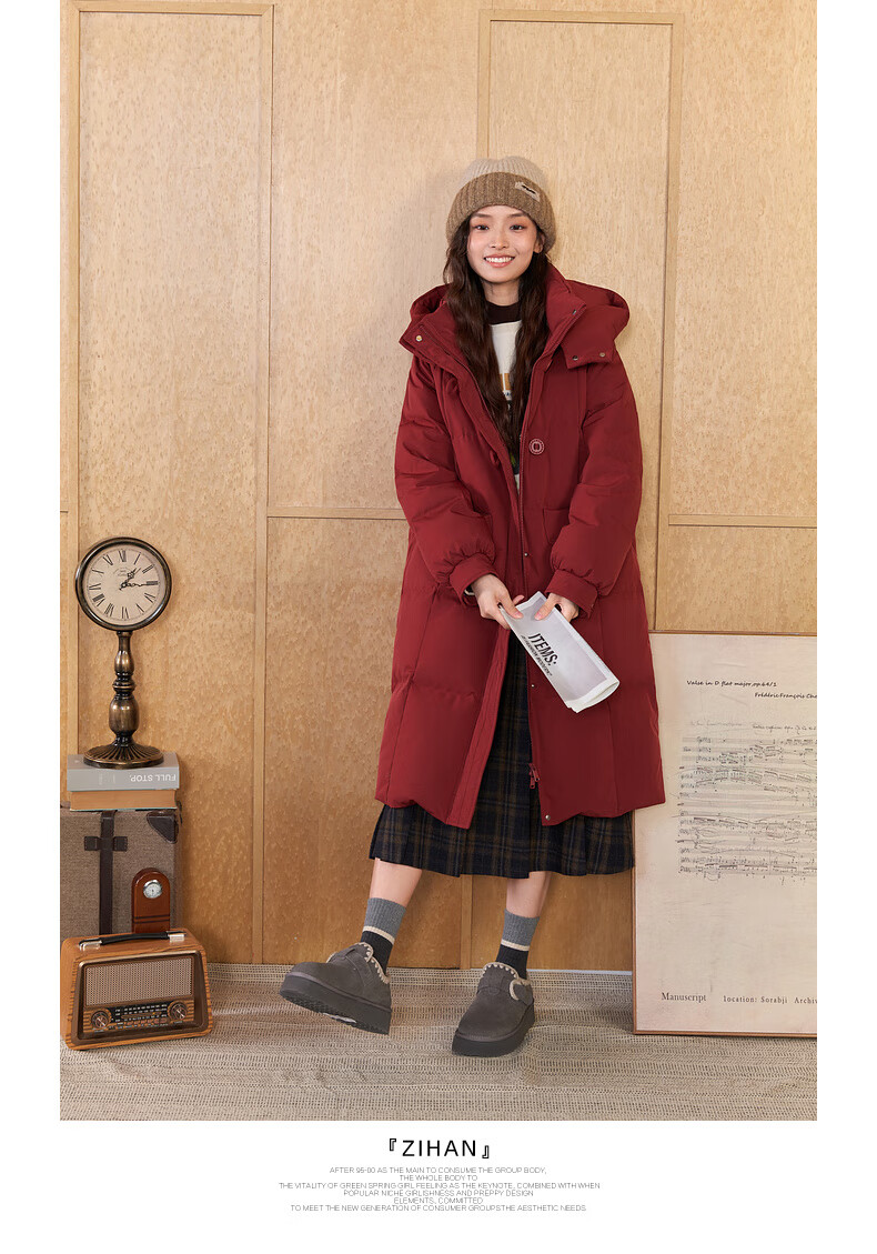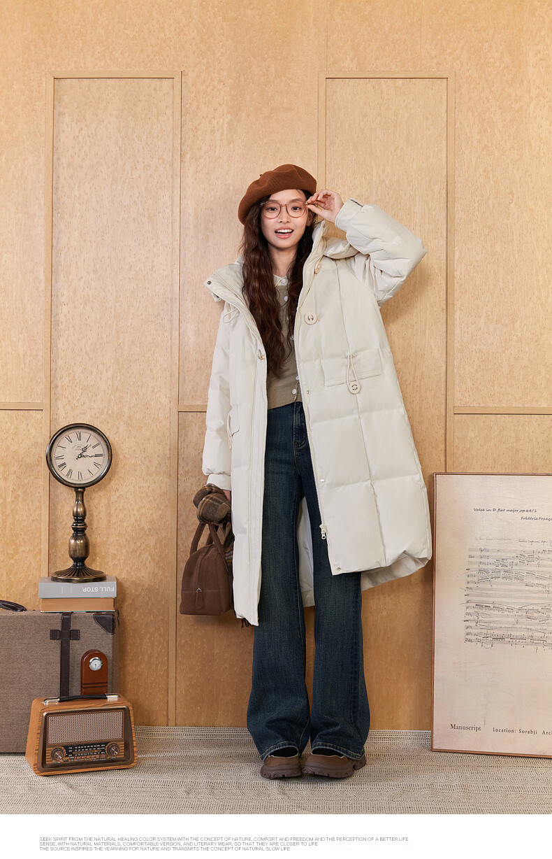 Zihan (ZIHAN) Zihan long hooded down jacket for women 2024 winter new windproof and waterproof over-the-knee duck down jacket