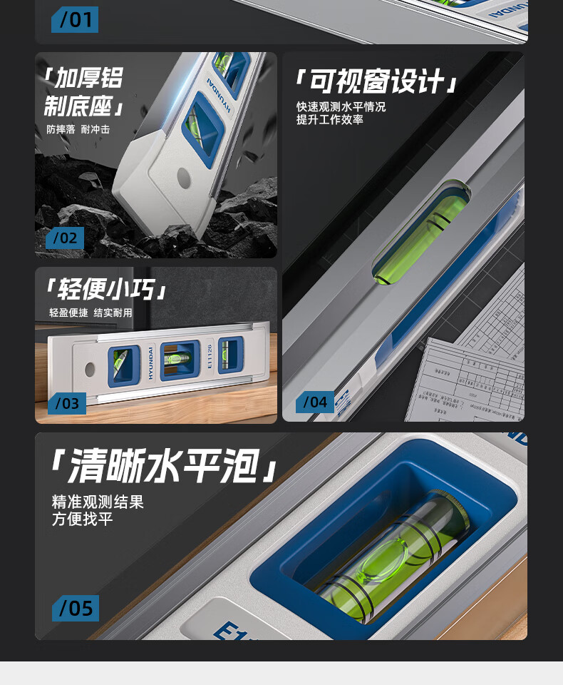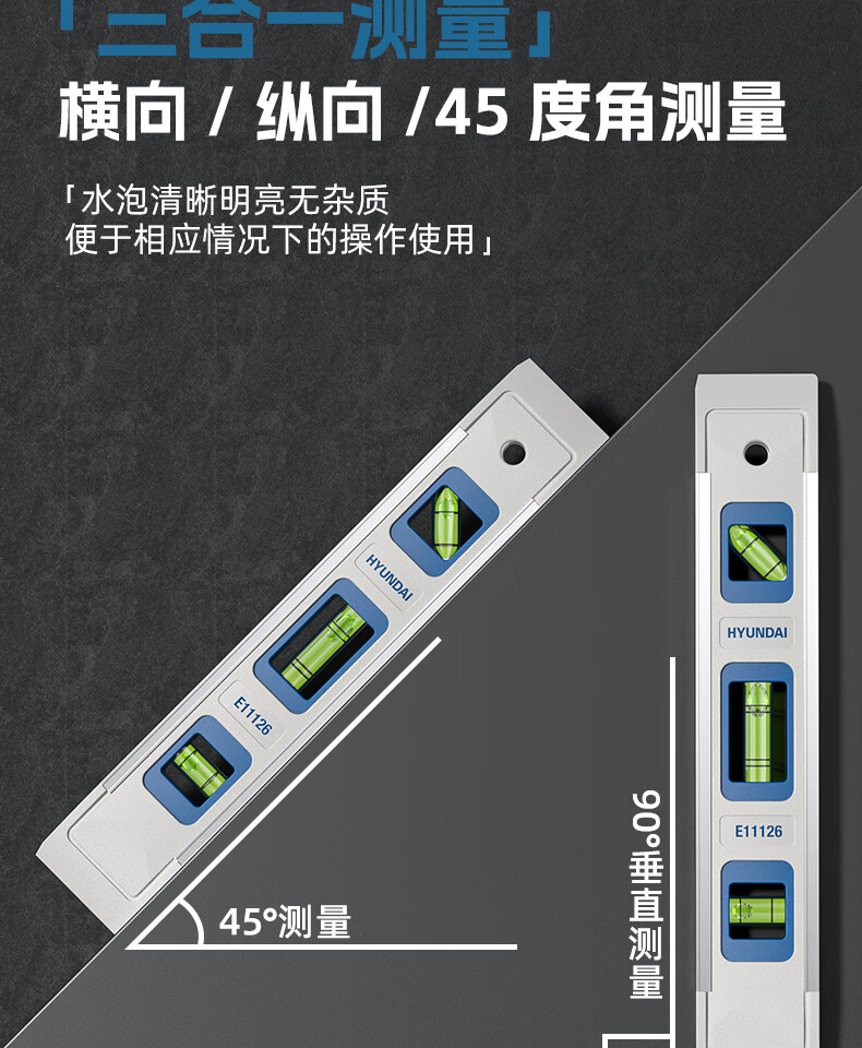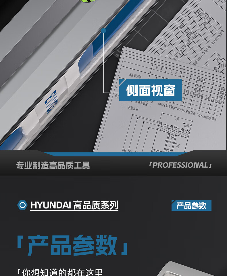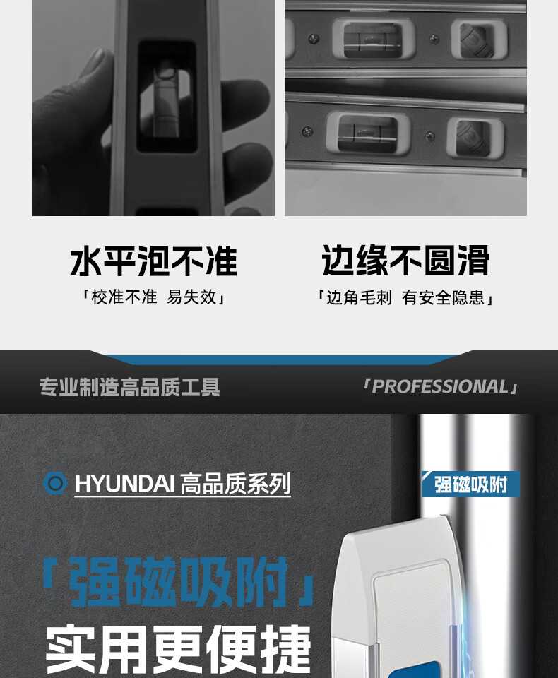 HYUNDAI spirit level high precision small torpedo type - flagship model 230mm spirit level (three bubbles strong magnetic)
