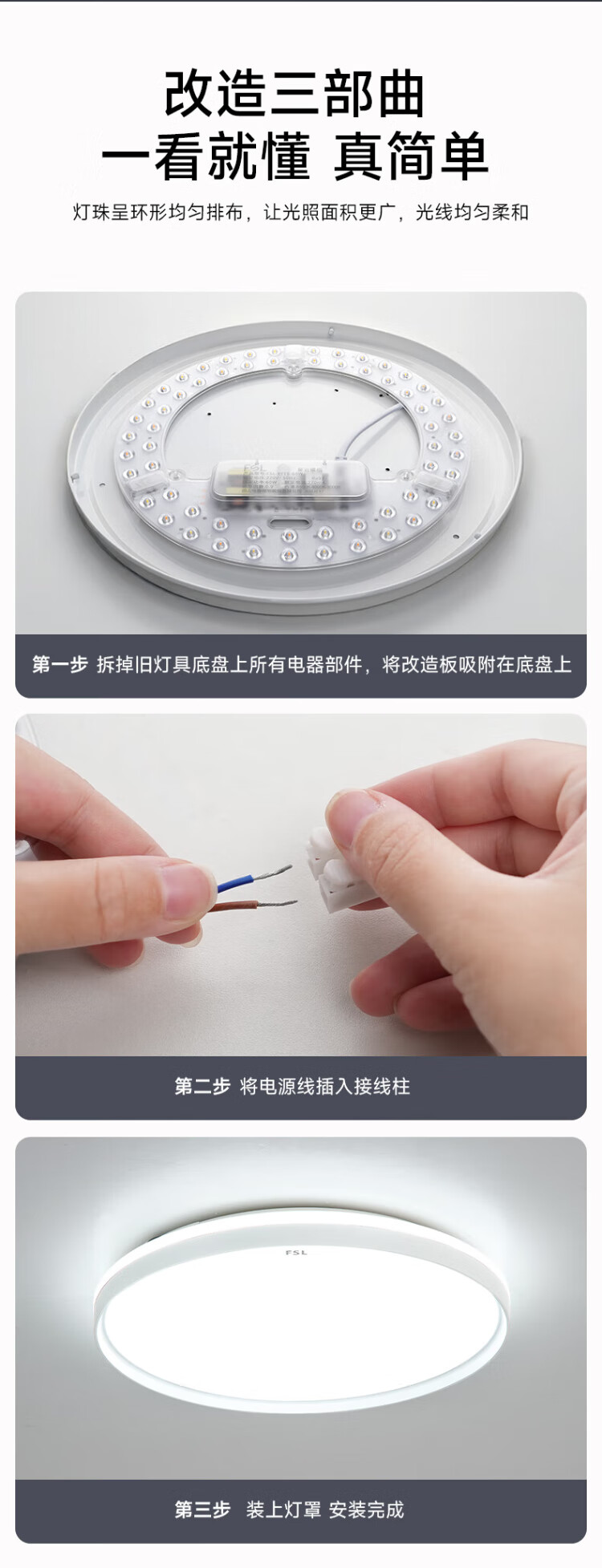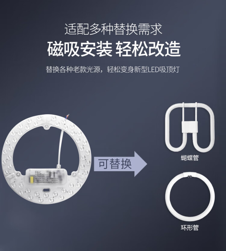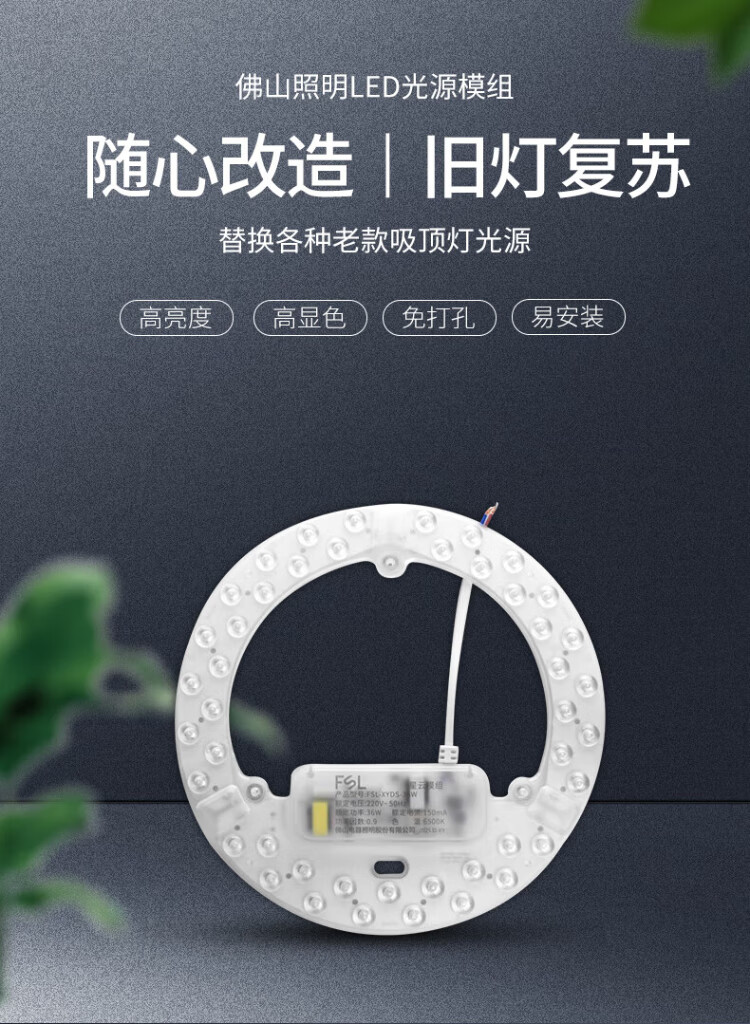 FSL Foshan Lighting (FSL) led ceiling lamp wick replacement magnetic lamp plate patch modification lamp panel energy-saving round lamp 36W/positive white light