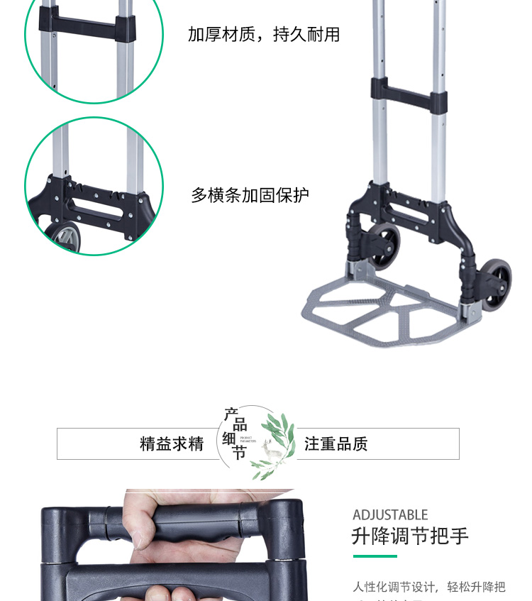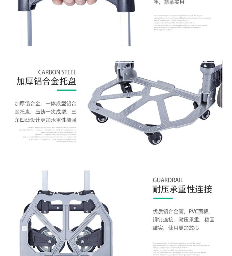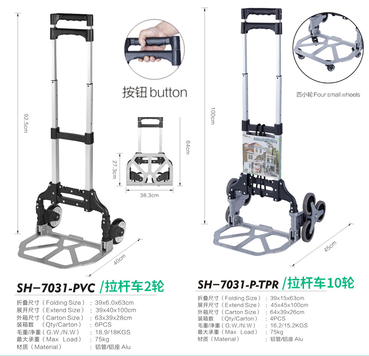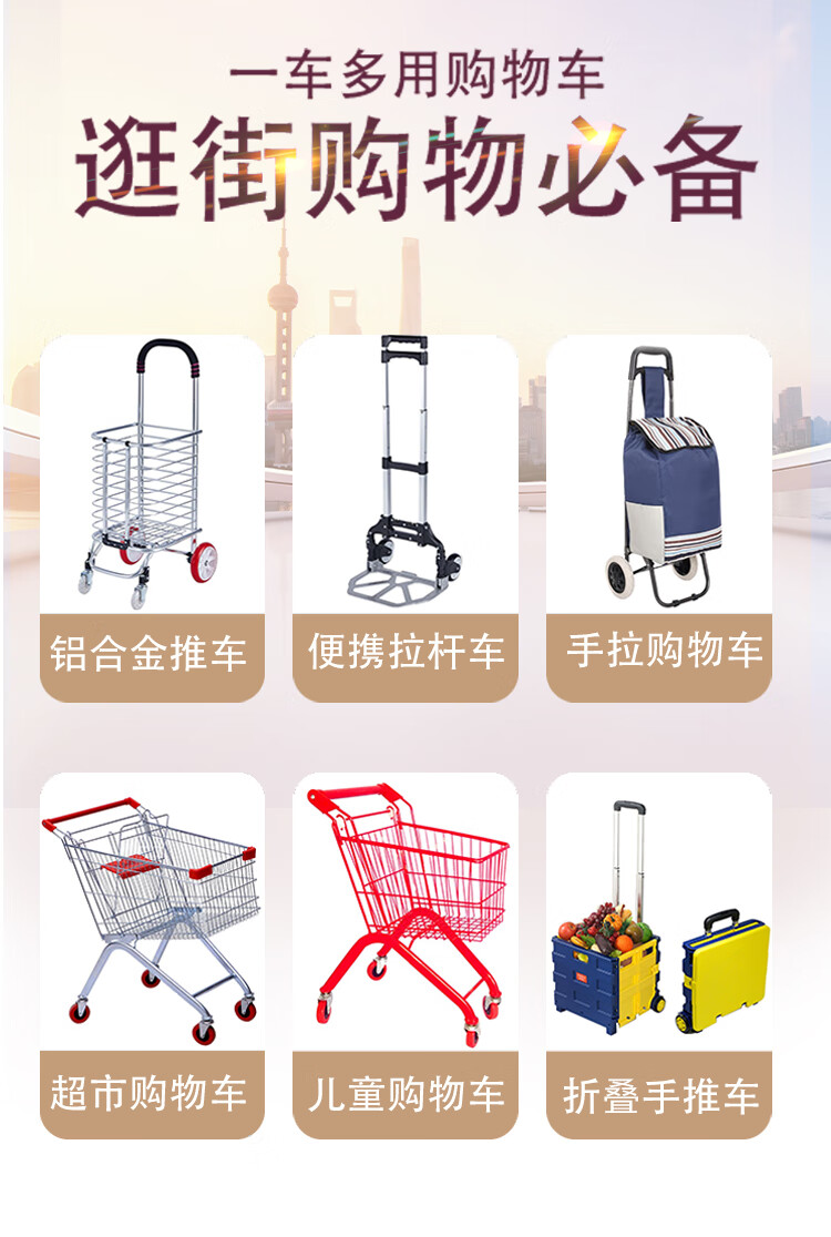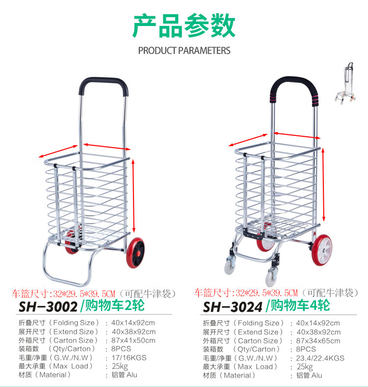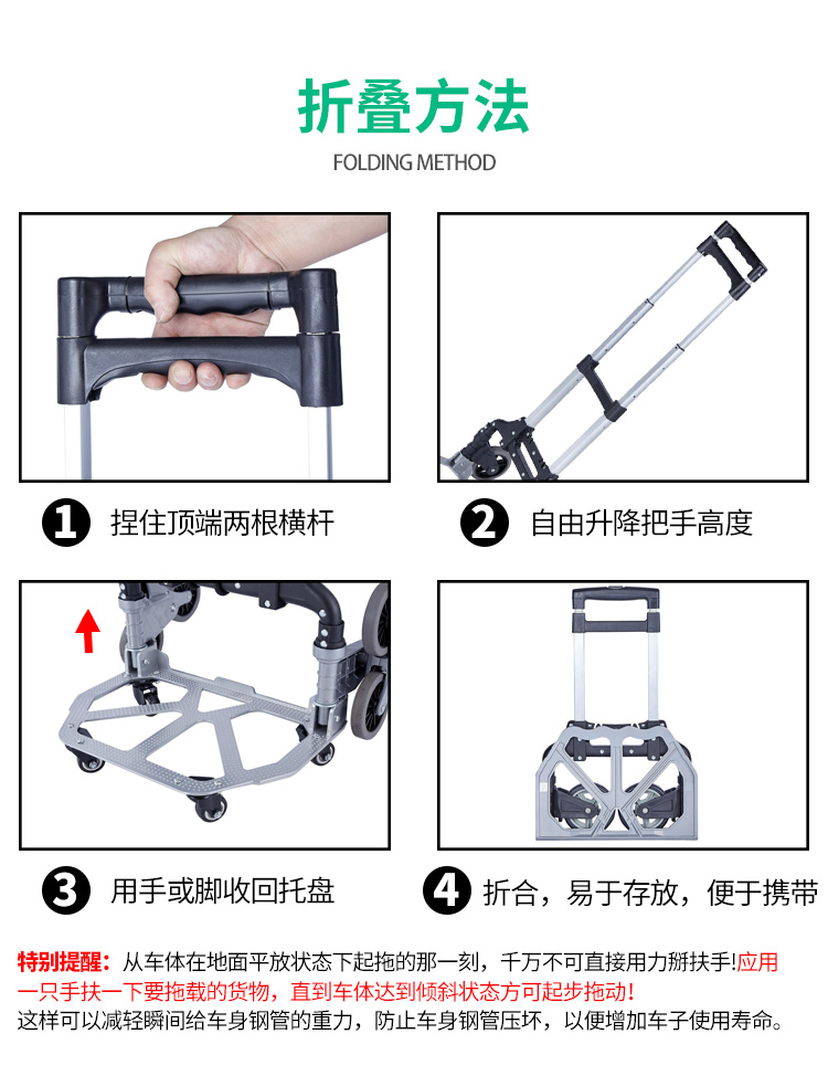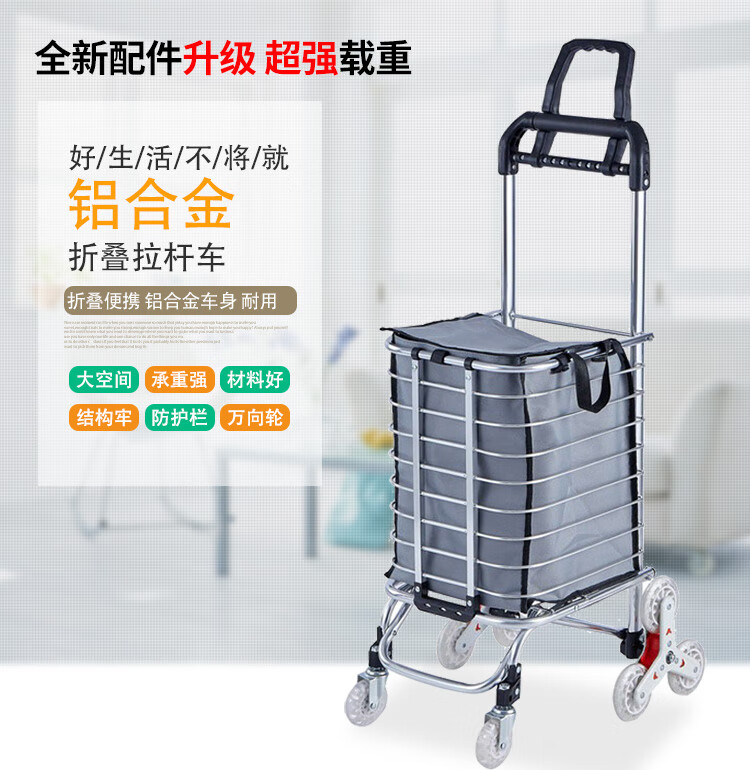 Hasdick Folding Shopping Cart Aluminum Cart Luggage Portable Trailer 4 Wheels HKCX-522