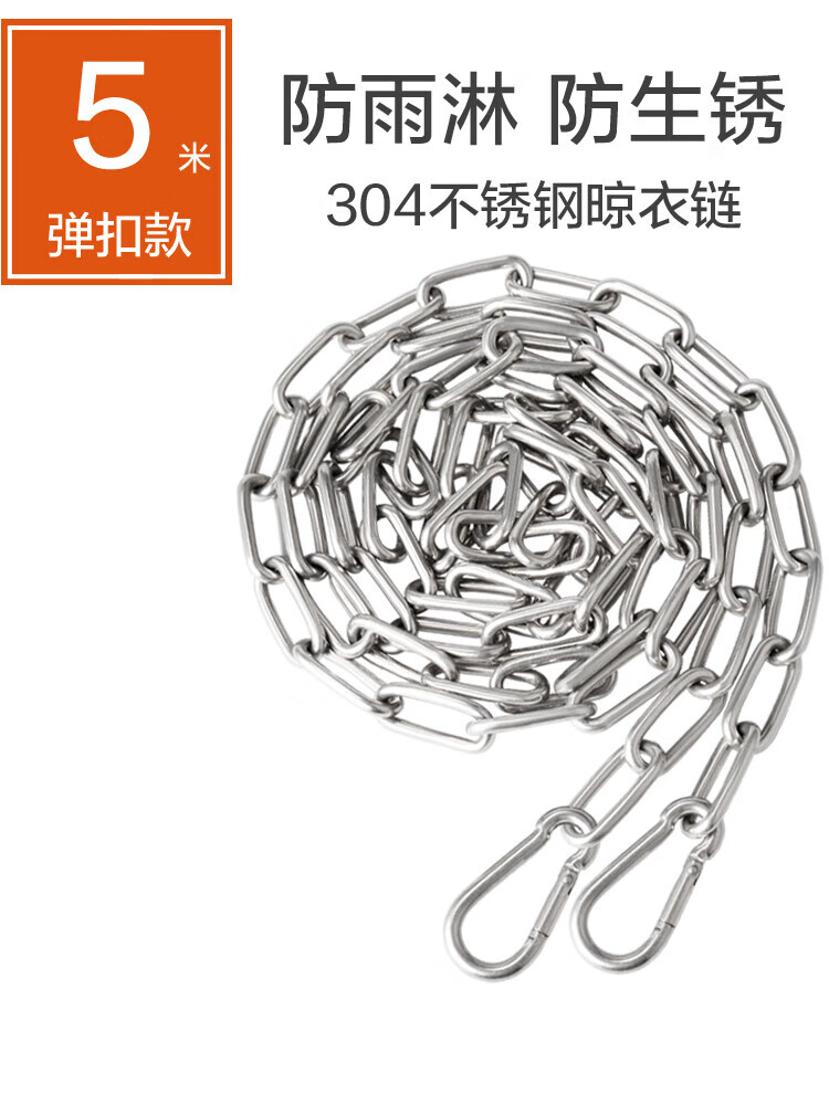 Honggong 304 stainless steel chain clothesline outdoor drying quilt hanging clothes balcony iron chain 3mm thick chain 5 meters + 2 spring buckles