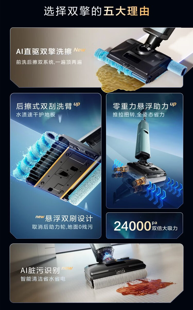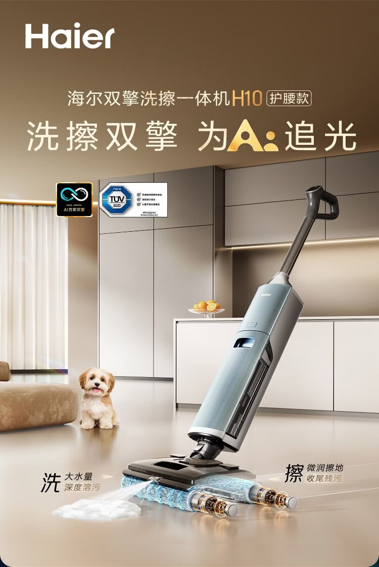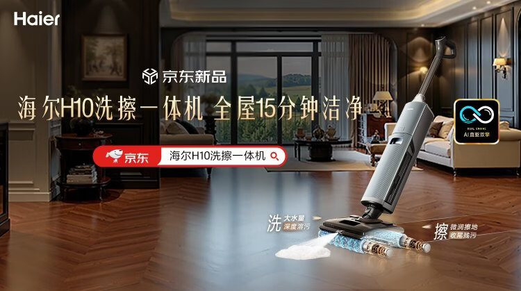 Haier H10 all-in-one scrubber, AI dual brush suspension assist, 3D foam washing, automatic cleaning, suction and mopping all-in-one scrubber, sweeping robot, great gifts