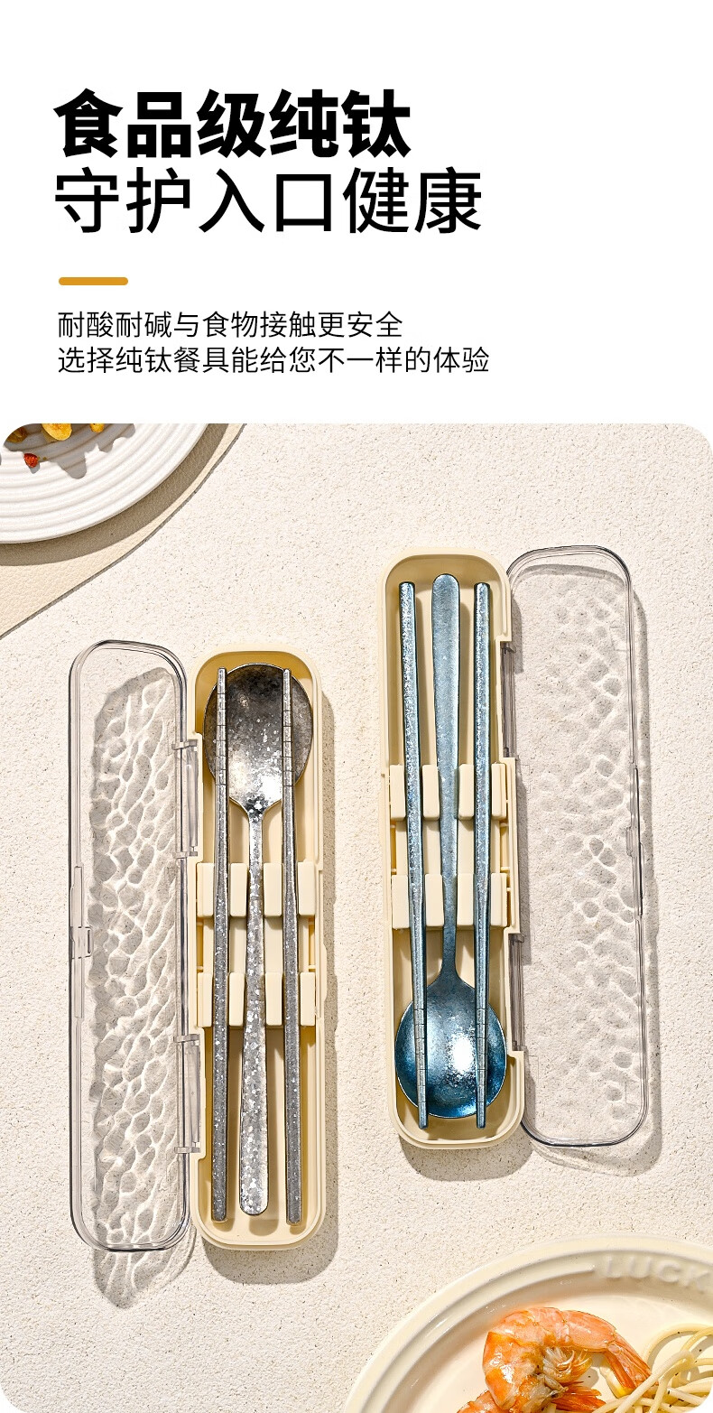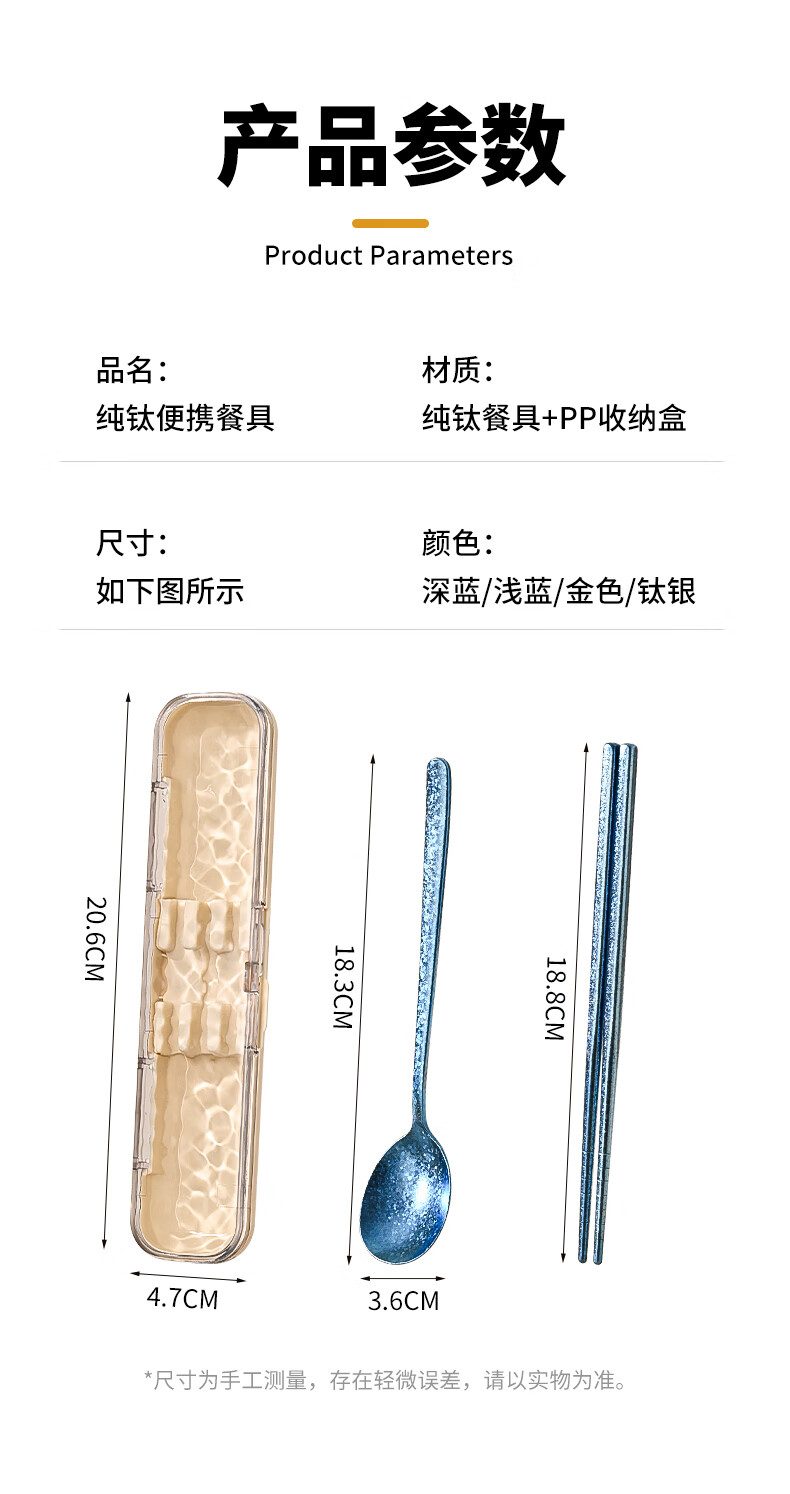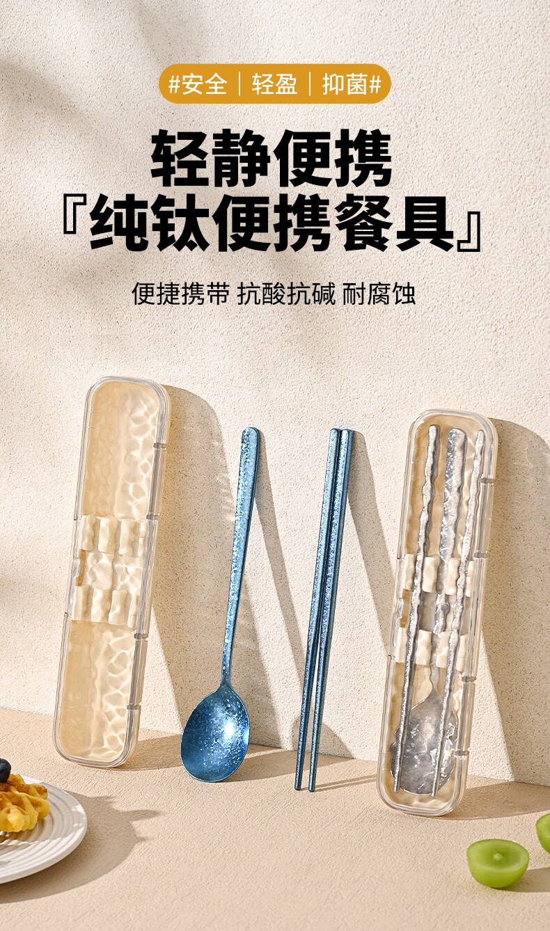 PAKCHOICE pure titanium 99.9% chopsticks spoon set portable cutlery box complete set of 2-piece set for students and office workers dark blue