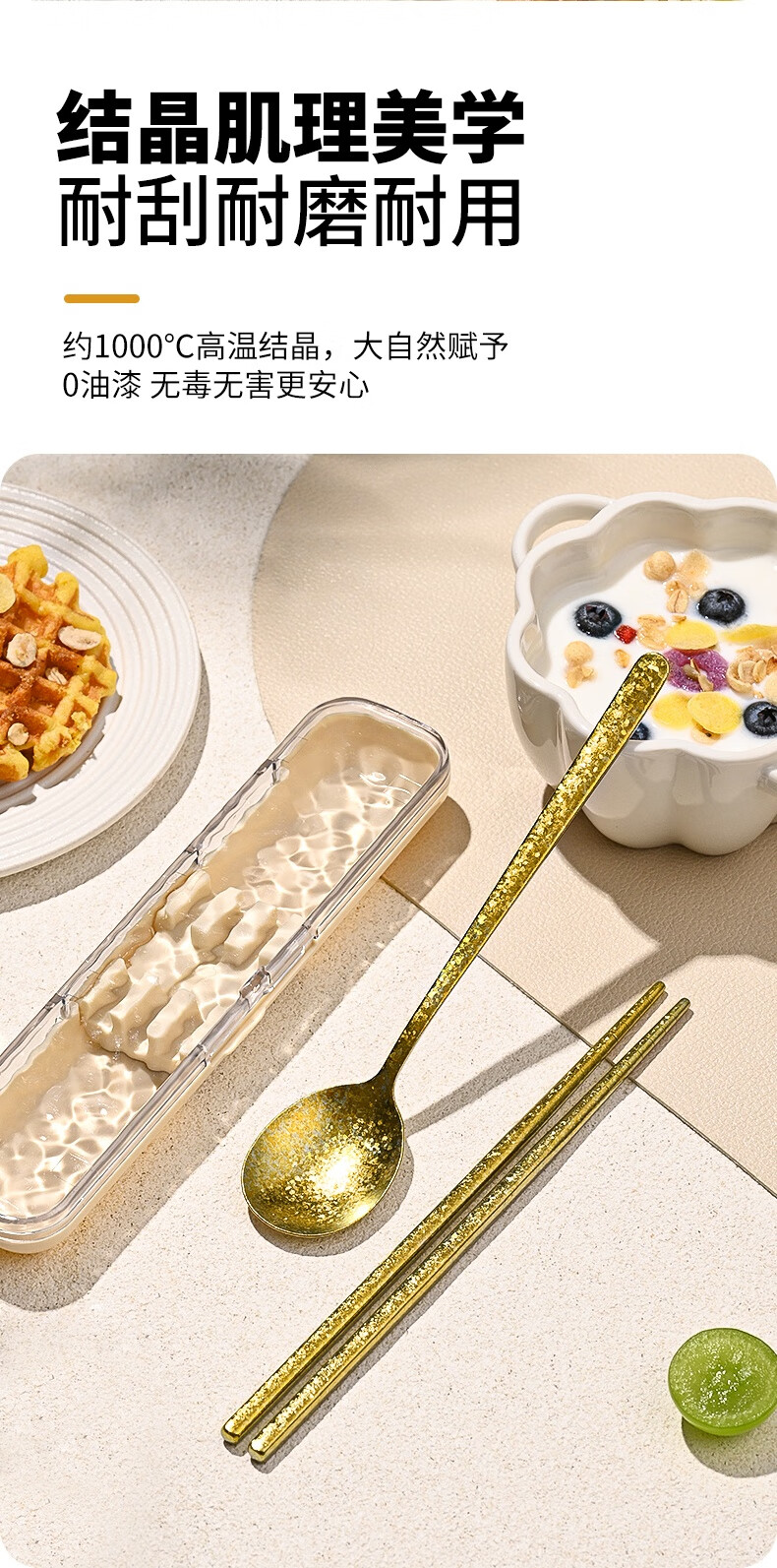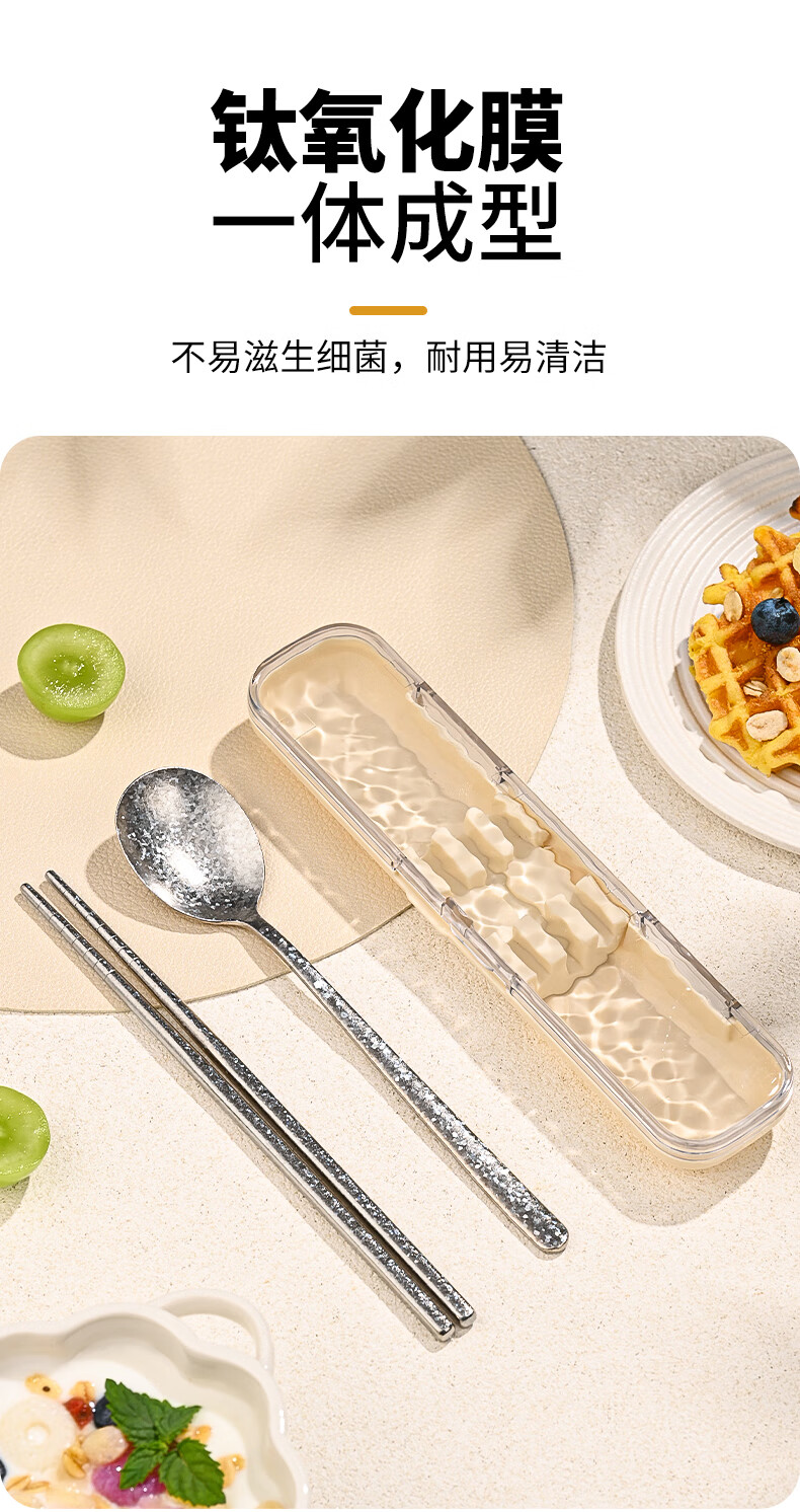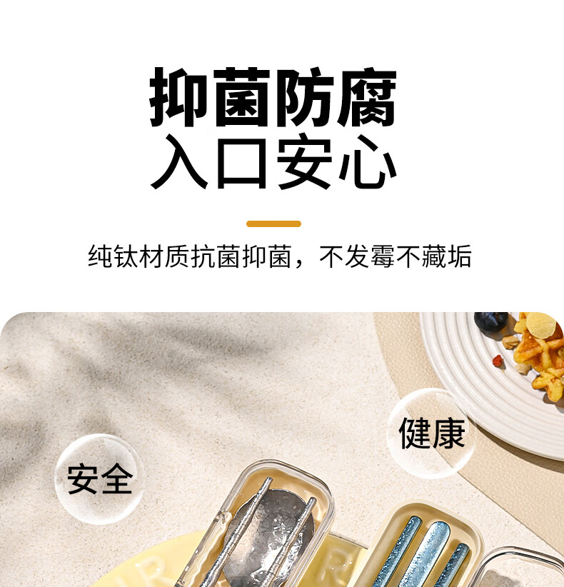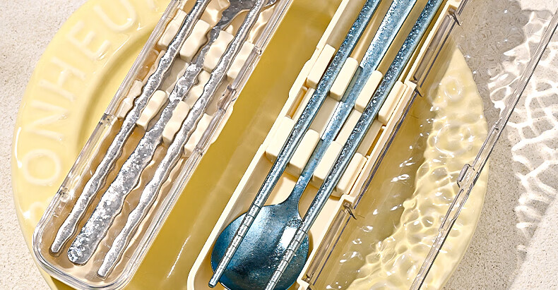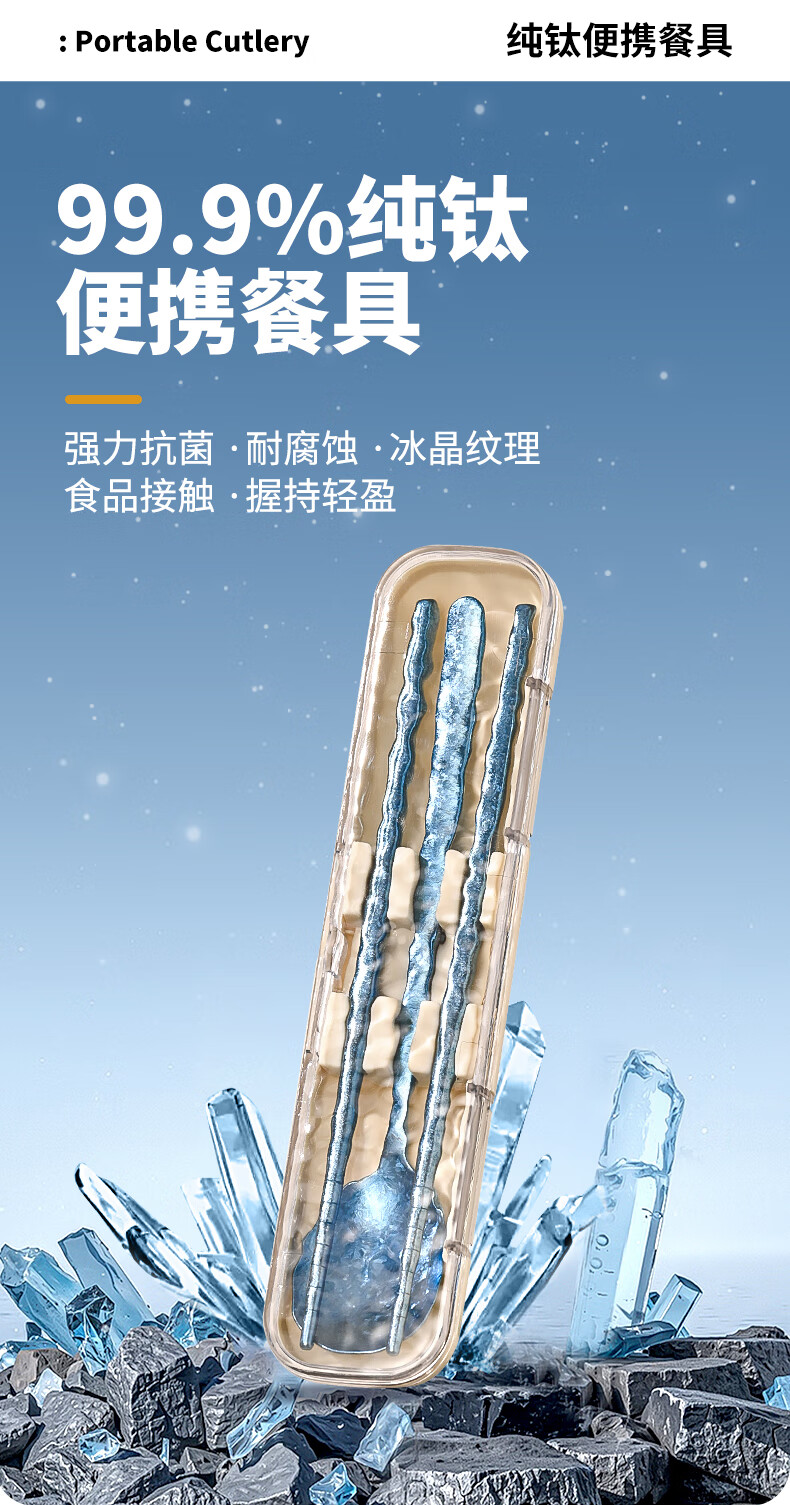 PAKCHOICE pure titanium 99.9% chopsticks spoon set portable cutlery box complete set of 2-piece set for students and office workers dark blue