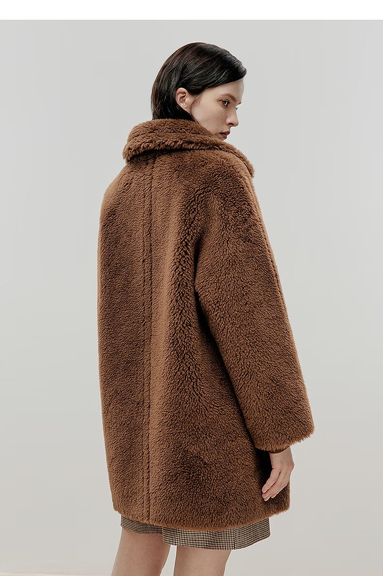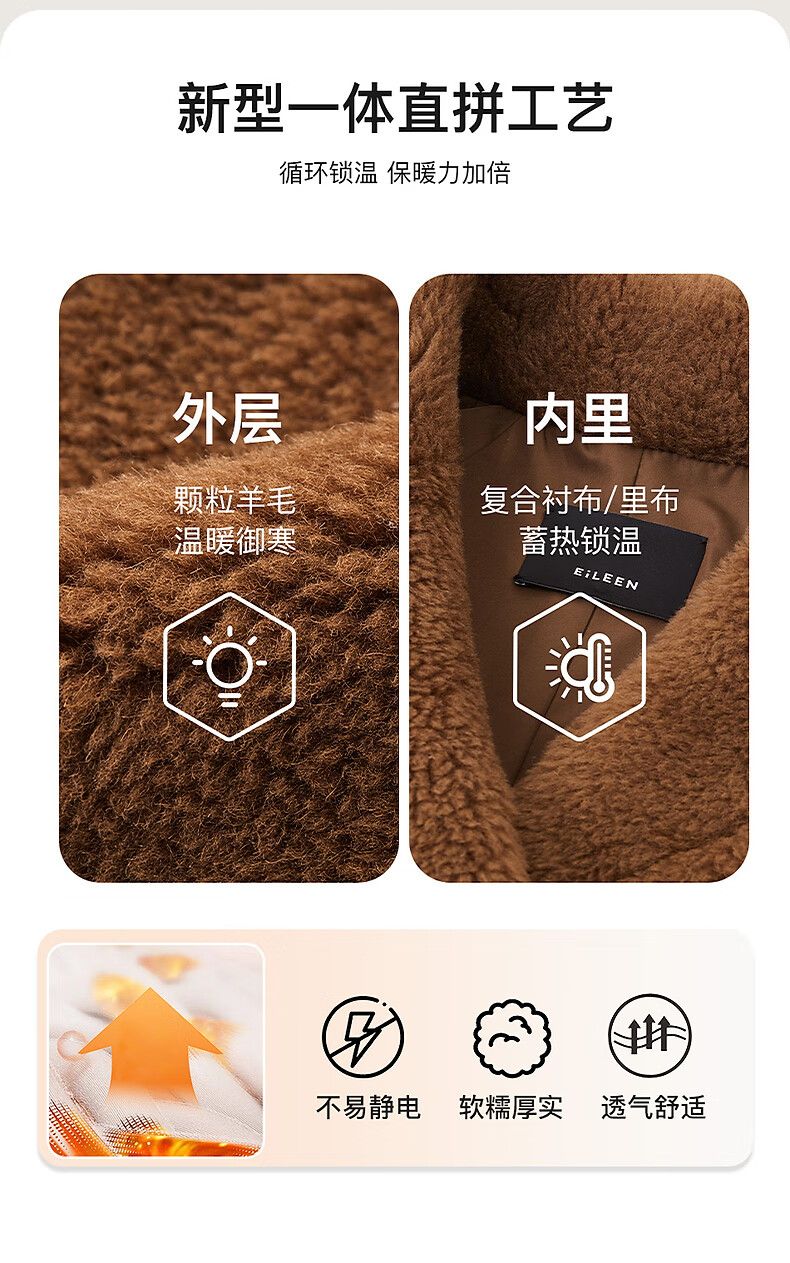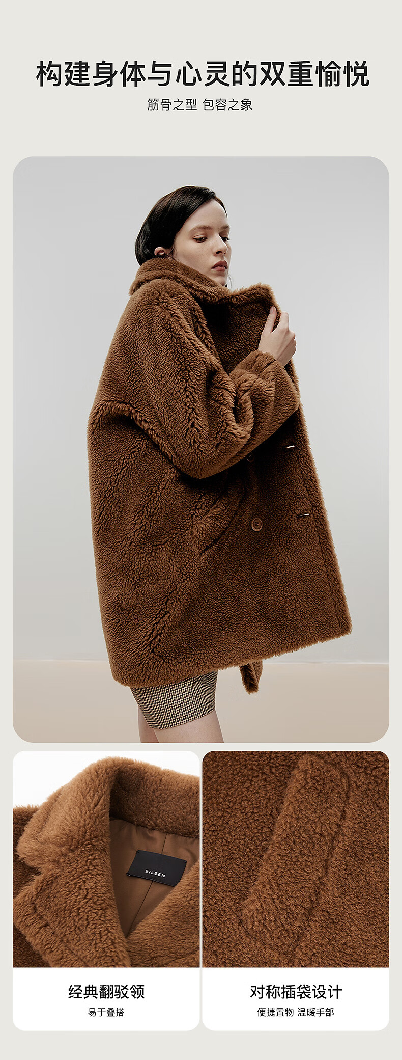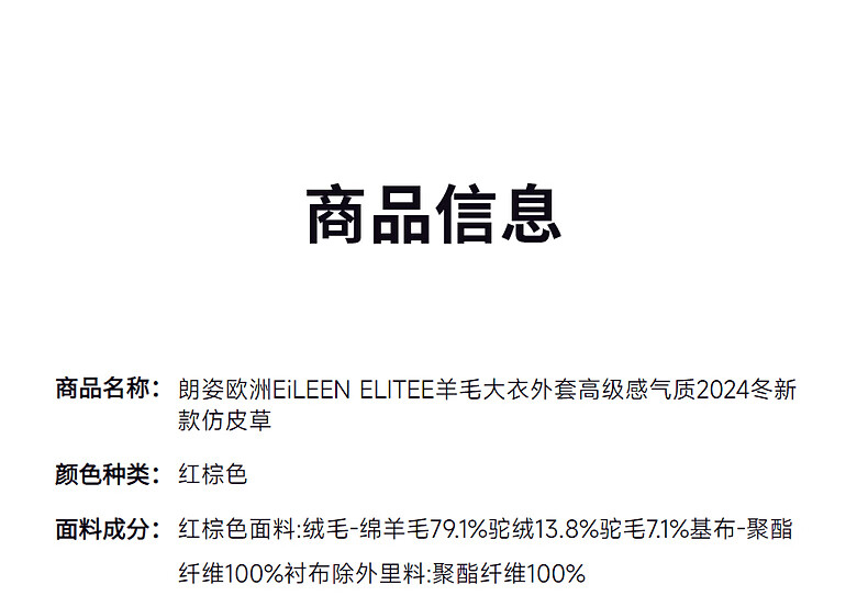 Langzi European EiLEEN ELITEE wool coat high-end winter imitation fur women's red brown M
