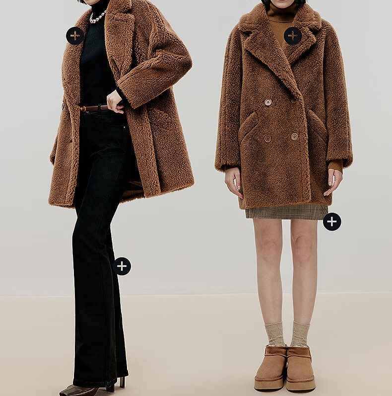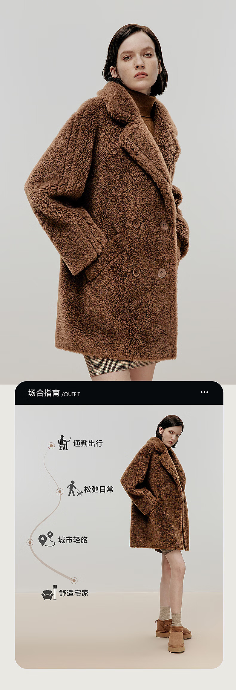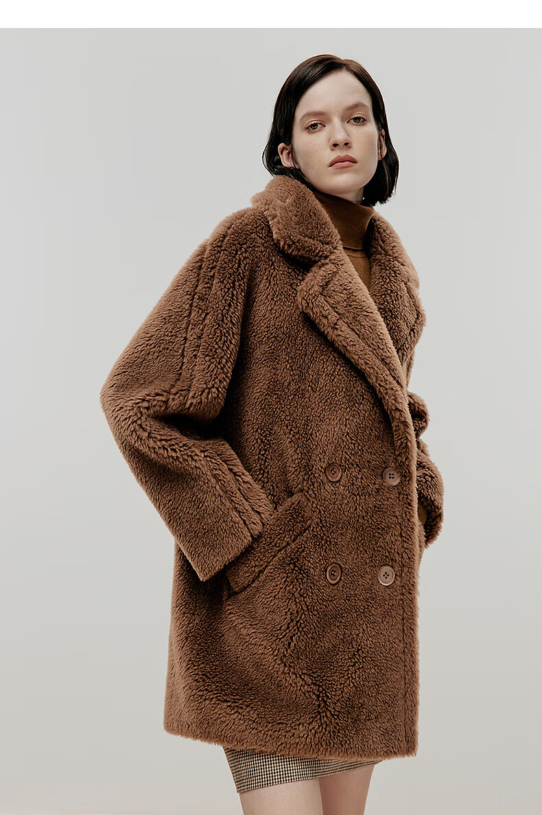Langzi European EiLEEN ELITEE wool coat high-end winter imitation fur women's red brown M
