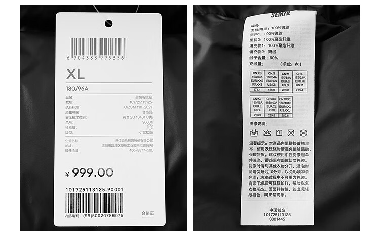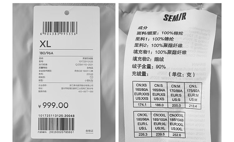 Same style as Semir shopping mall | XCNSPACE aerospace cooperation series down jacket for men winter 2025 goose down 101725113125