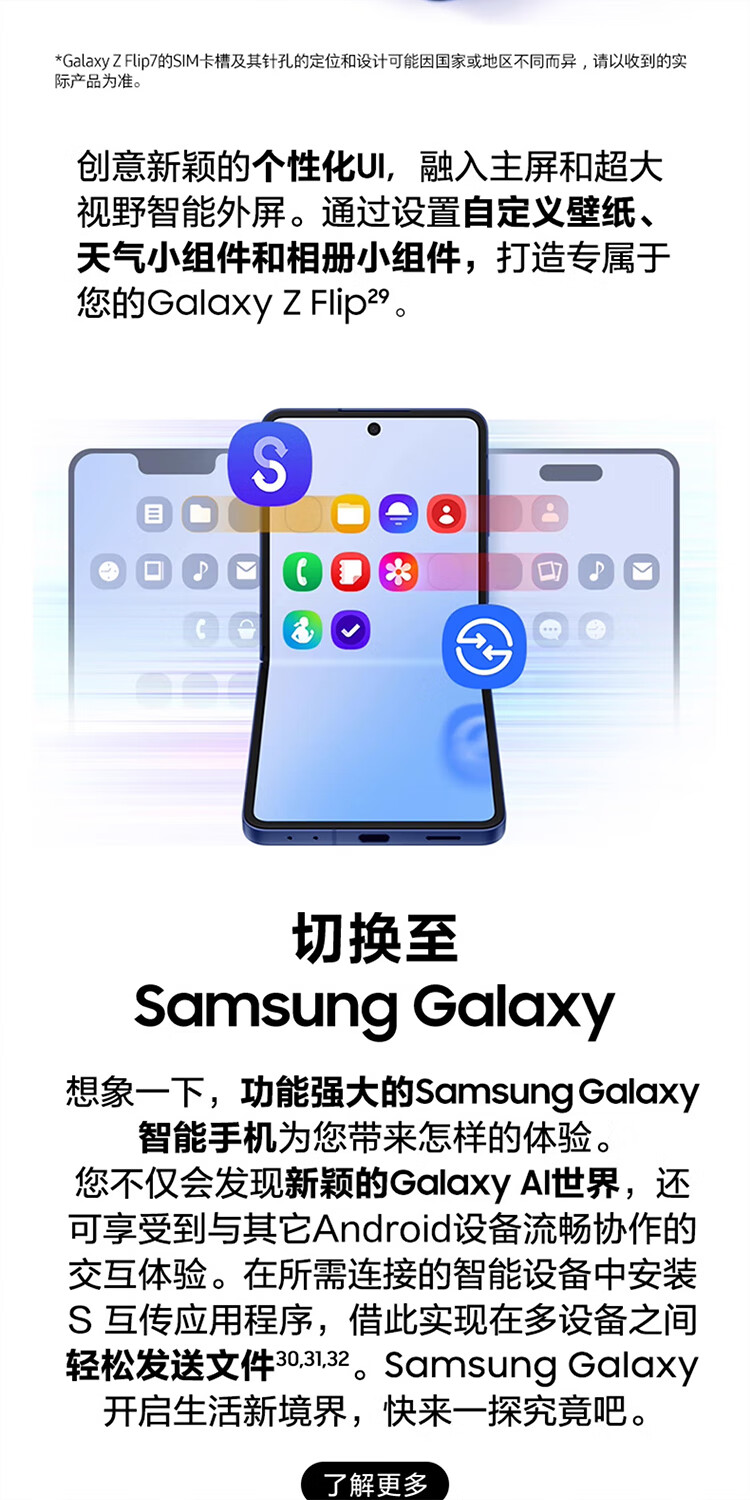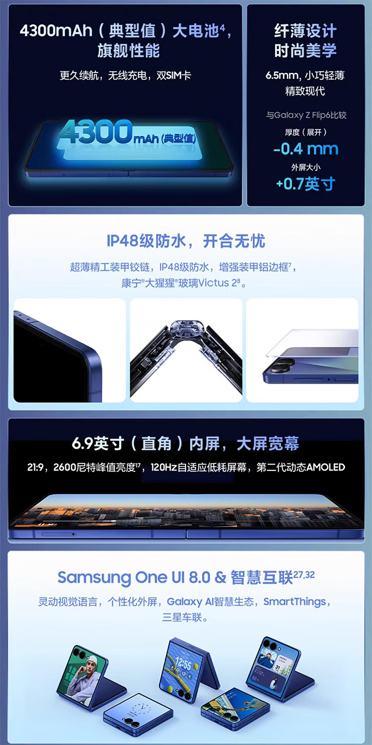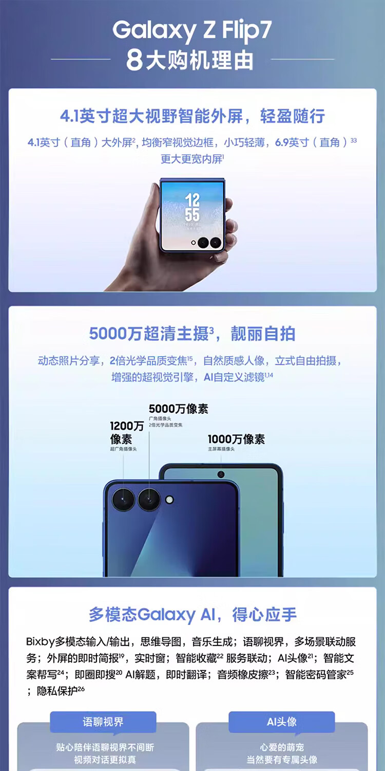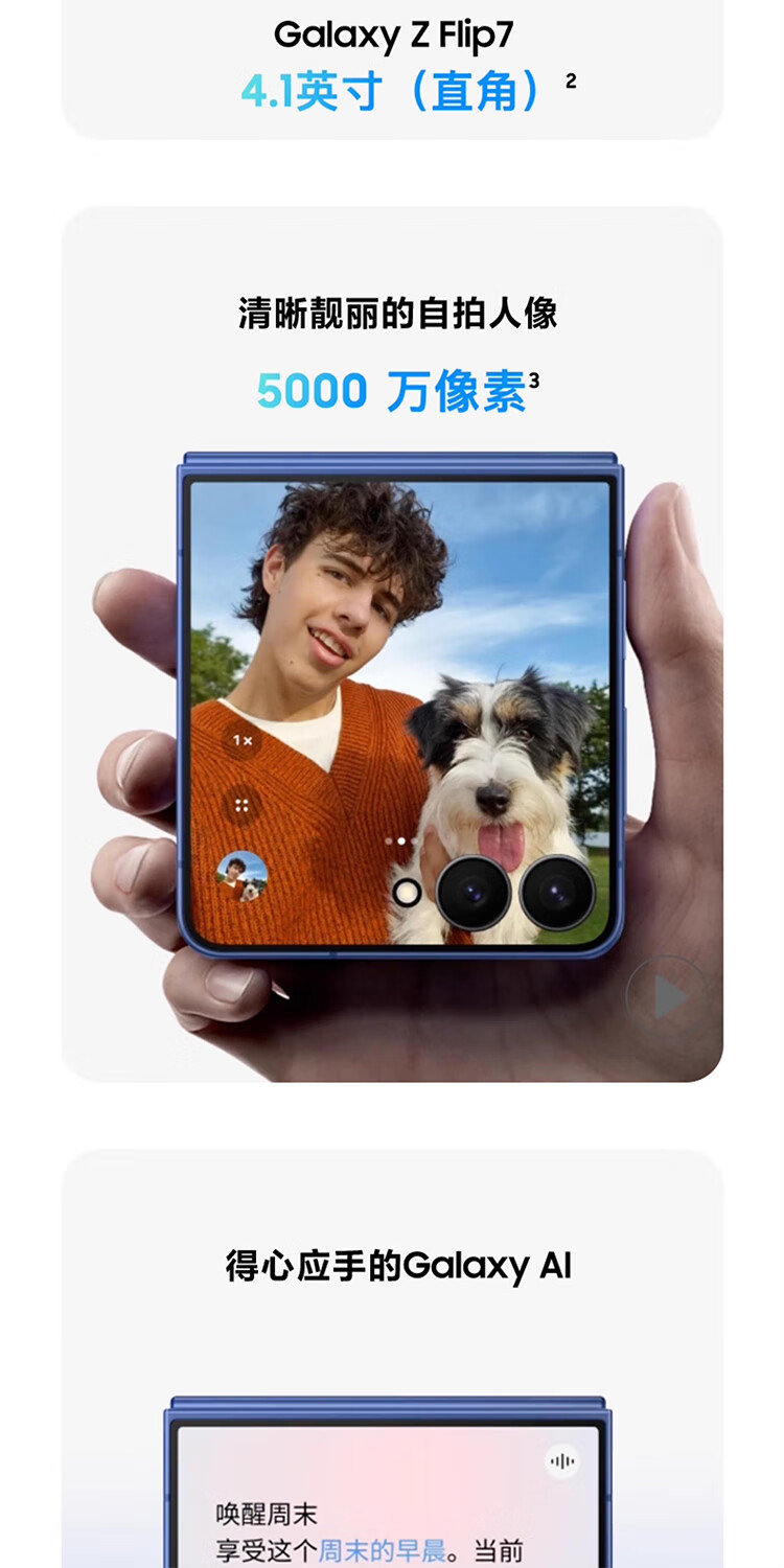 Samsung Galaxy Z Flip7 folding screen mobile phone 4.1-inch super large smart external screen AI mobile phone 7-day machine 12GB+512GB coral red