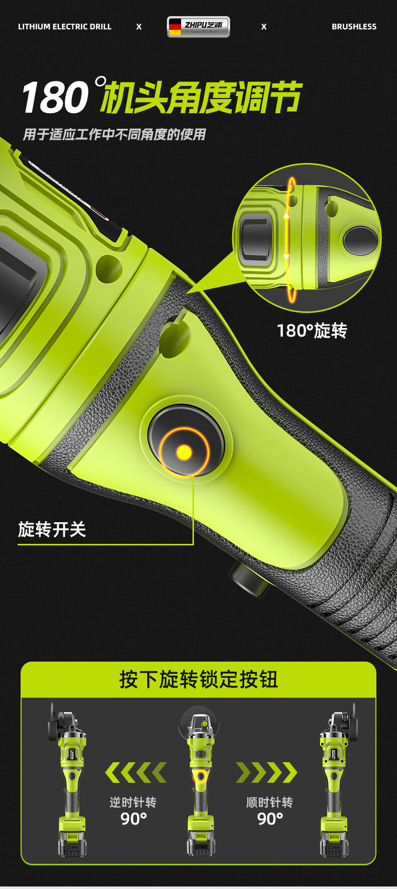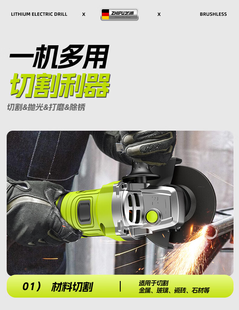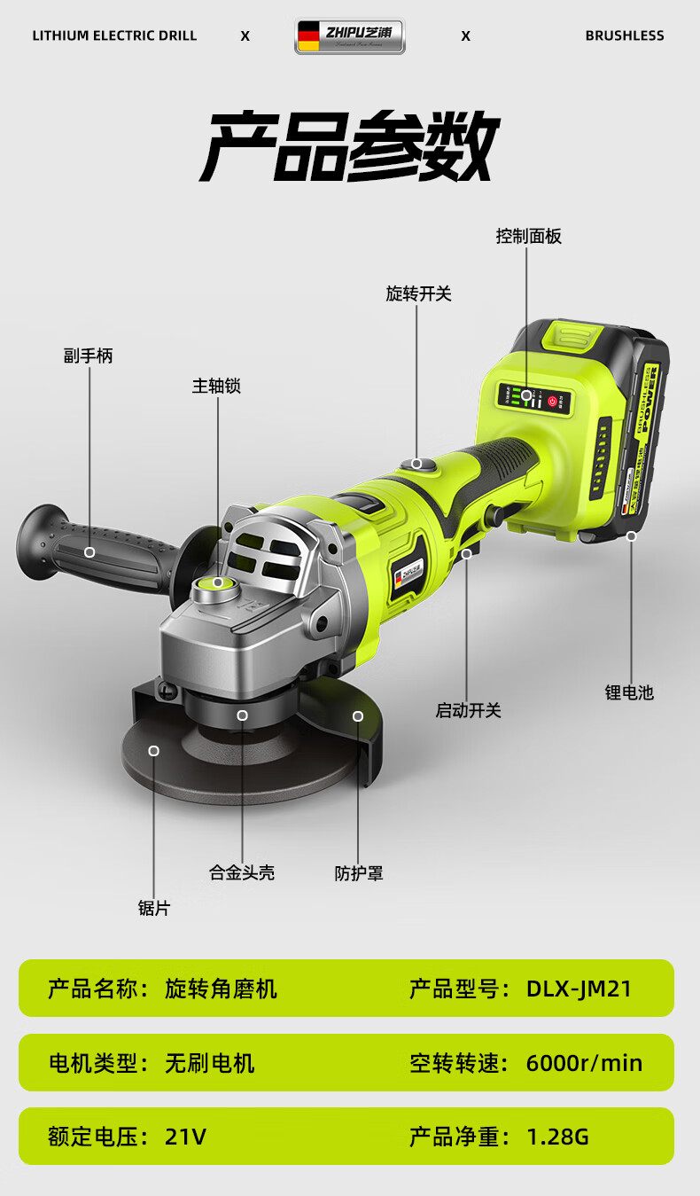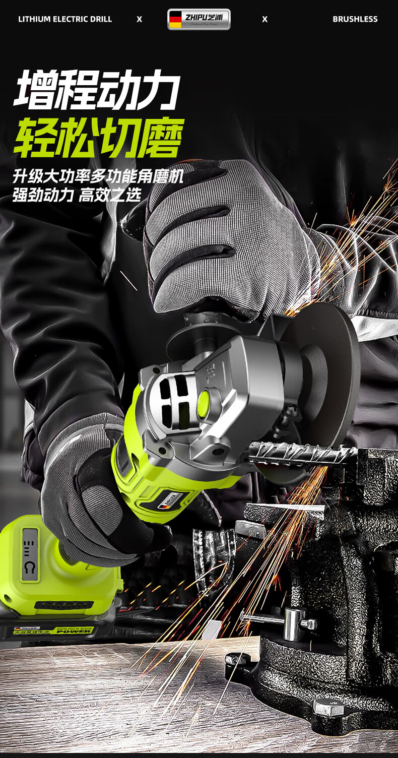 Shibaura brushless lithium electric angle grinder lithium battery high-power cutting machine household rotary angle grinder 15-section dual electric grinder